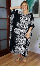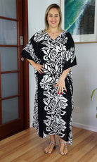 This light rayon kaftan makes a wonderful gift. One size fits size 10 to 26 comfortably. Has side splits at the bottom. The bling kaftans have sequins sewn on. Finished length is approximently 125cms.
