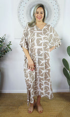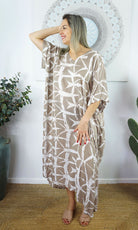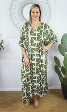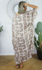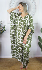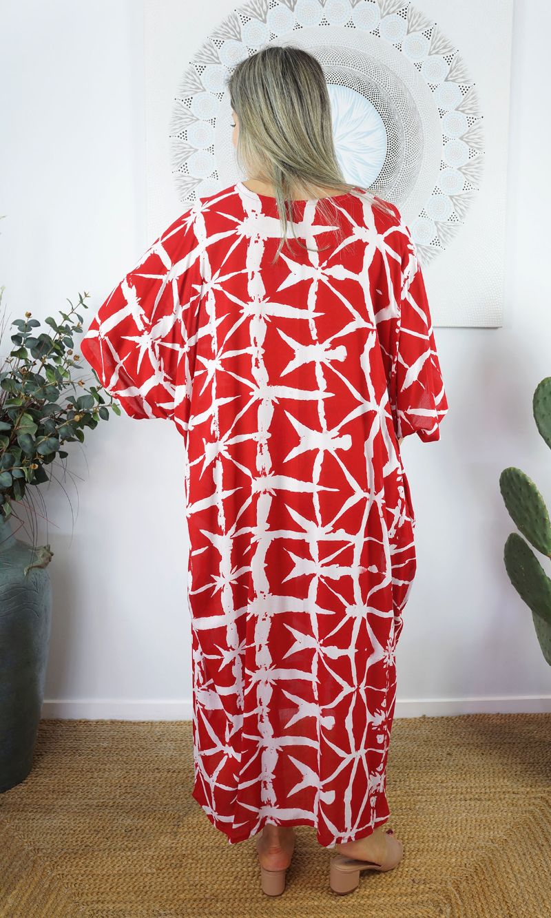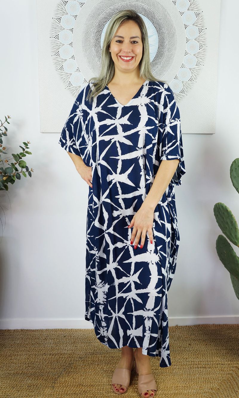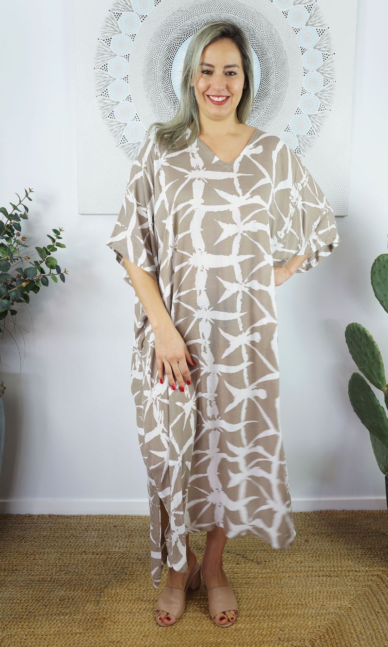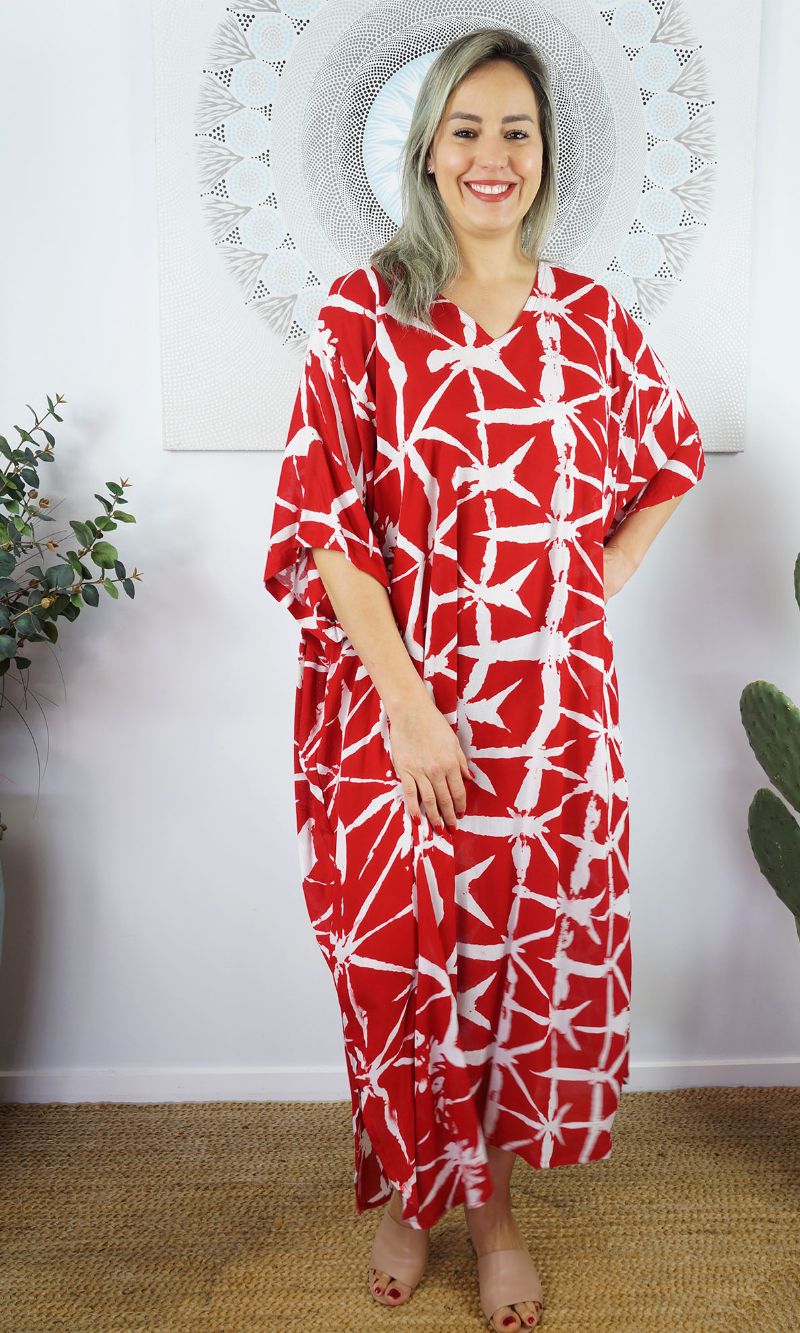 This light rayon kaftan makes a wonderful gift. One size fits size 10 to 26 comfortably. Has side splits at the bottom. The bling kaftans have sequins sewn on. Finished length is approximently 125cms.