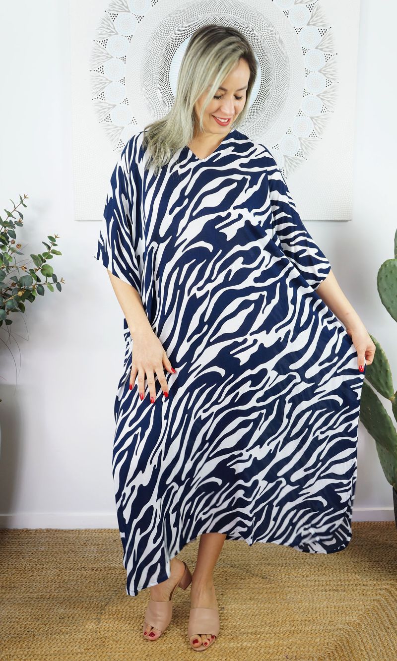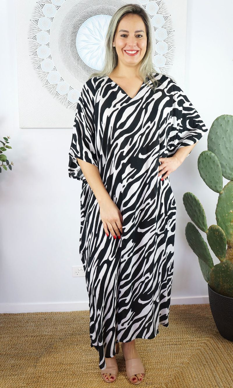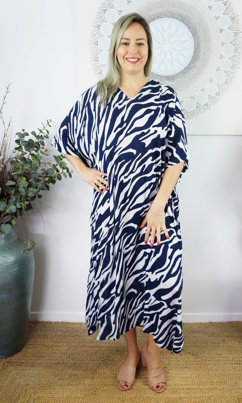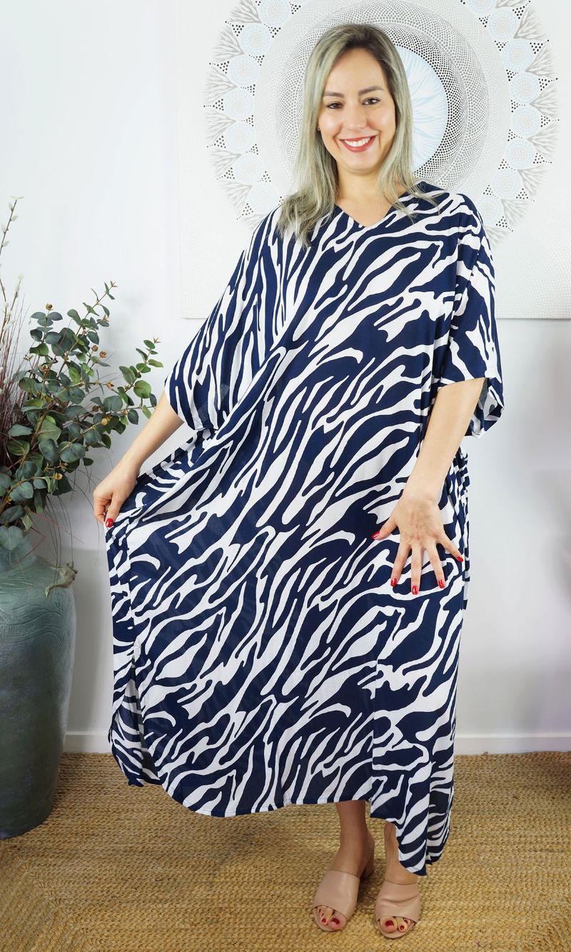 This light rayon kaftan makes a wonderful gift. One size fits size 10 to 26 comfortably. Has side splits at the bottom. The bling kaftans have sequins sewn on. Finished length is approximently 125cms.