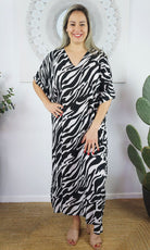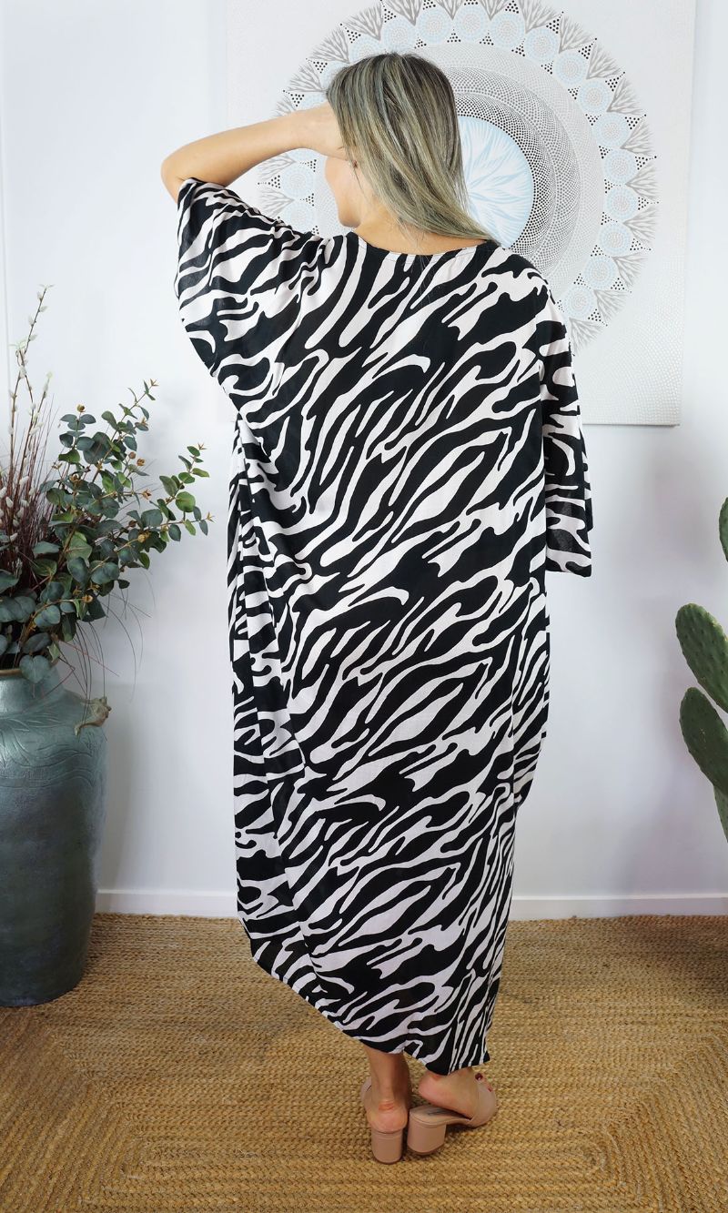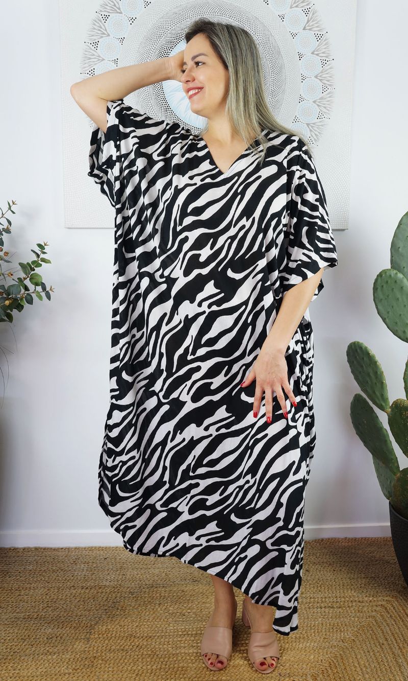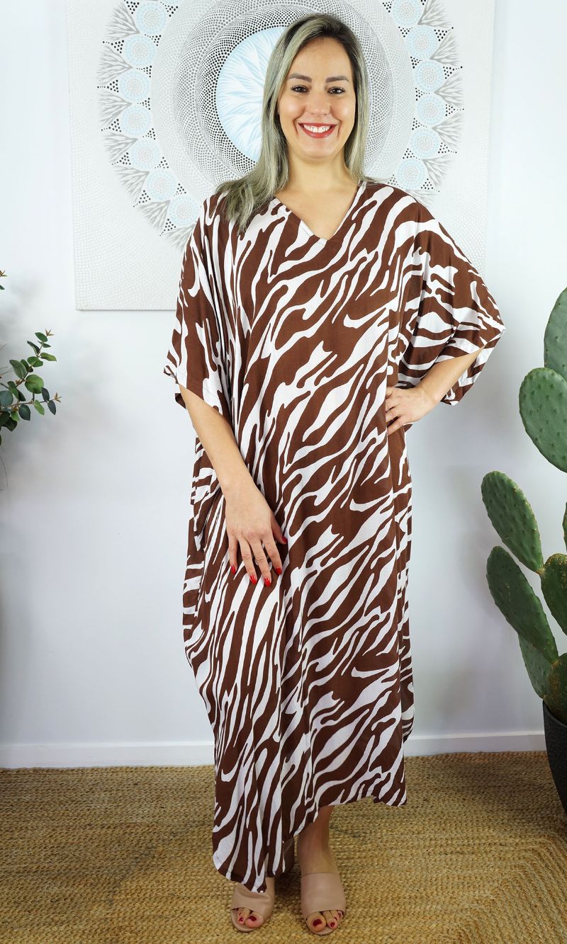 This light rayon kaftan makes a wonderful gift. One size fits size 10 to 26 comfortably. Has side splits at the bottom. The bling kaftans have sequins sewn on. Finished length is approximently 125cms.
