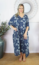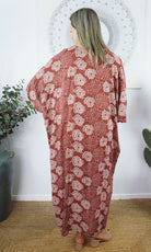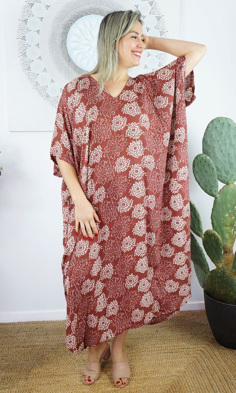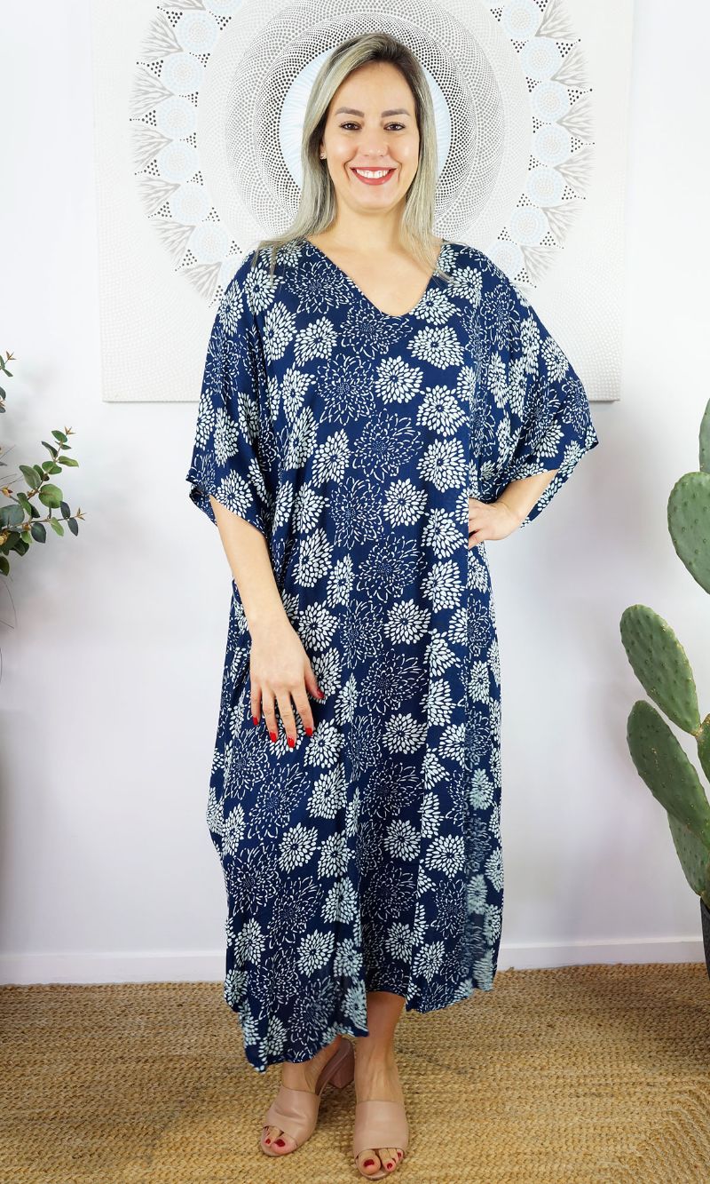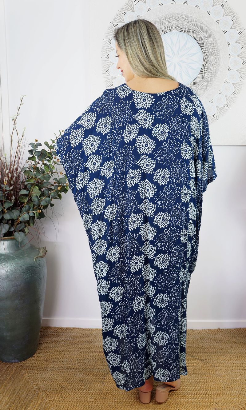 This light rayon kaftan makes a wonderful gift. One size fits size 10 to 26 comfortably. Has side splits at the bottom. The bling kaftans have sequins sewn on. Finished length is approximently 125cms.