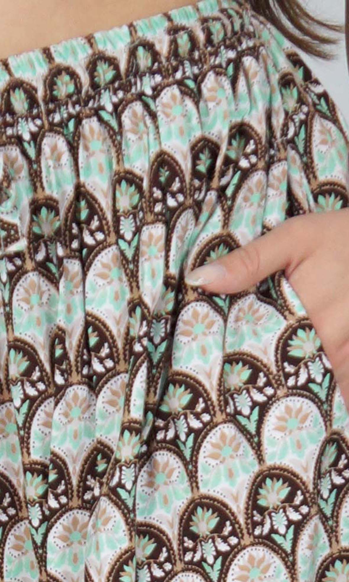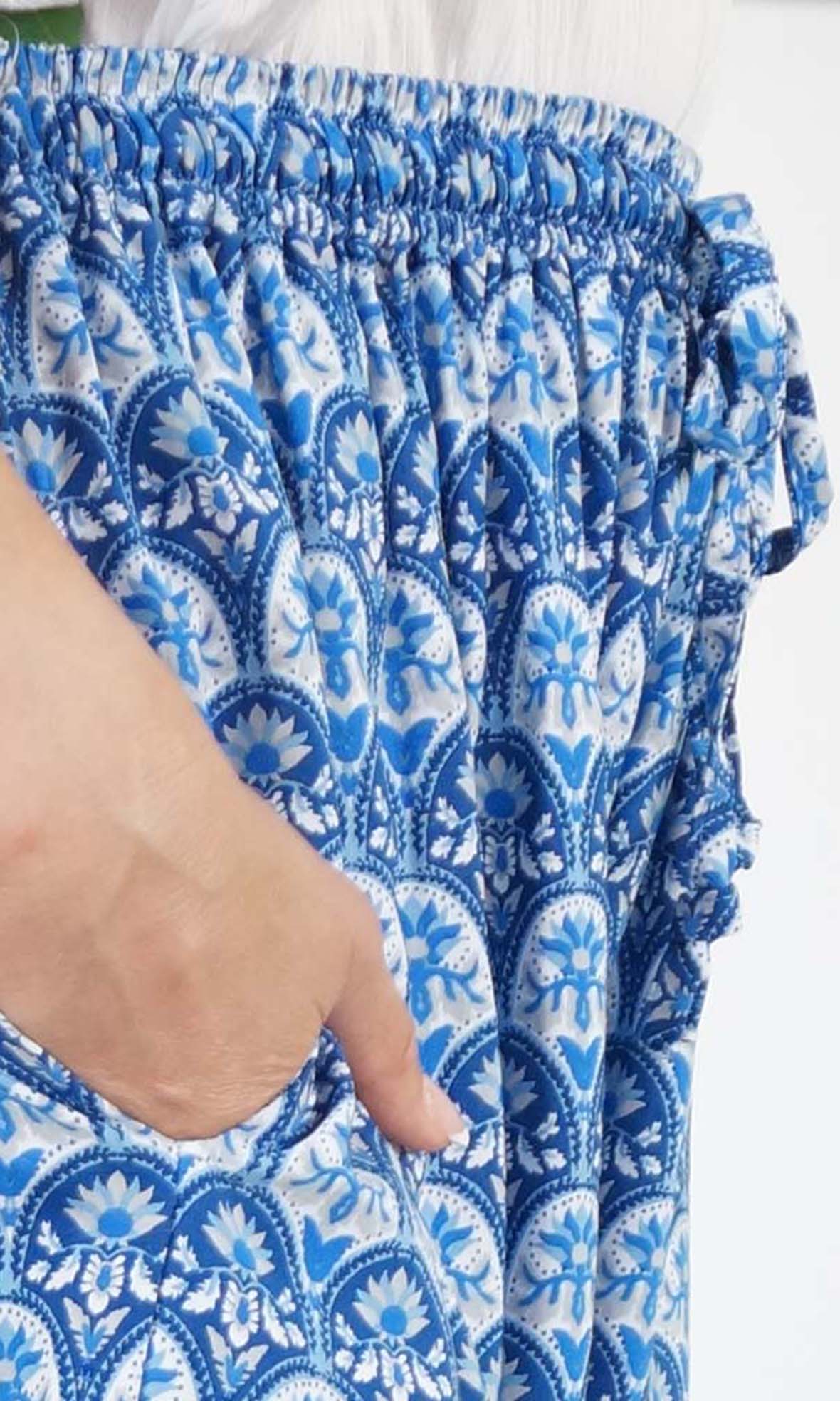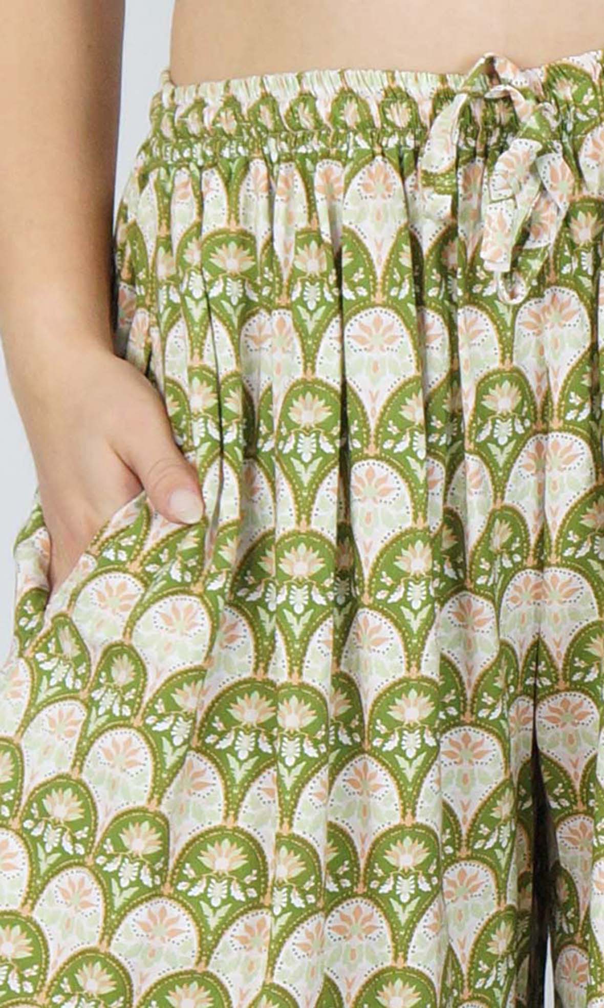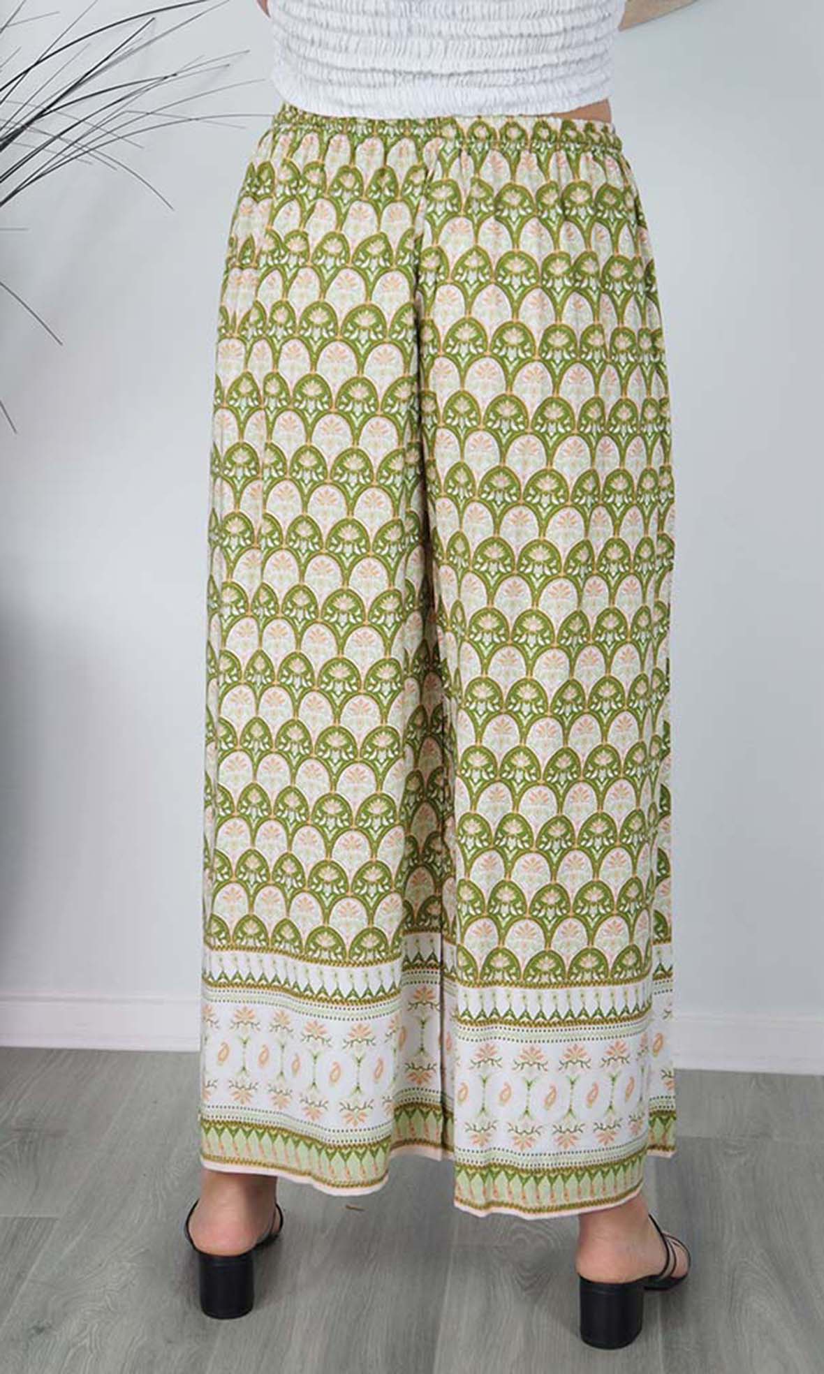 The Cha Cha pant is 100% rayon and one size to fit 10-18. With extra wide flowing legs and elastic waist, this has got to be the most comfortable pant yet.