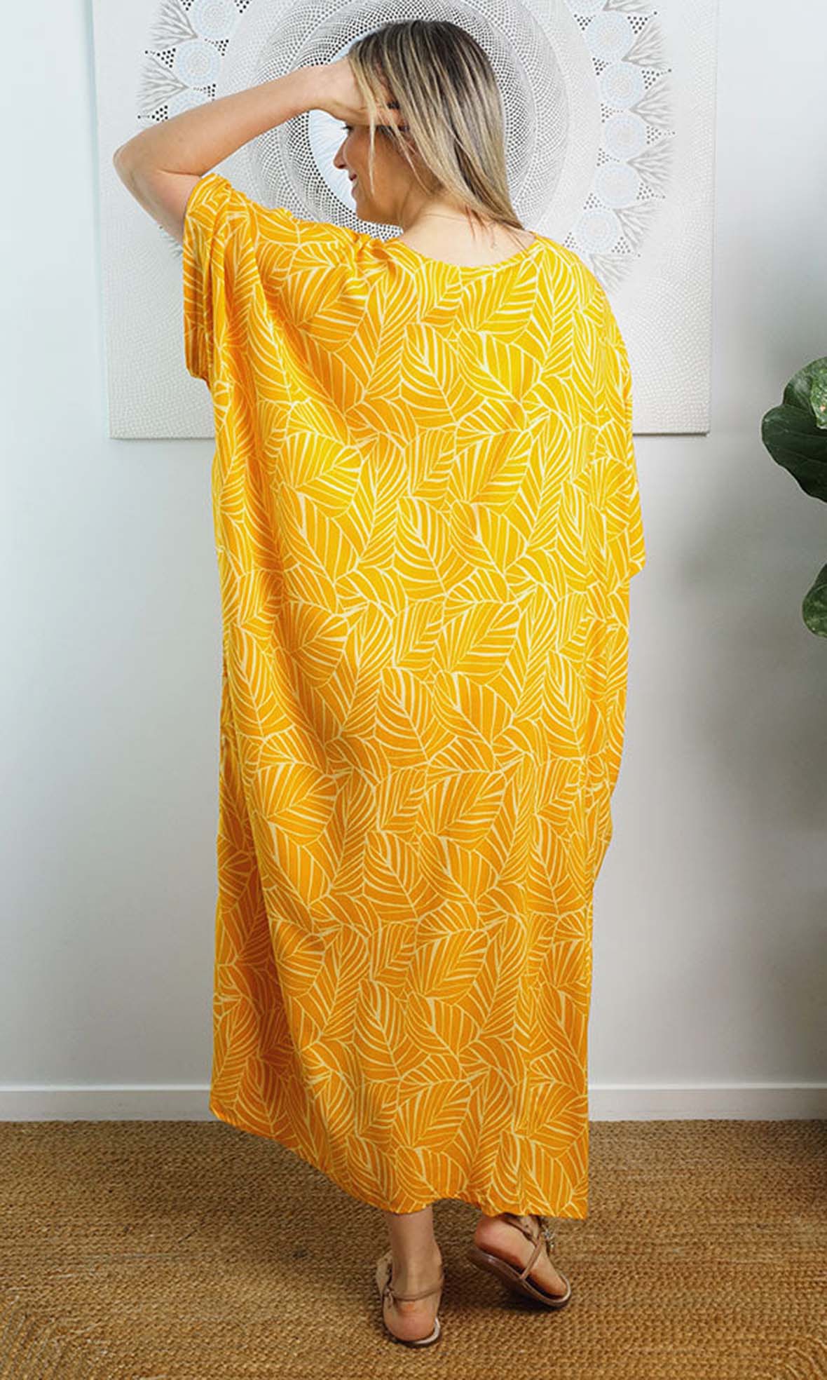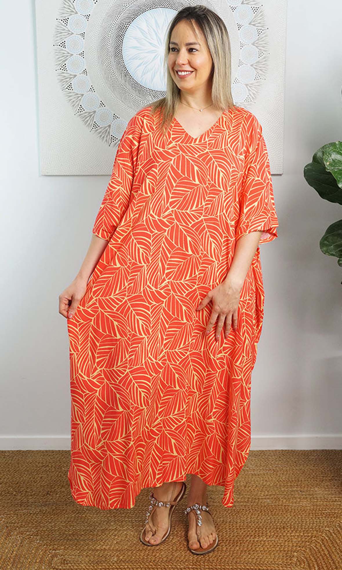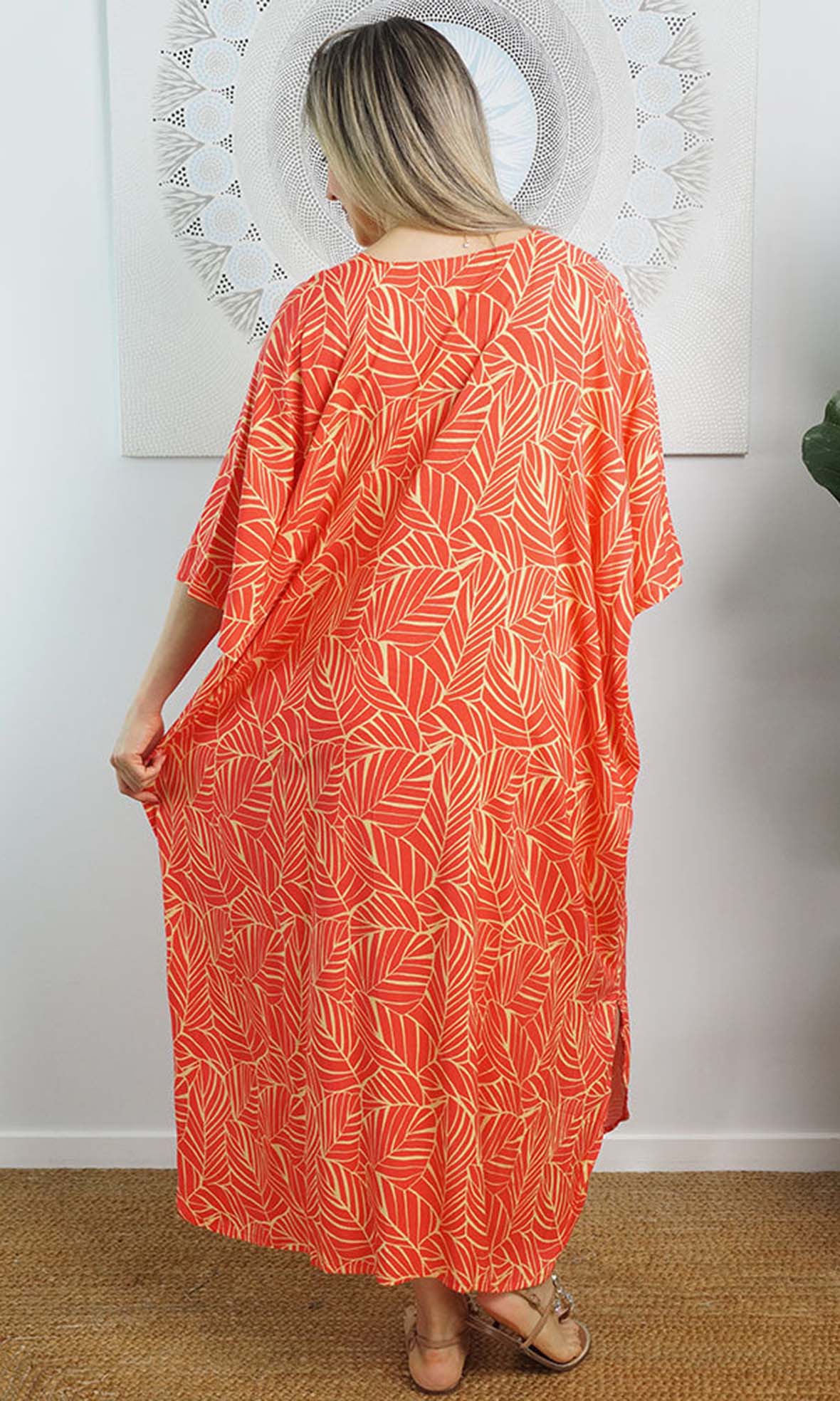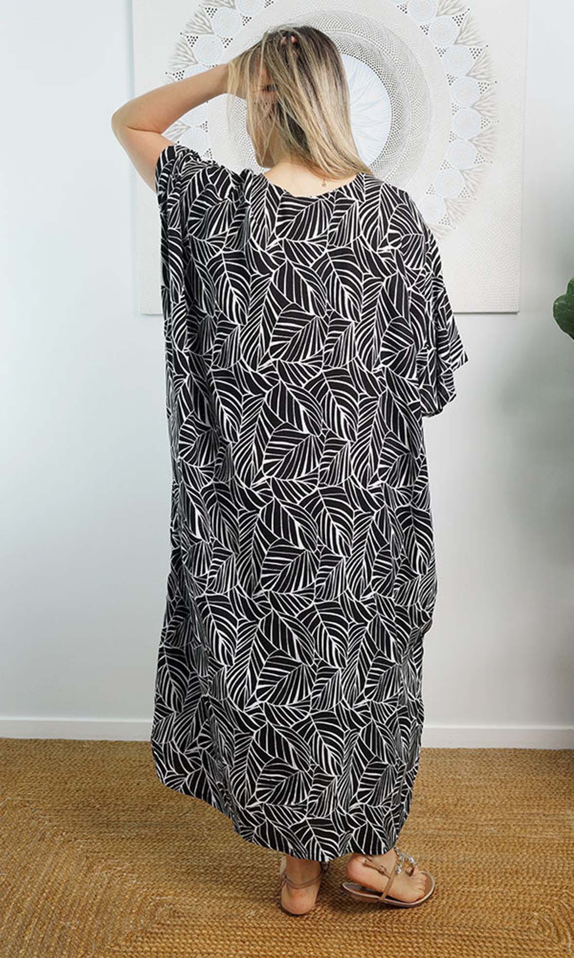 Our kaftans range from rich solid colors to funky patterns. A simple v-neck in the front, side splits on the bottom and a free size from 10-26, this product fits everyone (seriously, these fit everyone).