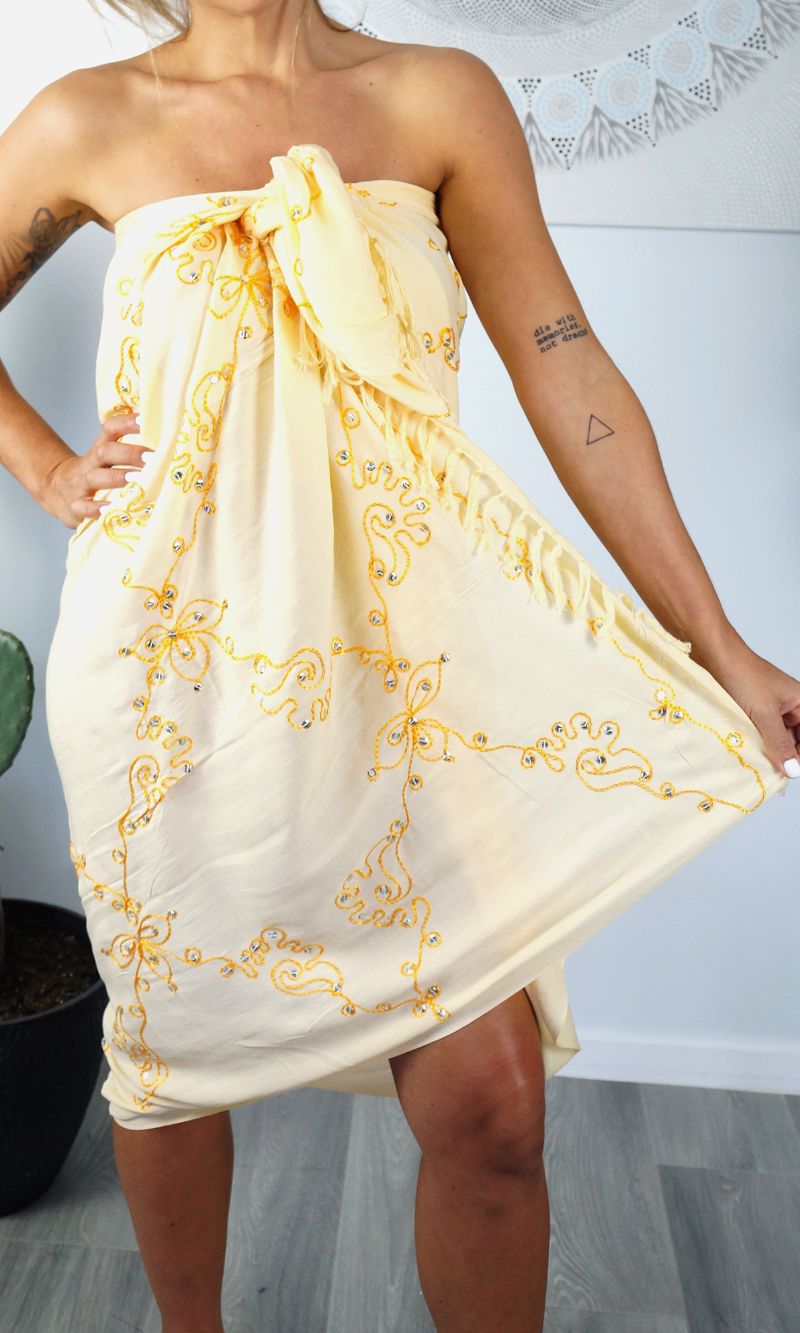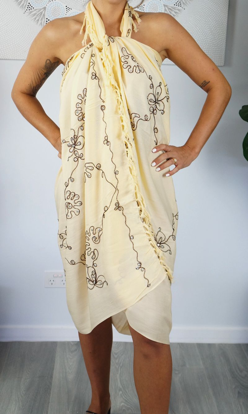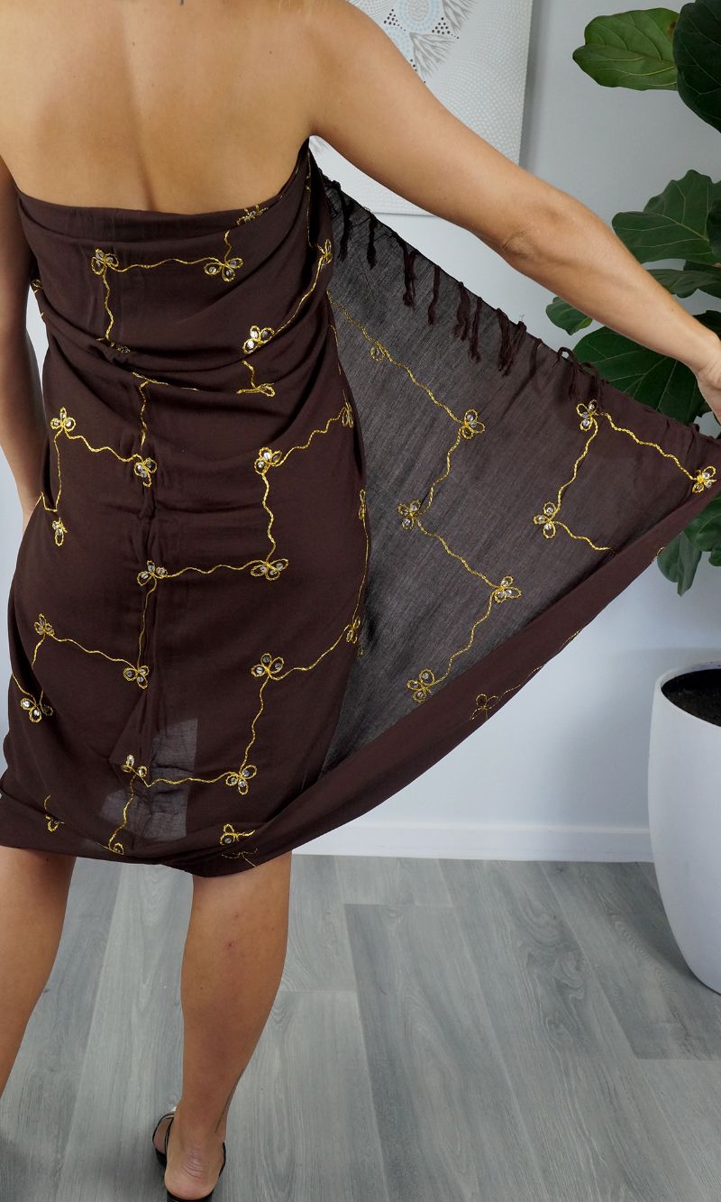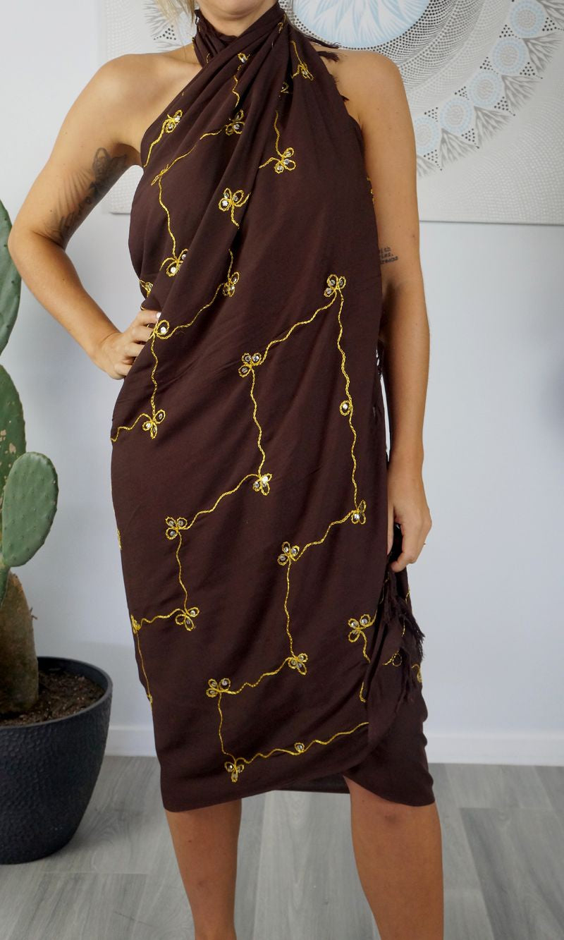 These "Embroidered/Sequined" Plain sarongs are a great cover up for a day at the beach, pool, lake or wherever else your heart desires. Sarong measures approximately 1.8M x 1.15M on fringed rayon.