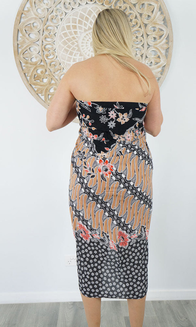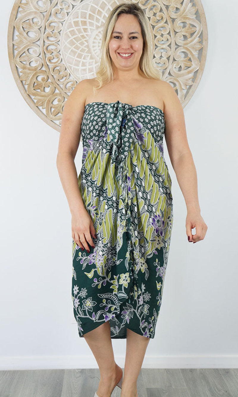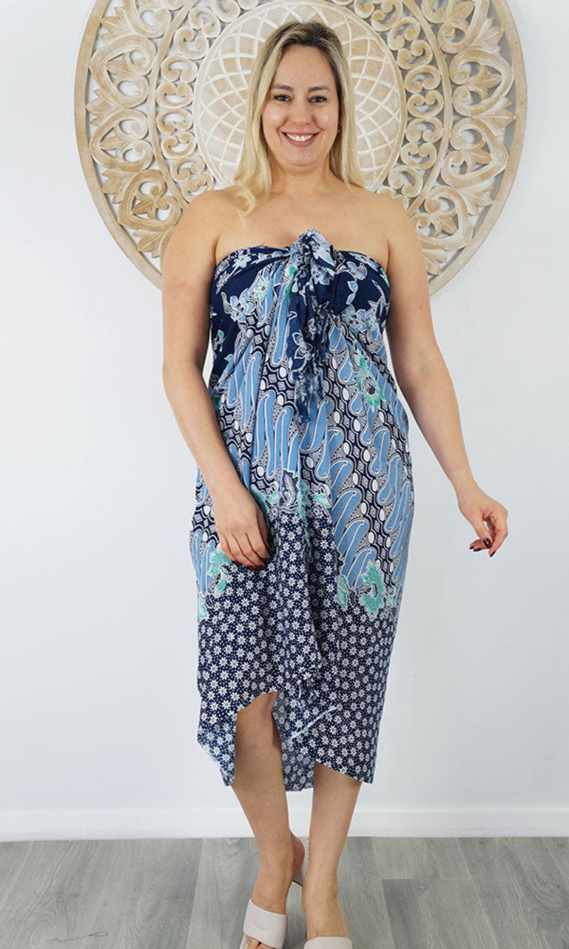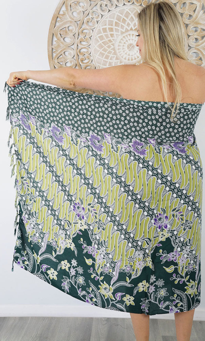 These Batik inspired "Kediri" printed sarongs are a great cover up for a day at the beach, pool, lake or wherever else your heart desires. Sarong measures approximately 1.8M x 1.15M on fringed lightweight rayon.