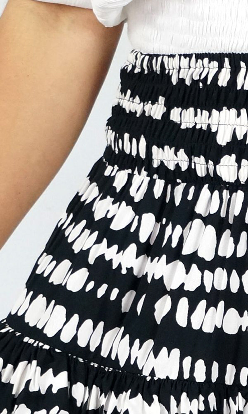 The Havana Skirt is fun and flirty. This 3-tiered skirt is the perfect length to be worn at your hips or high-waisted. The elastic smock waist ensures a comfortable fit for a wide range of sizes. Free size fits 8-14.