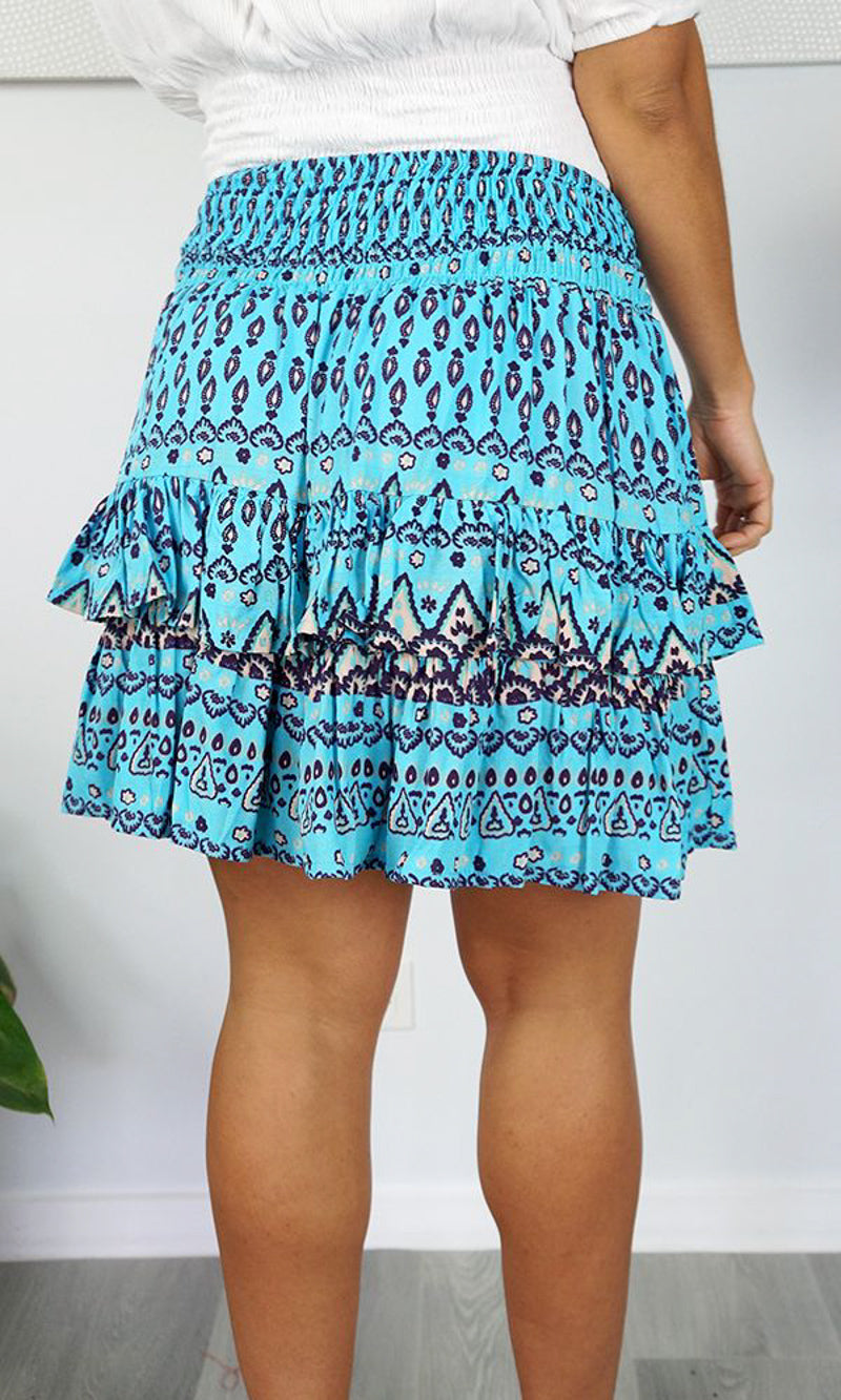 The Havana Skirt is fun and flirty. This 3-tiered skirt is the perfect length to be worn at your hips or high-waisted. The elastic smock waist ensures a comfortable fit for a wide range of sizes. Free size fits 8-14.