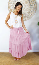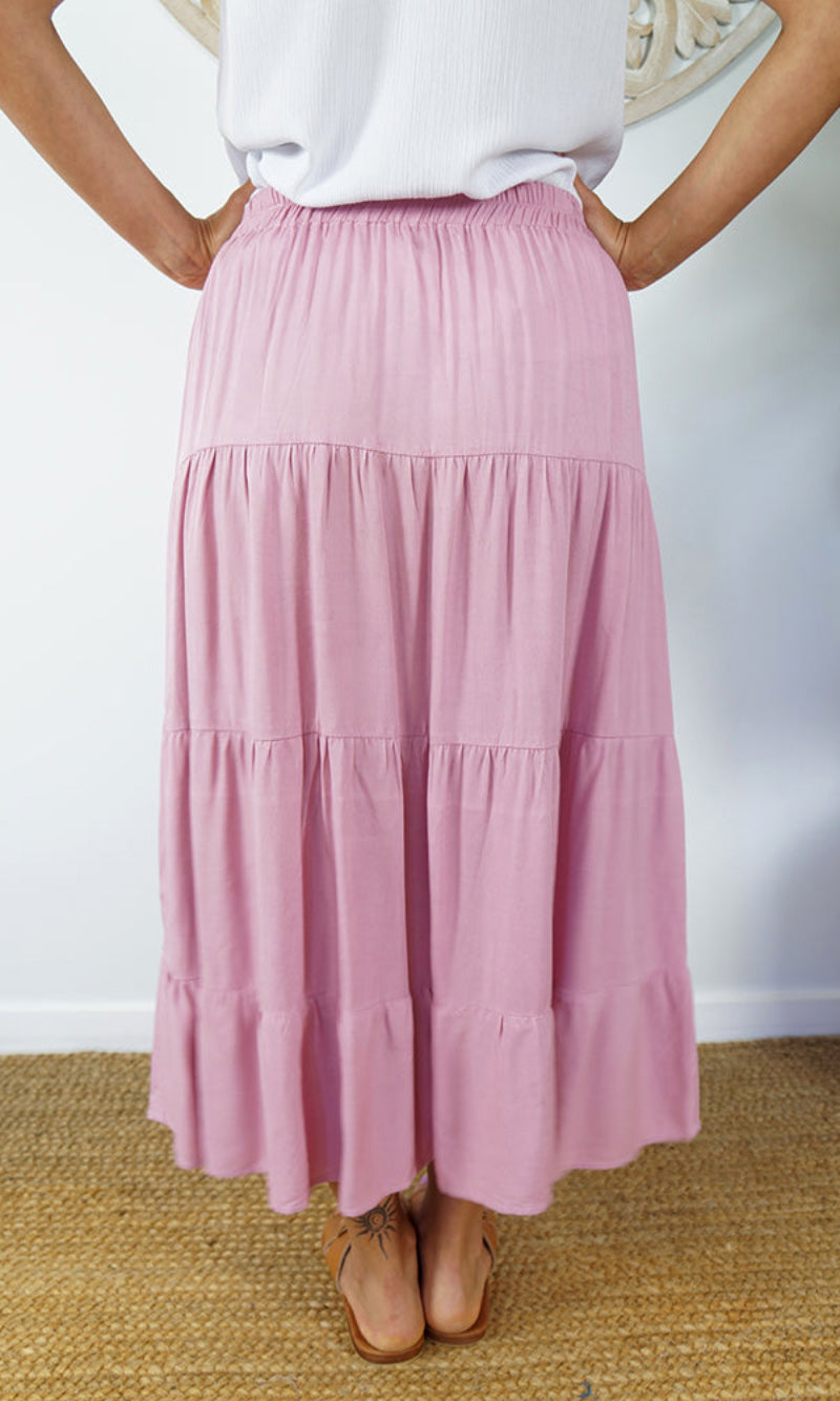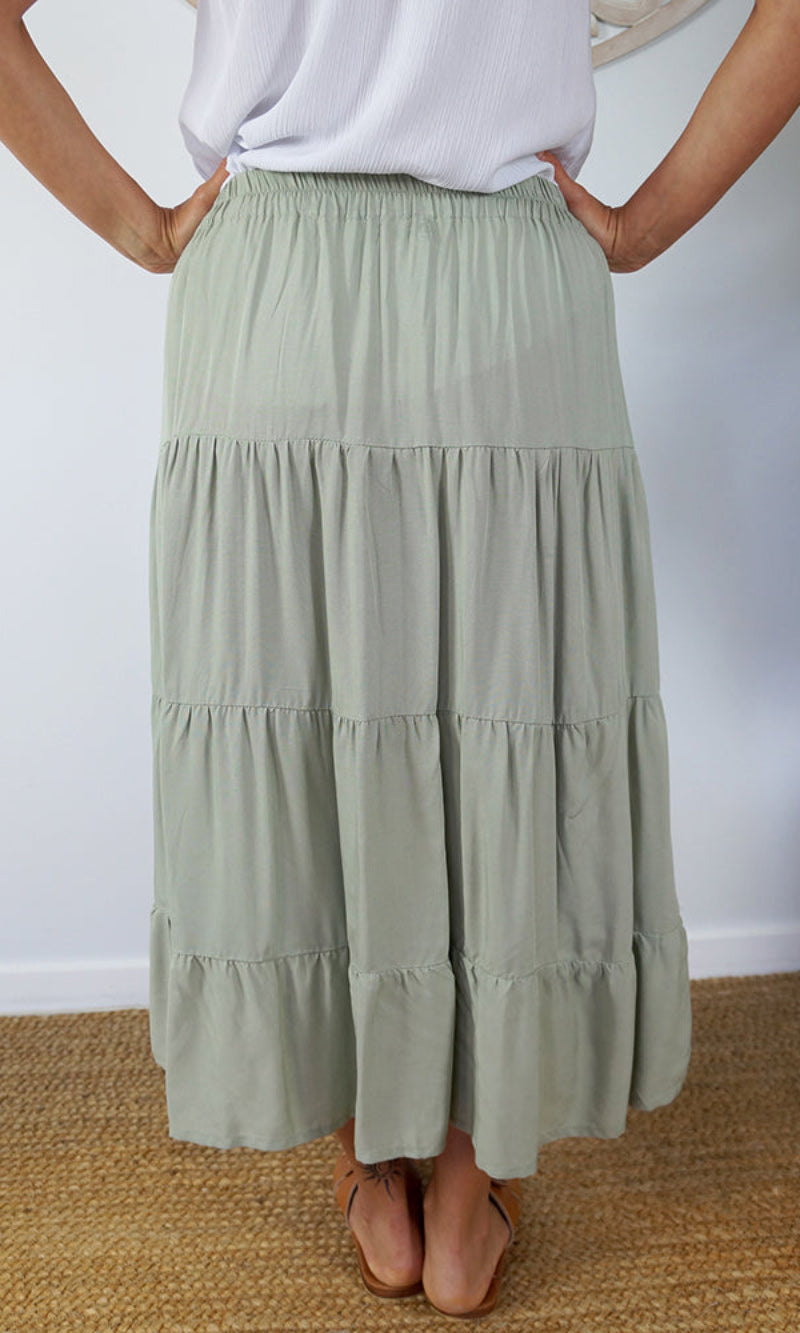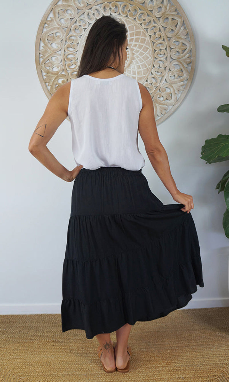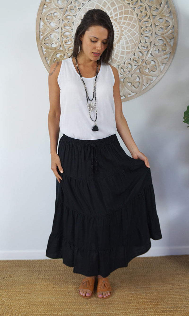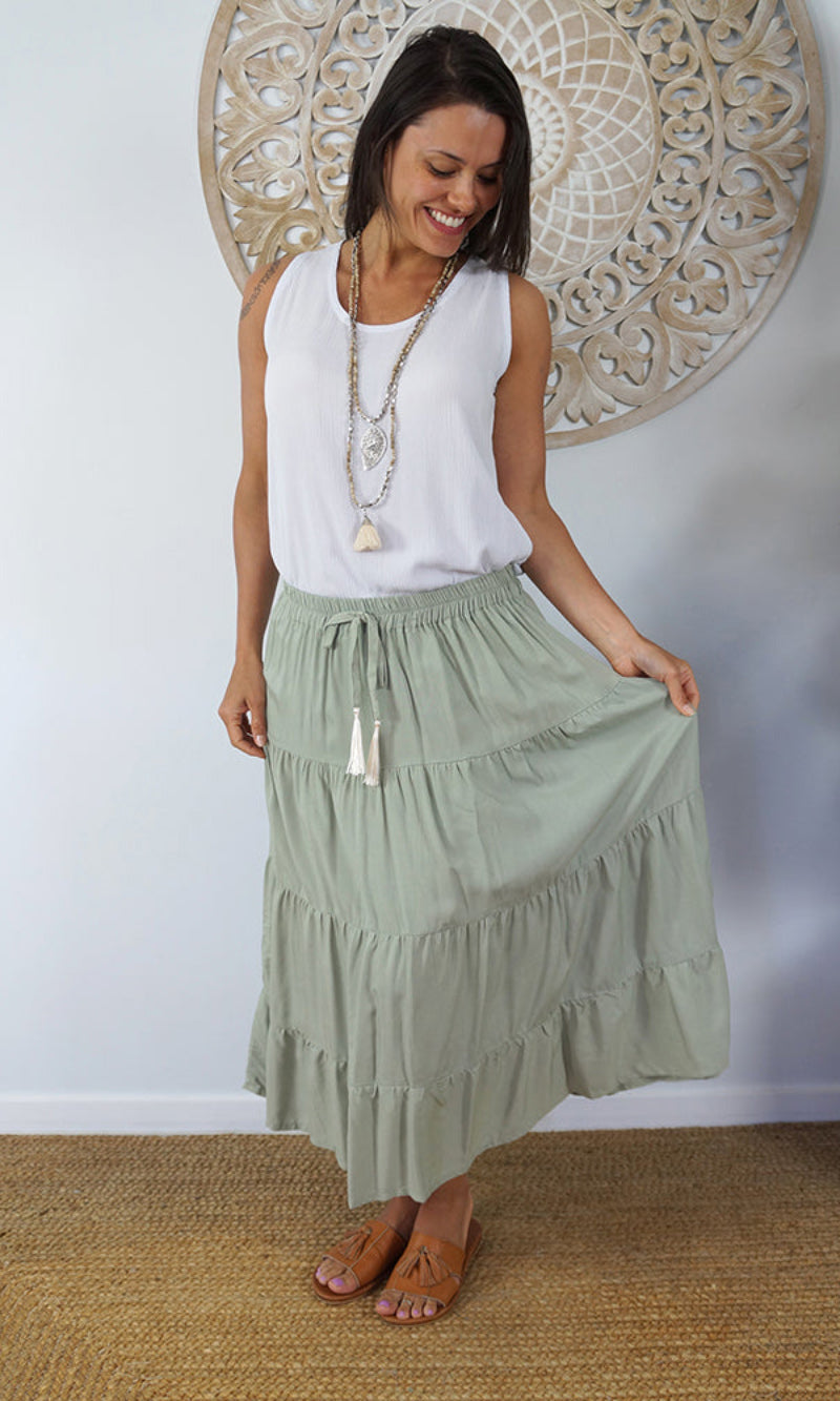 Rayon Skirt Tiered Plain, More Colours