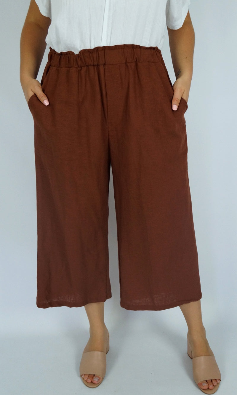 The 3/4 Vacation Pant is essential for your wardrobe because you can dress it up or dress it down. This wide leg 100% cotton pant looks like linen and feels like cotton to give you an ultra comfortable version of that iconic summer style. Available in 3 sizes with an elastic waistband and pockets, this pant is for every size and every age.