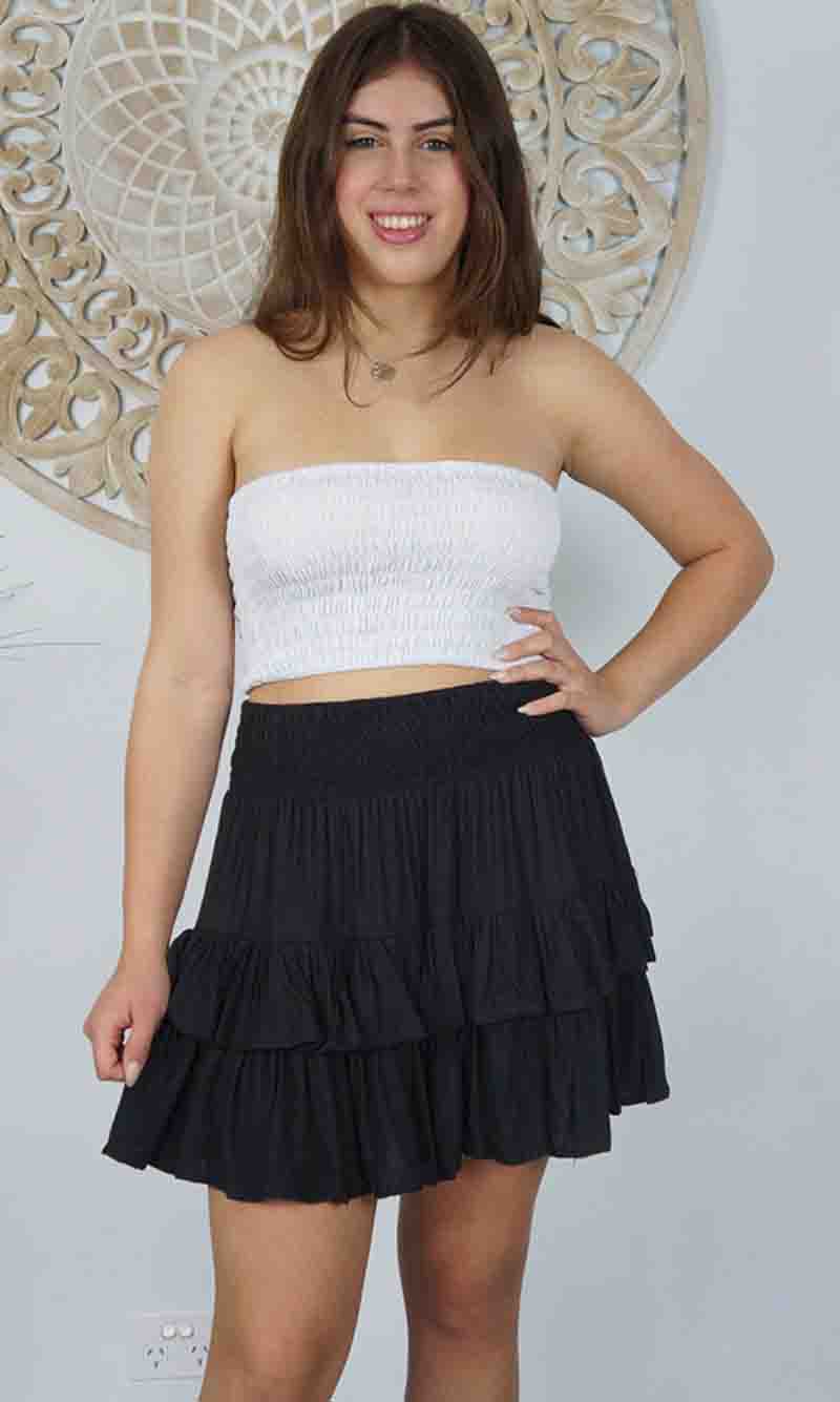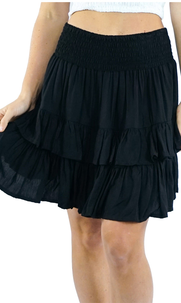 The Havana Skirt is fun and flirty. This 3-tiered skirt is the perfect length to be worn at your hips or high-waisted. The elastic smock waist ensures a comfortable fit for a wide range of sizes. Free size fits 8-14.
