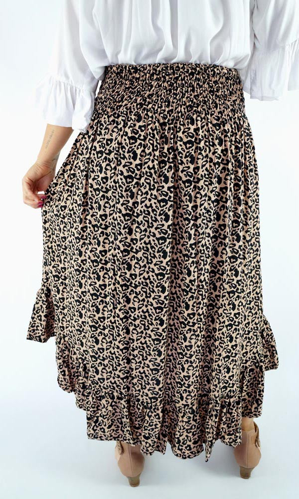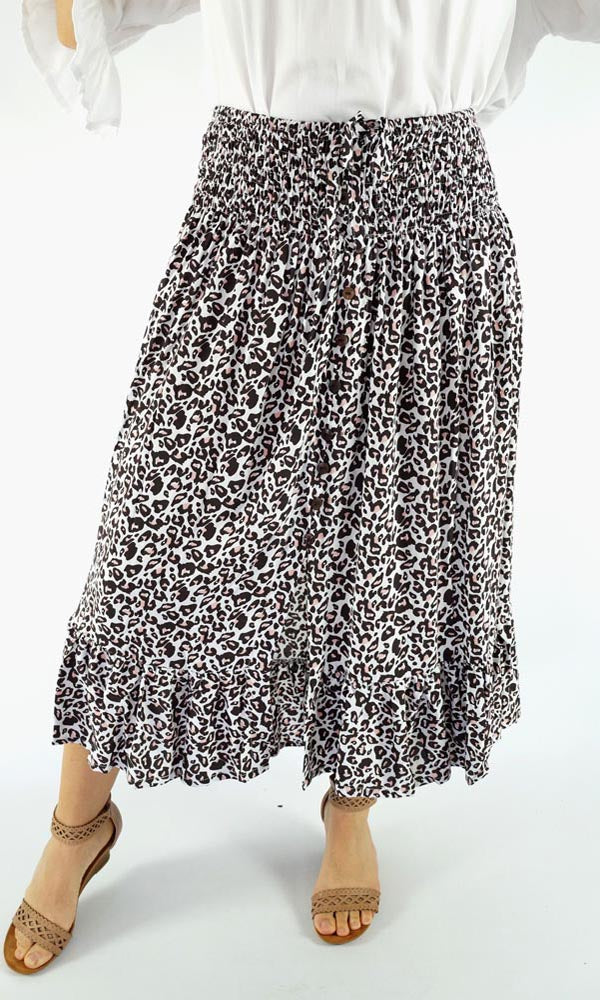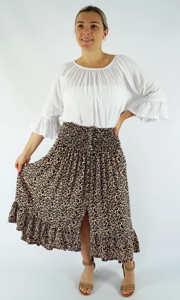 The Tangelo Skirt is fun and flirty. This "hi-low" skirt is the perfect length that can worn at as a casual or dressed up. The elastic smock waist ensures a comfortable fit for a wide range of sizes. Free size fits 8-16.