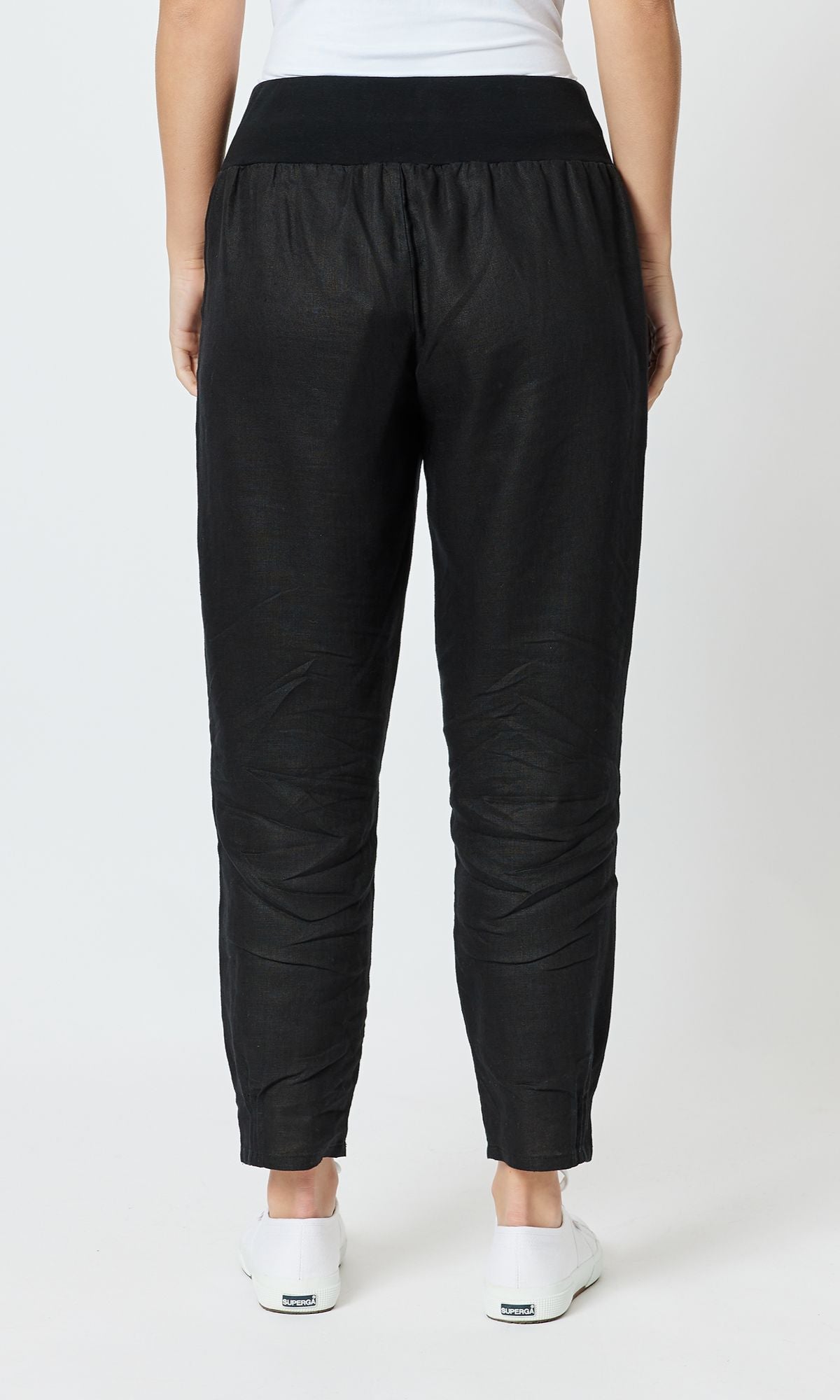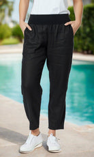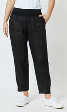 Linen Pant Jersey Waist Black