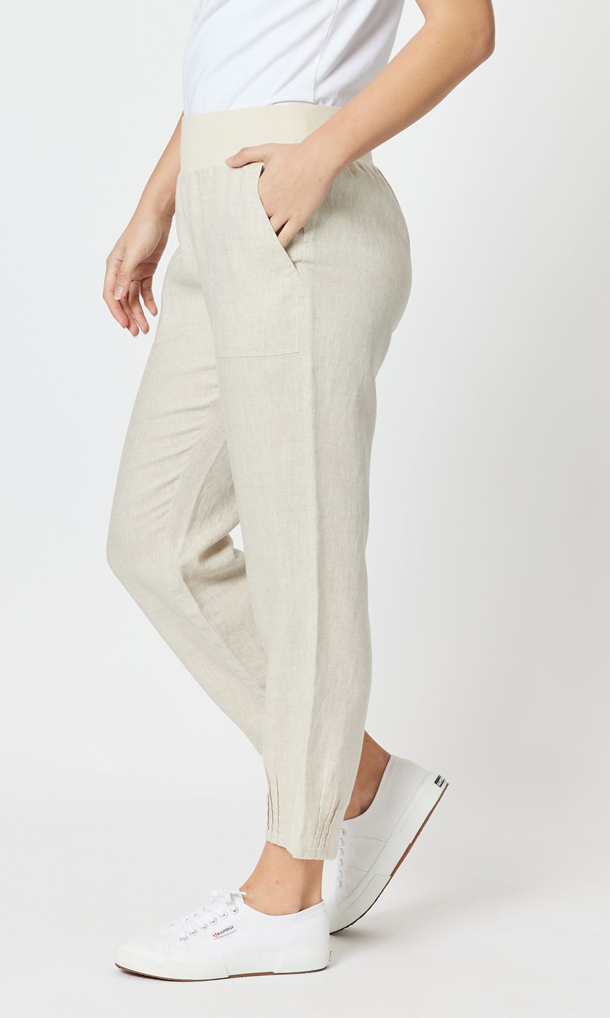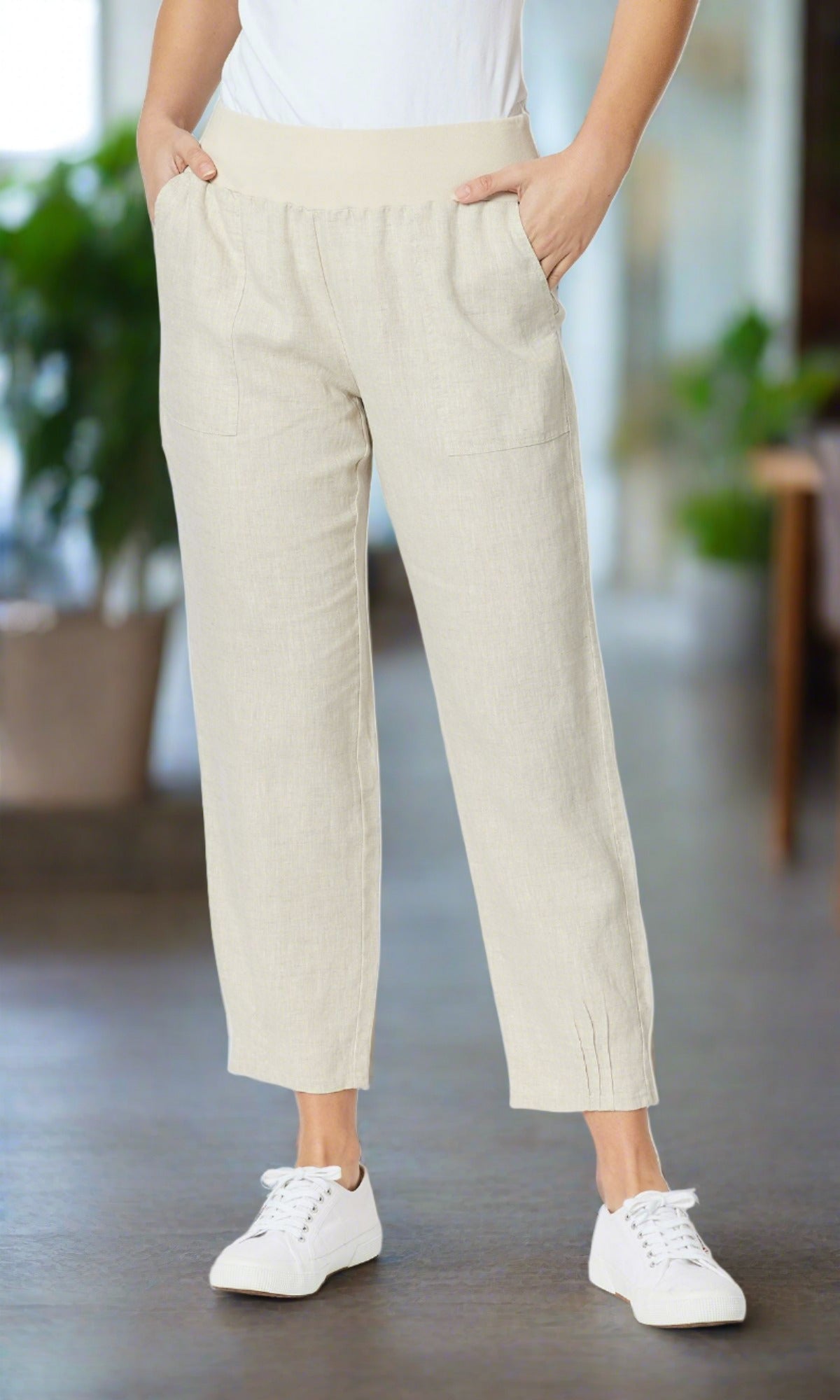 The Jersey Waist Linen Pant is one of our best sellers, loved for its relaxed casual style and fit. Styled in our signature washed linen that is both soft and easy to care for. It's the perfect wear anywhere pant.