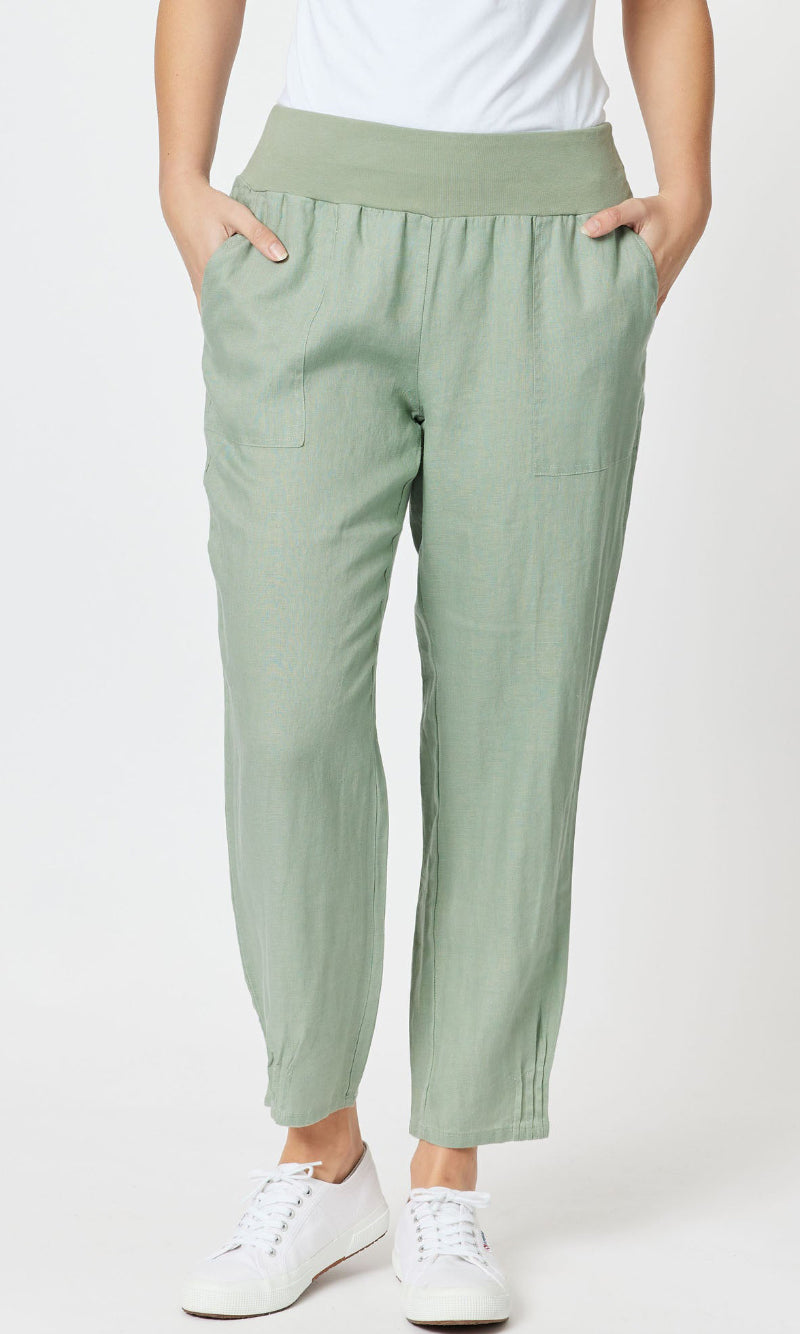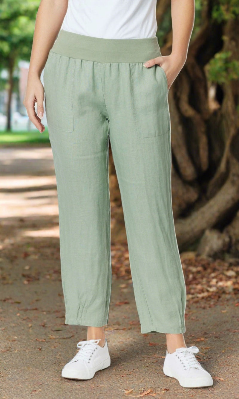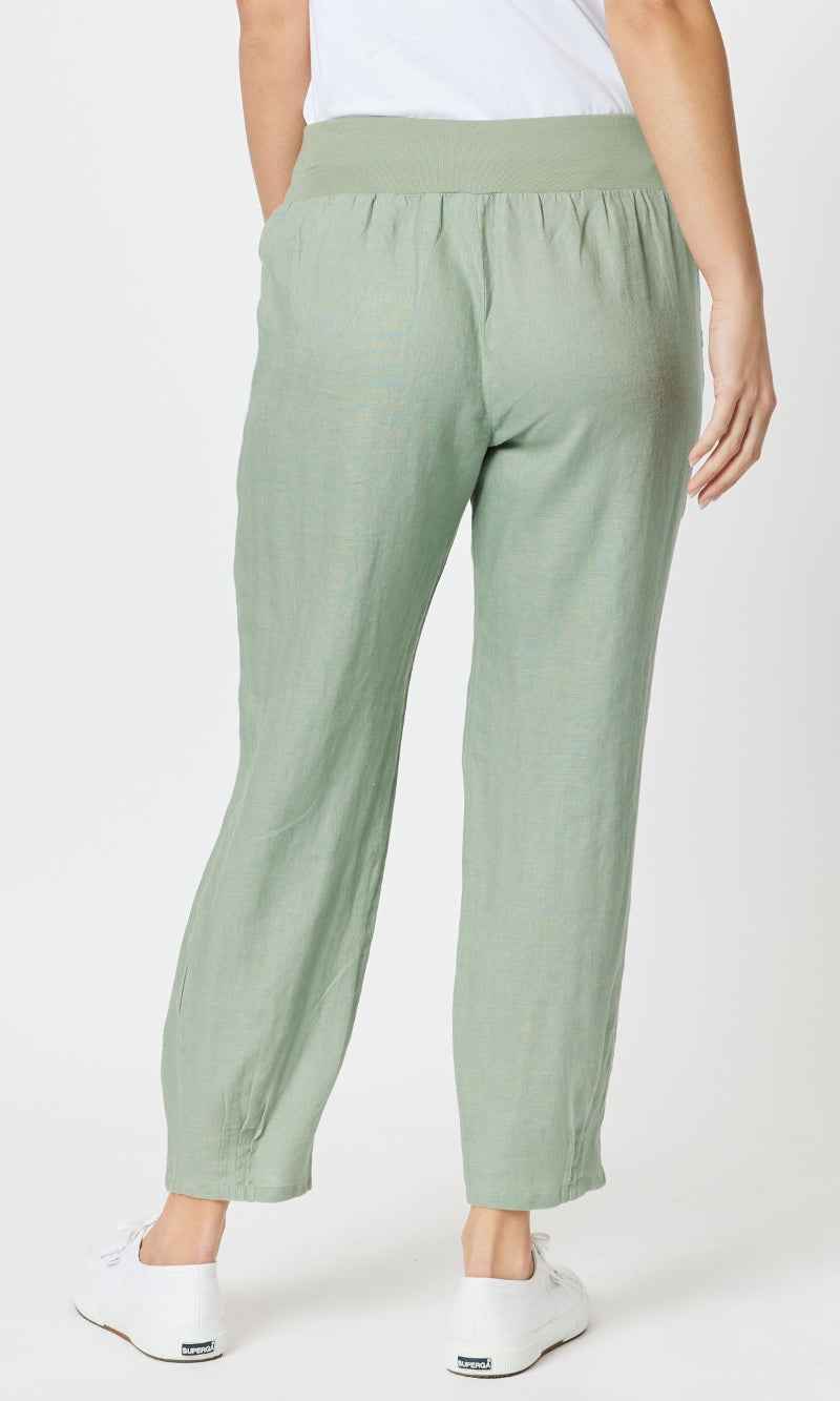 The Jersey Waist Linen Pant is one of our best sellers, loved for its relaxed casual style and fit. Styled in our signature washed linen that is both soft and easy to care for. It's the perfect wear anywhere pant.