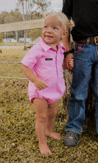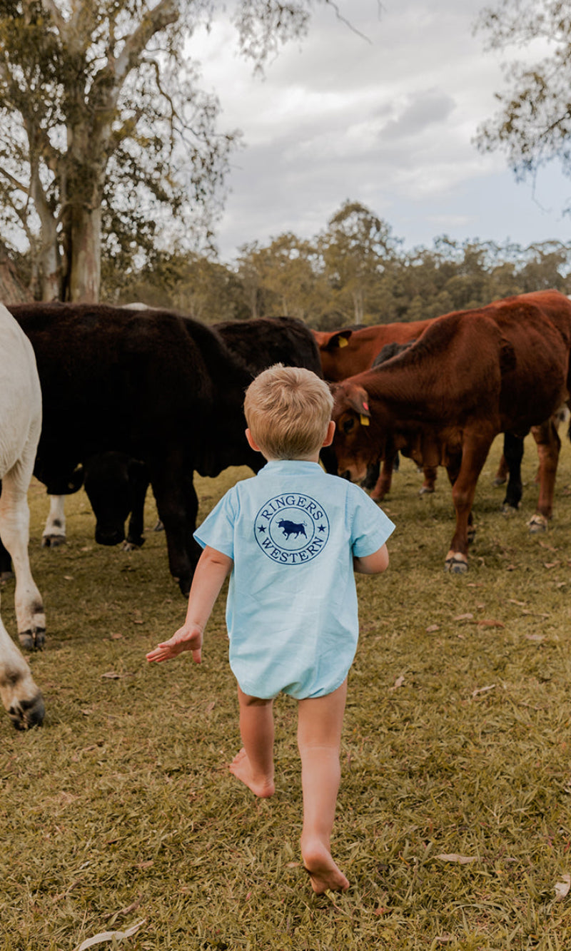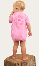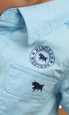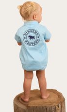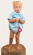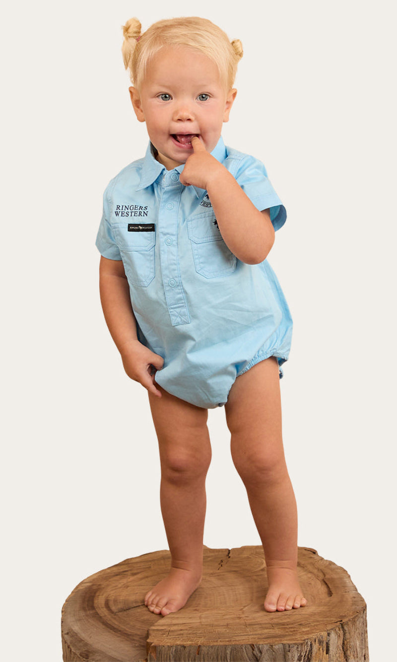 The Ringers Babies Short Sleeve Work Shirt Romper is created from 100% premium cotton, this fabric has a super soft handfeel and offers fantastic comfort and breathability - which is so important for the little ones in our warm, humid climate. A tribute to our classic work shirt design, this romper features mock dual chest pockets as well as our Signature logo on the back. A handy snap button closure makes changes a breeze, making this little romper a convenient and stylish choice for bub at your next rodeo!