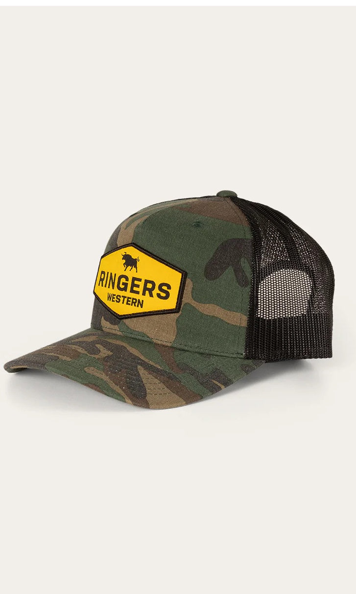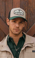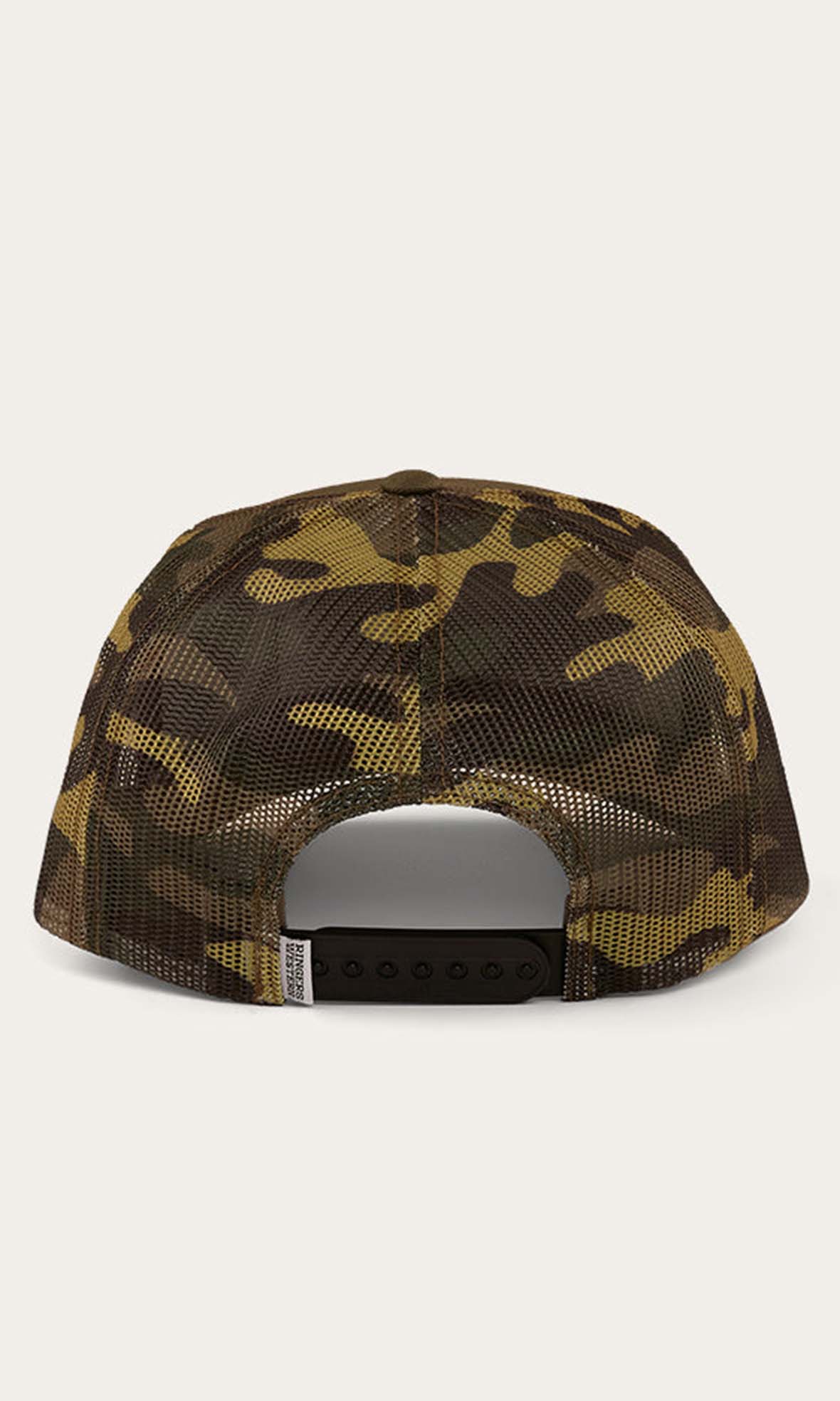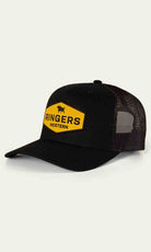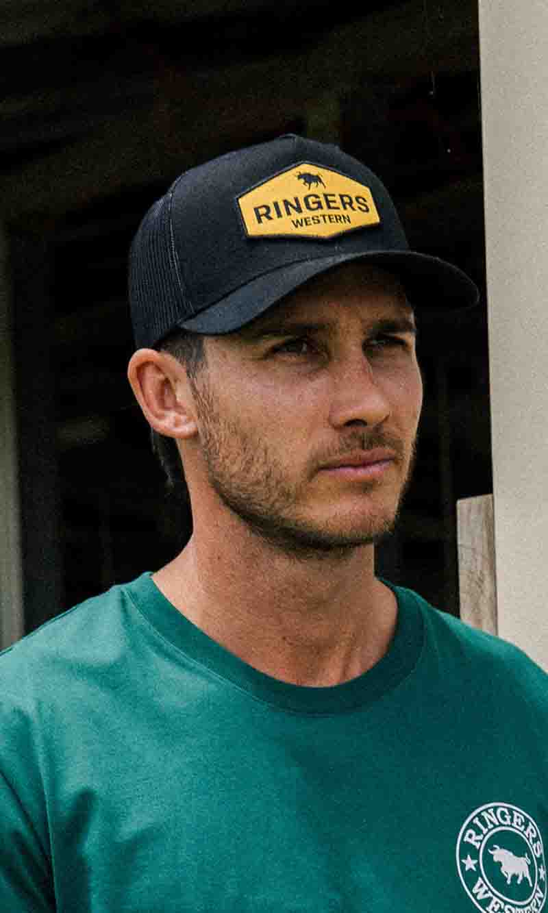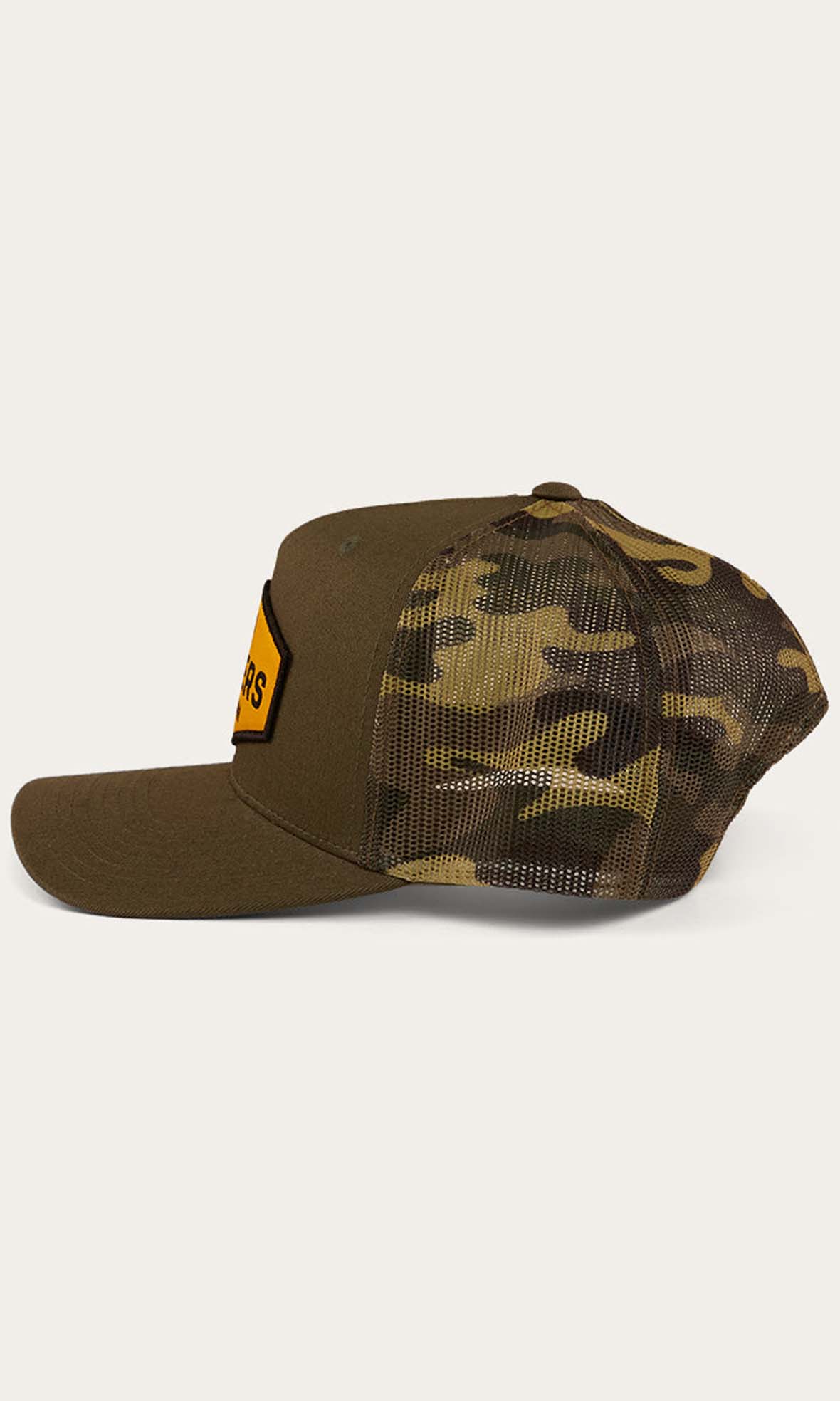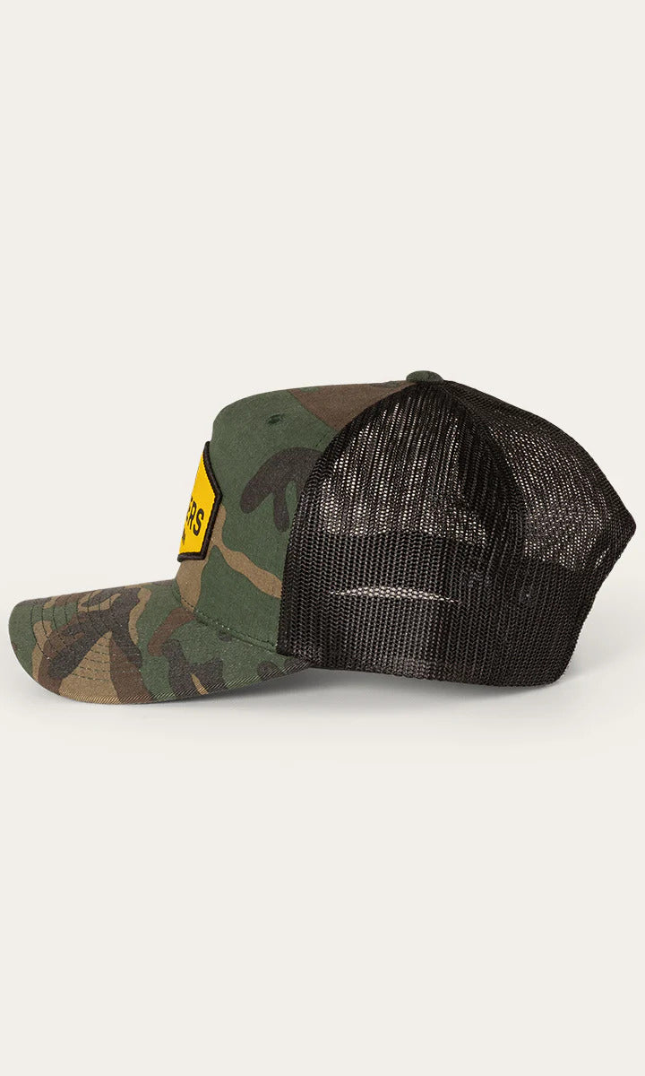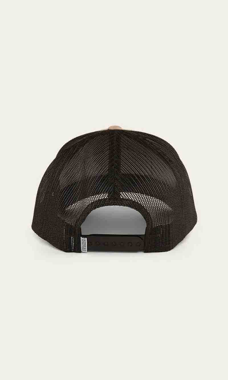 Featuring an embroidered logo patch, the Scotty shares our classic trucker cap shape, five panels with black mesh and black snap closure.