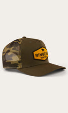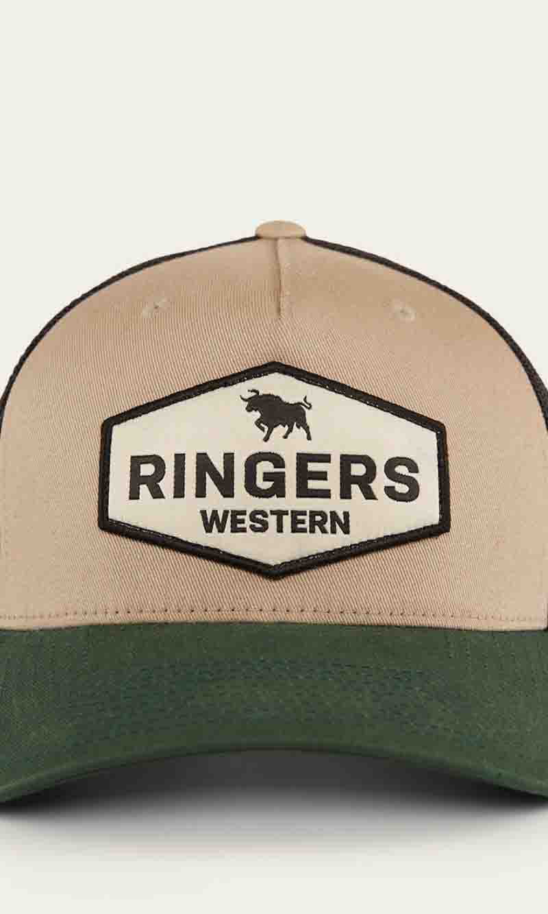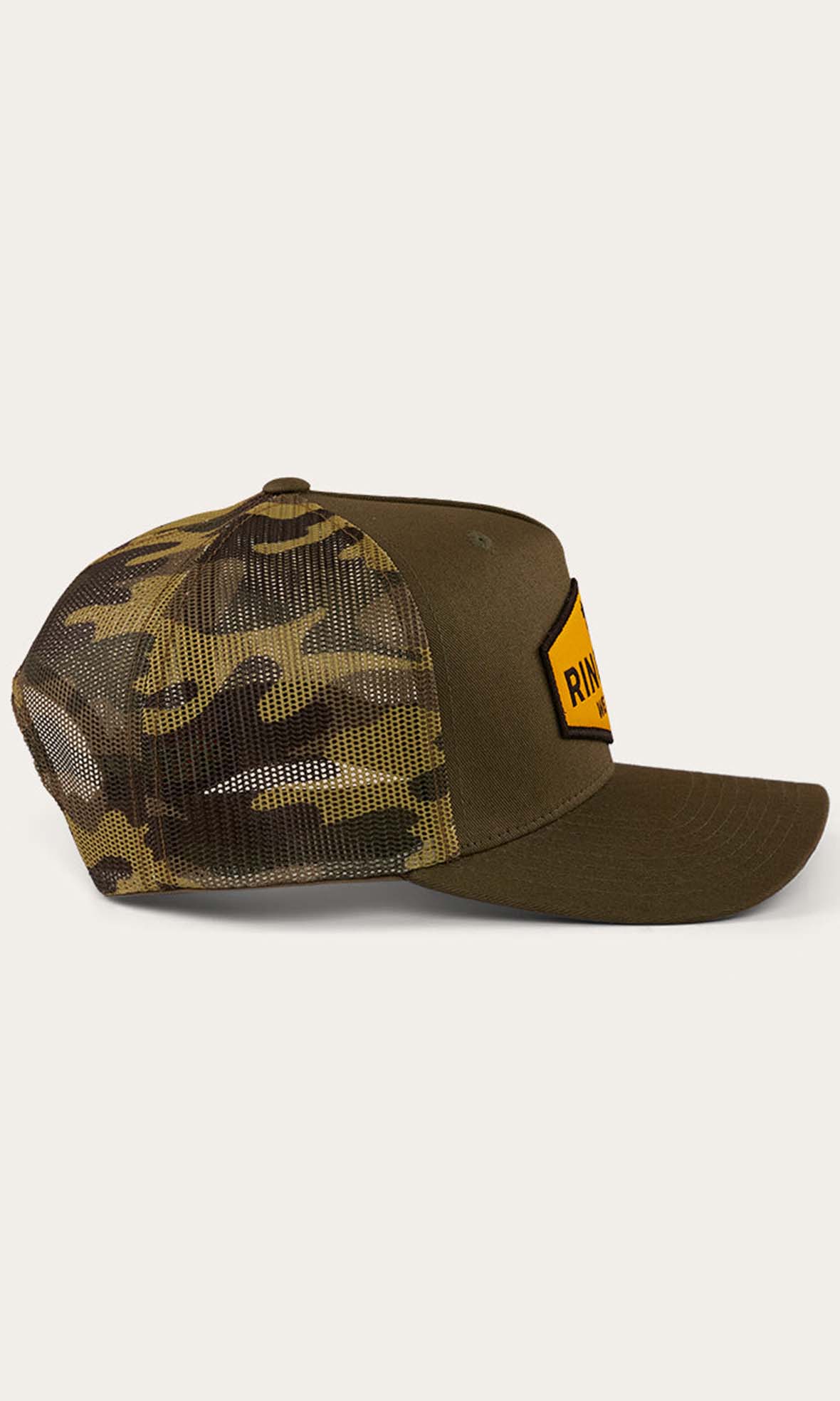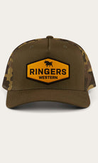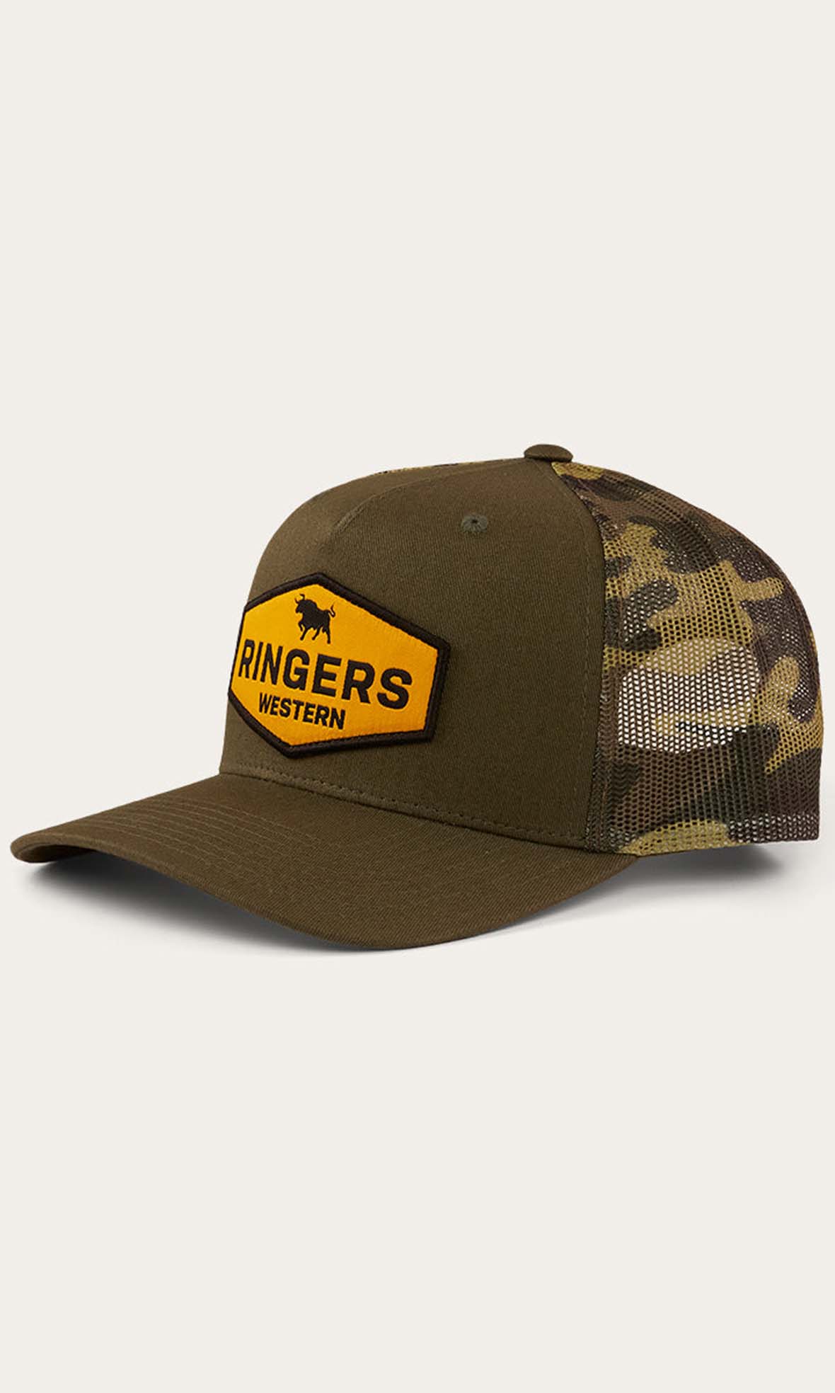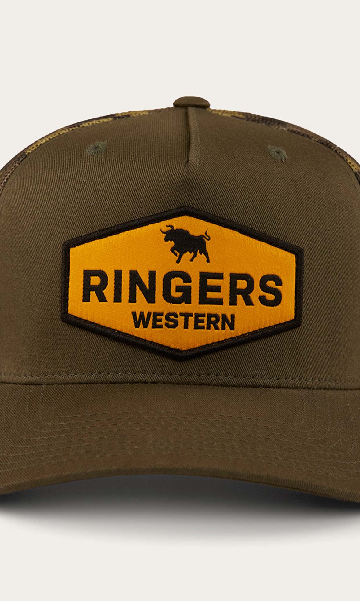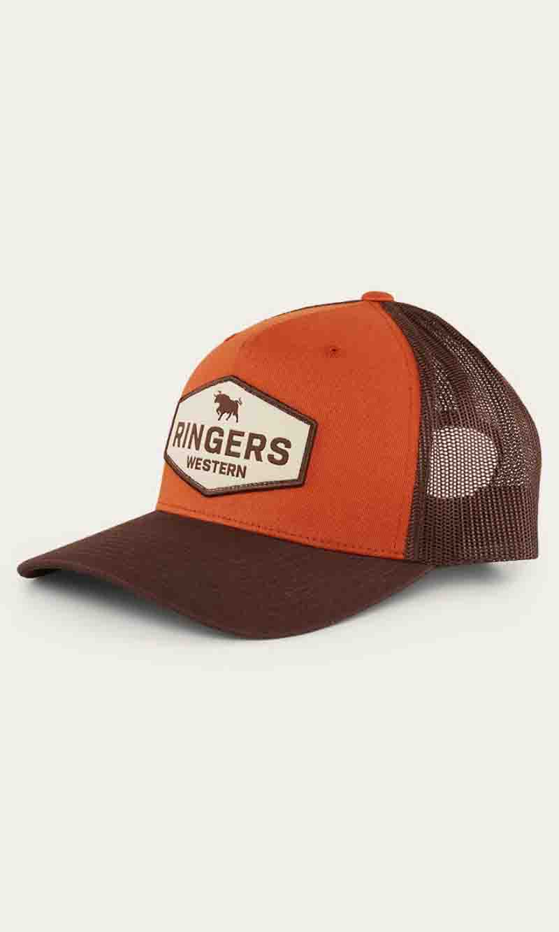 Featuring an embroidered logo patch, the Scotty shares our classic trucker cap shape, five panels with black mesh and black snap closure.