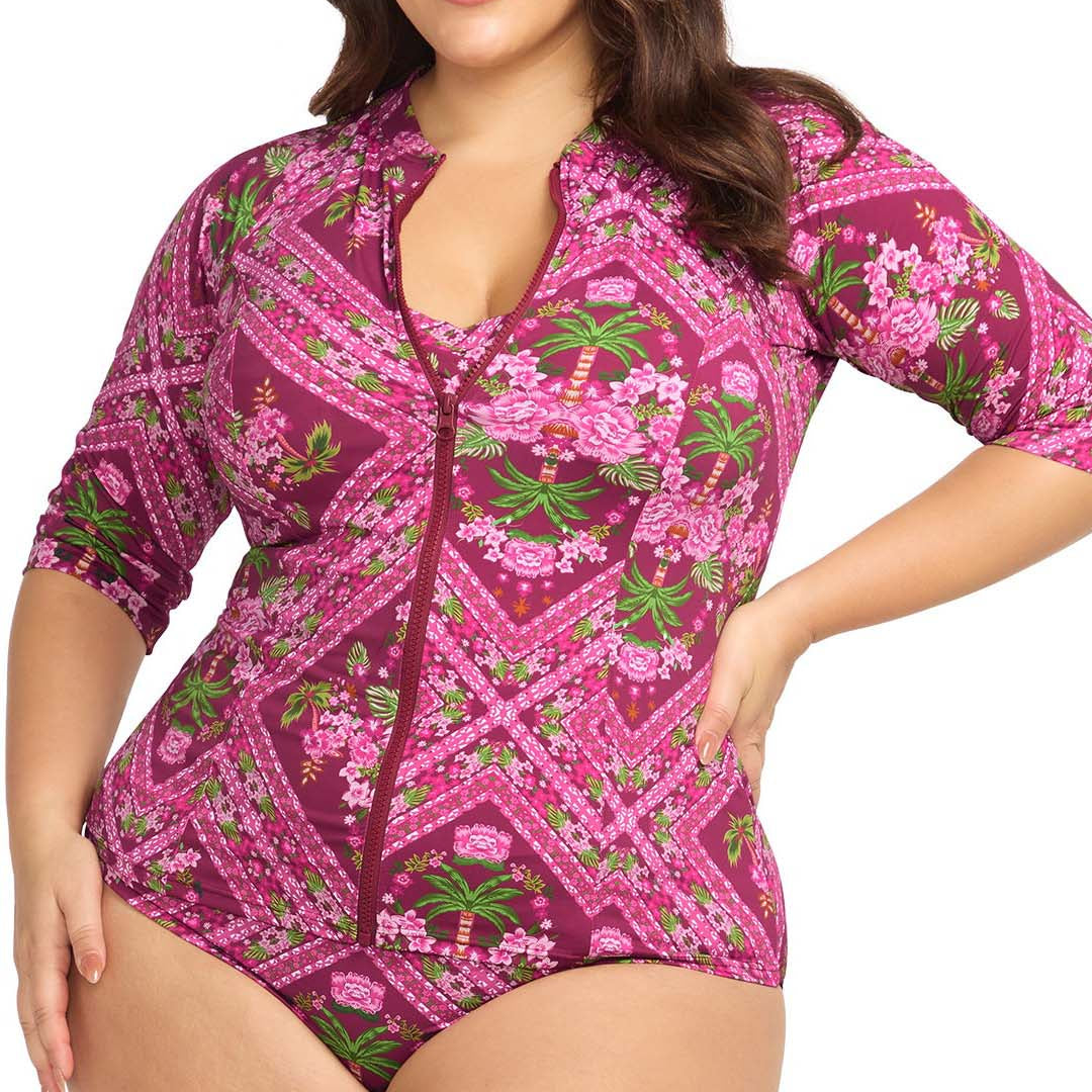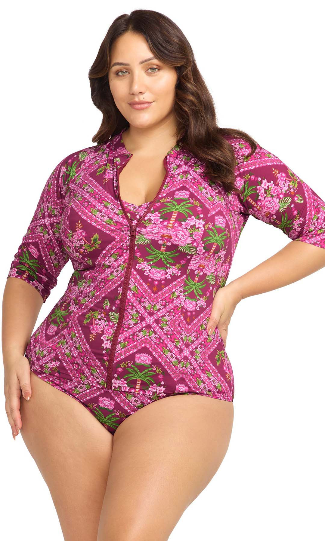 - Sunsafe UPF 50+ - The fabrication on our curve fit and plus size sun safe swimsuit styles protects skin from the sun, UPF 50+