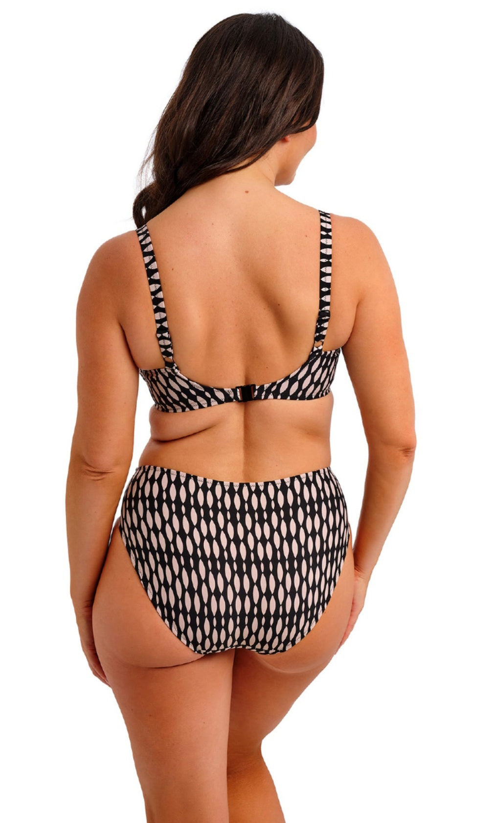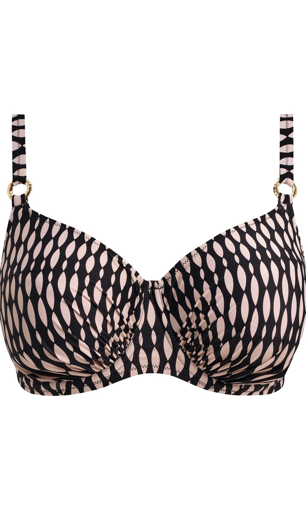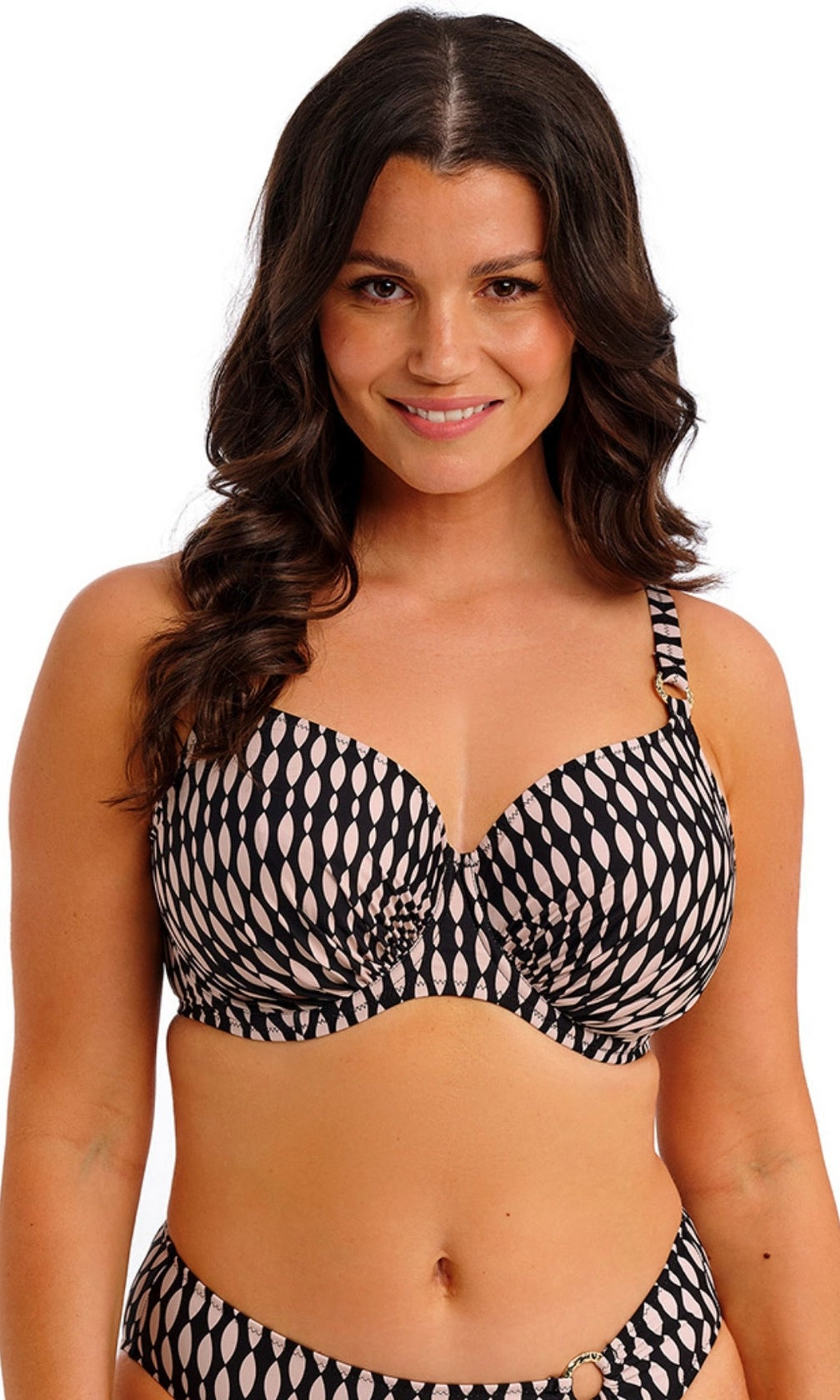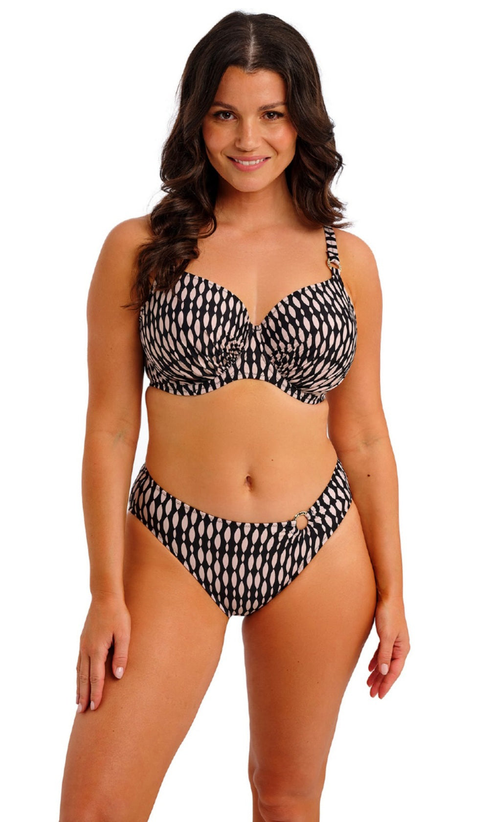 New for spring/summer, feel supported and sun-ready with Shell Bay. Featuring a graphic design, in a black and muted blush pairing, for an elevated pool side look. Subtle design details complete this collection with its hammered effect gold ring detailing. For swimwear that feels as good as it looks – choose Fantasie Swim.