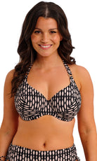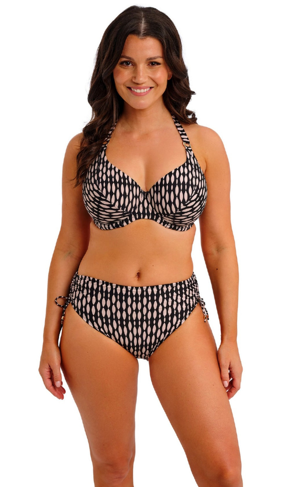 New for spring/summer, feel supported and sun-ready with Shell Bay. Featuring a graphic design, in a black and muted blush pairing, for an elevated pool side look. Subtle design details complete this collection with its hammered effect gold ring detailing. For swimwear that feels as good as it looks – choose Fantasie Swim.
