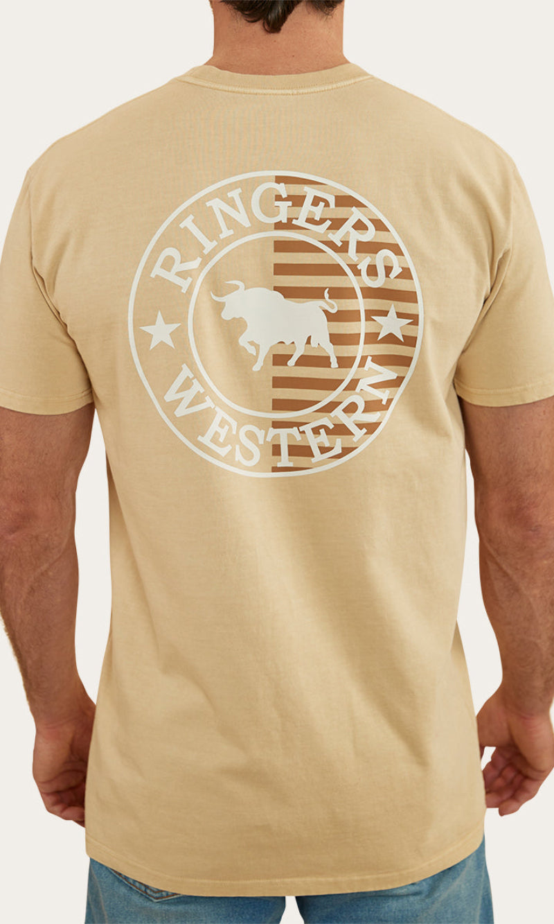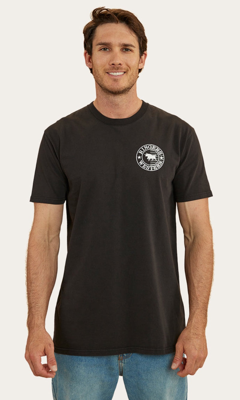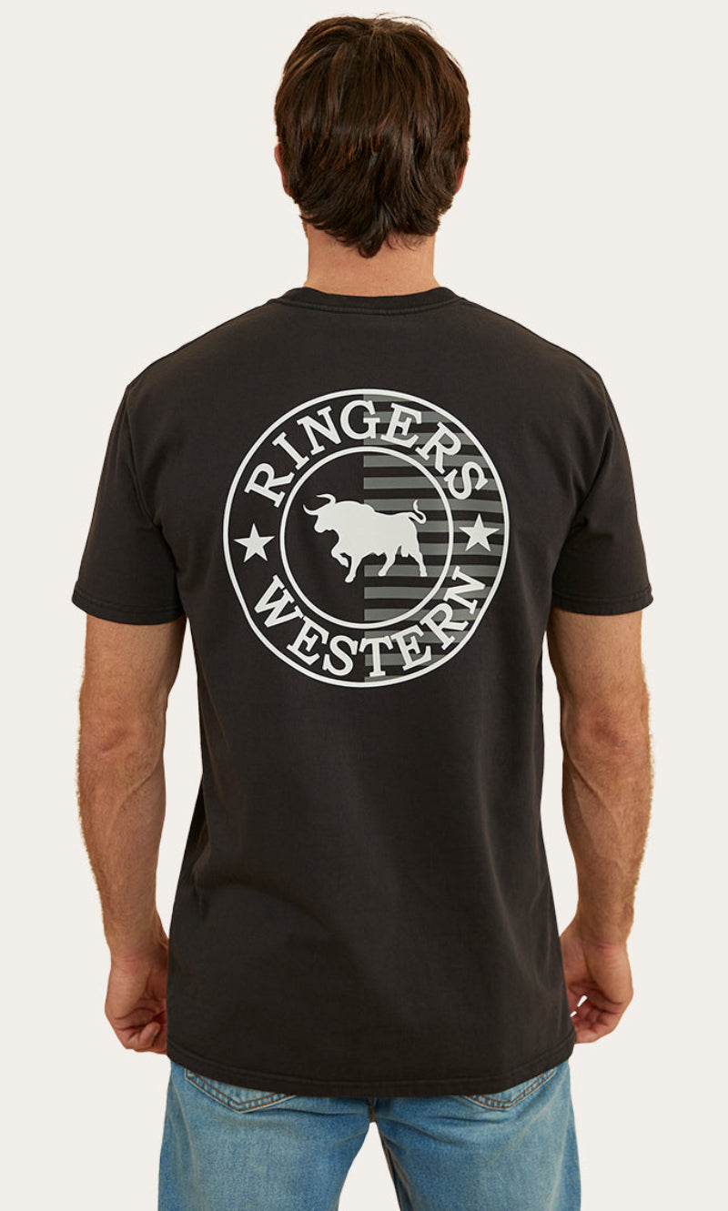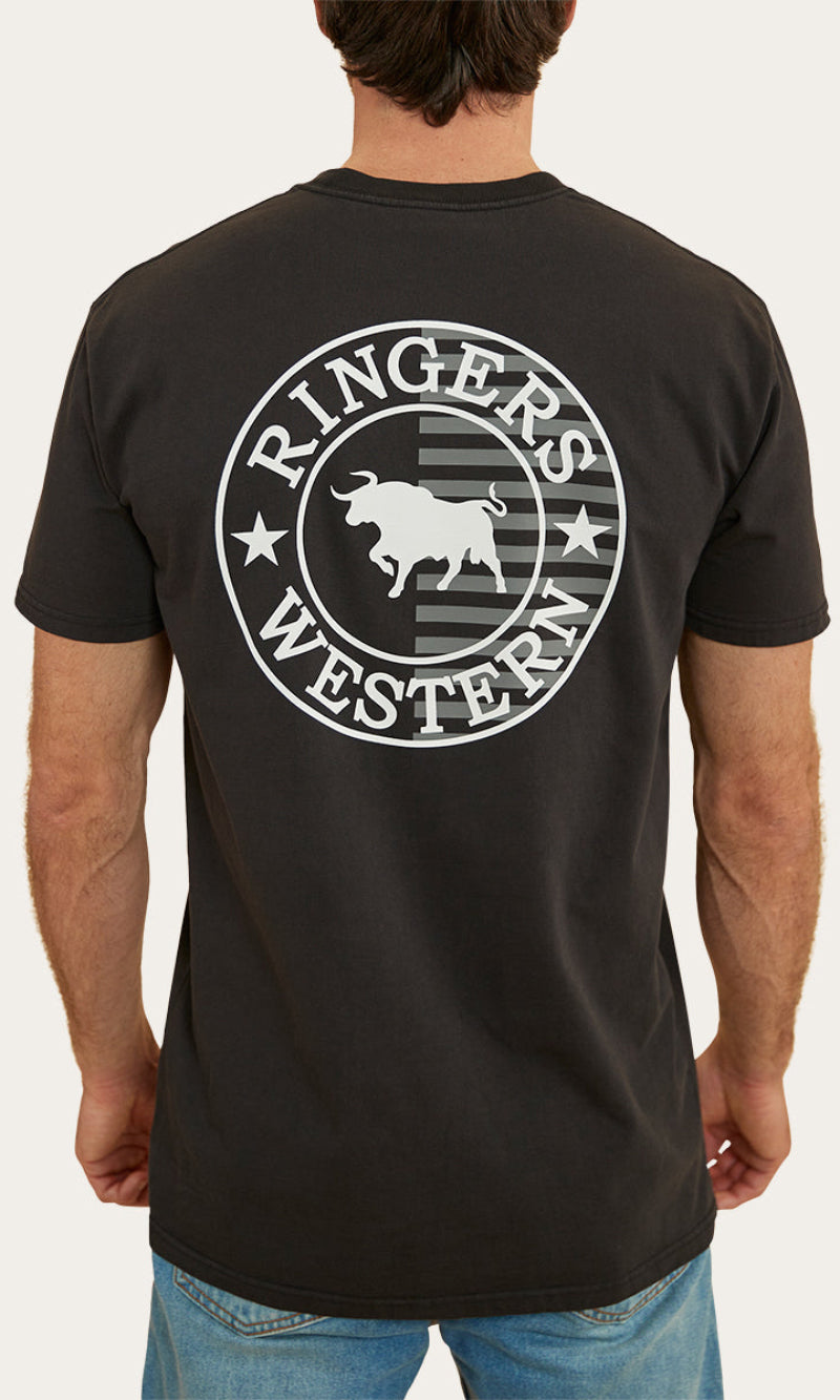 The Signature Bull Flag tee is a new take on a classic Ringers Western staple. The Flag tee is made from 240gsm, 100% cotton fibres which provide a soft and breathable feel against the skin. This natural fibre ensures great moisture absorption, making it a suitable choice for both warmer climates and layered looks. Given that this is a heavier weight, it may feel more structured than some of our other t-shirts but still carries the same Ringers Western stock fit you all know and love. Our new take on our signature crest is printed proudly on both the front and back of this garment, carrying our pride and dedication to our products throughout the whole flag range. Our stock fit is perfect for those who prioritise comfort and a little extra breathing room.