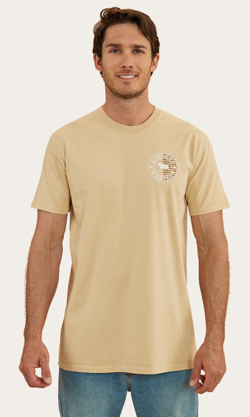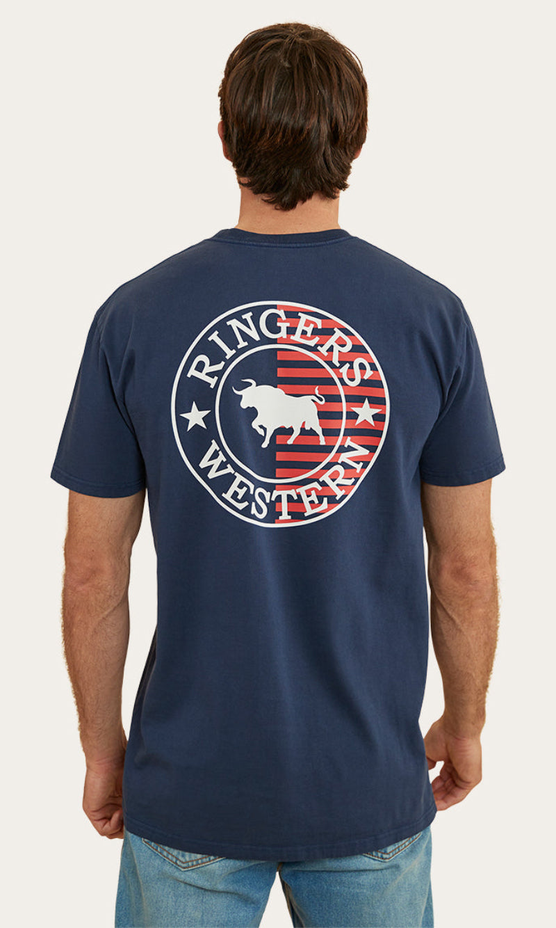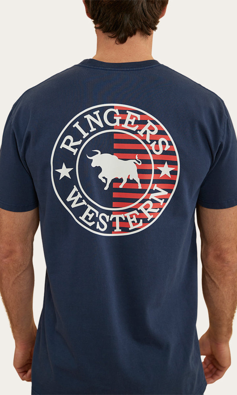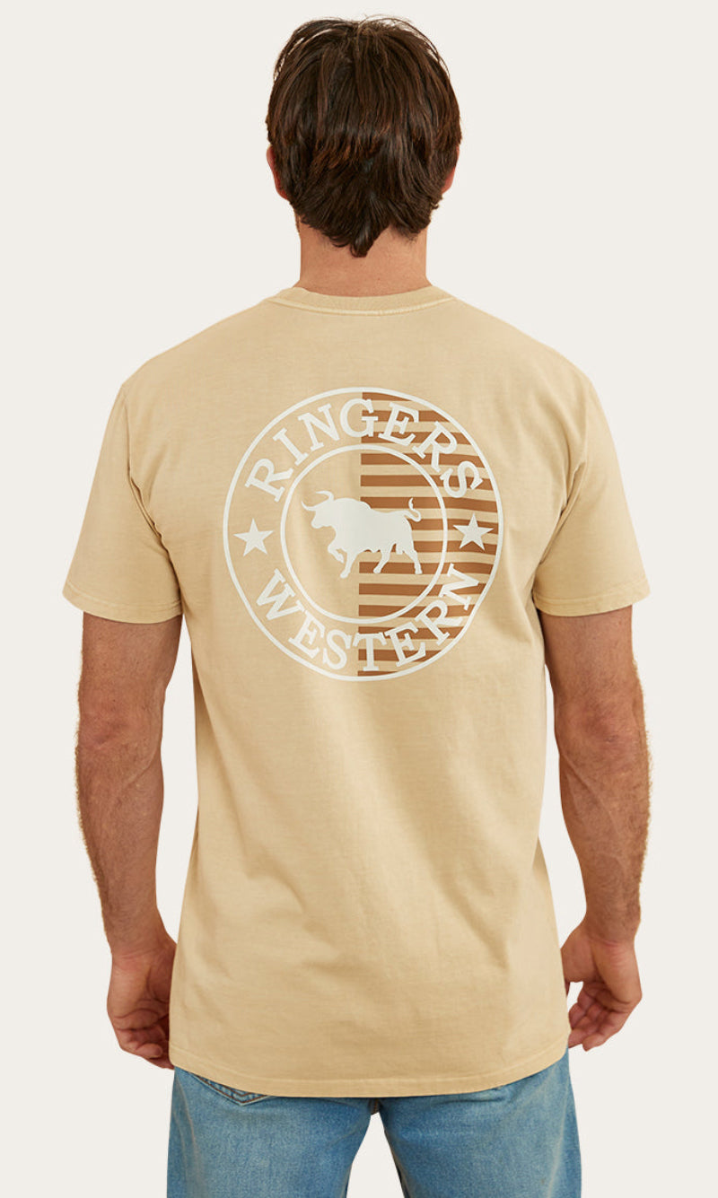 The Signature Bull Flag tee is a new take on a classic Ringers Western staple. The Flag tee is made from 240gsm, 100% cotton fibres which provide a soft and breathable feel against the skin. This natural fibre ensures great moisture absorption, making it a suitable choice for both warmer climates and layered looks. Given that this is a heavier weight, it may feel more structured than some of our other t-shirts but still carries the same Ringers Western stock fit you all know and love. Our new take on our signature crest is printed proudly on both the front and back of this garment, carrying our pride and dedication to our products throughout the whole flag range. Our stock fit is perfect for those who prioritise comfort and a little extra breathing room.
