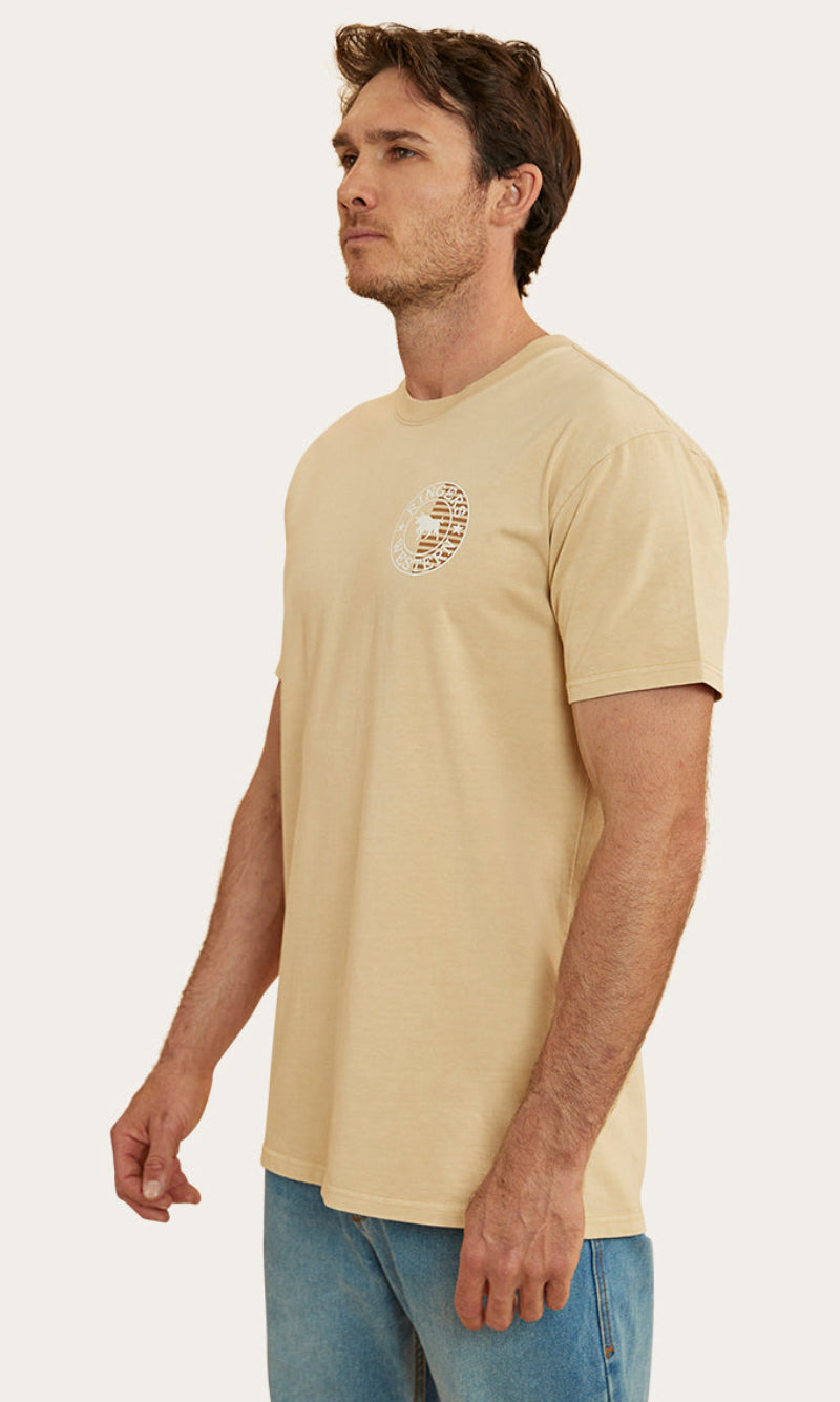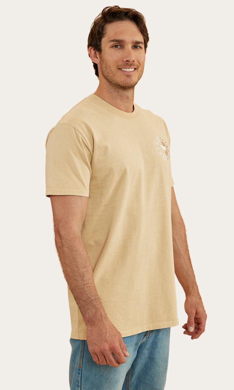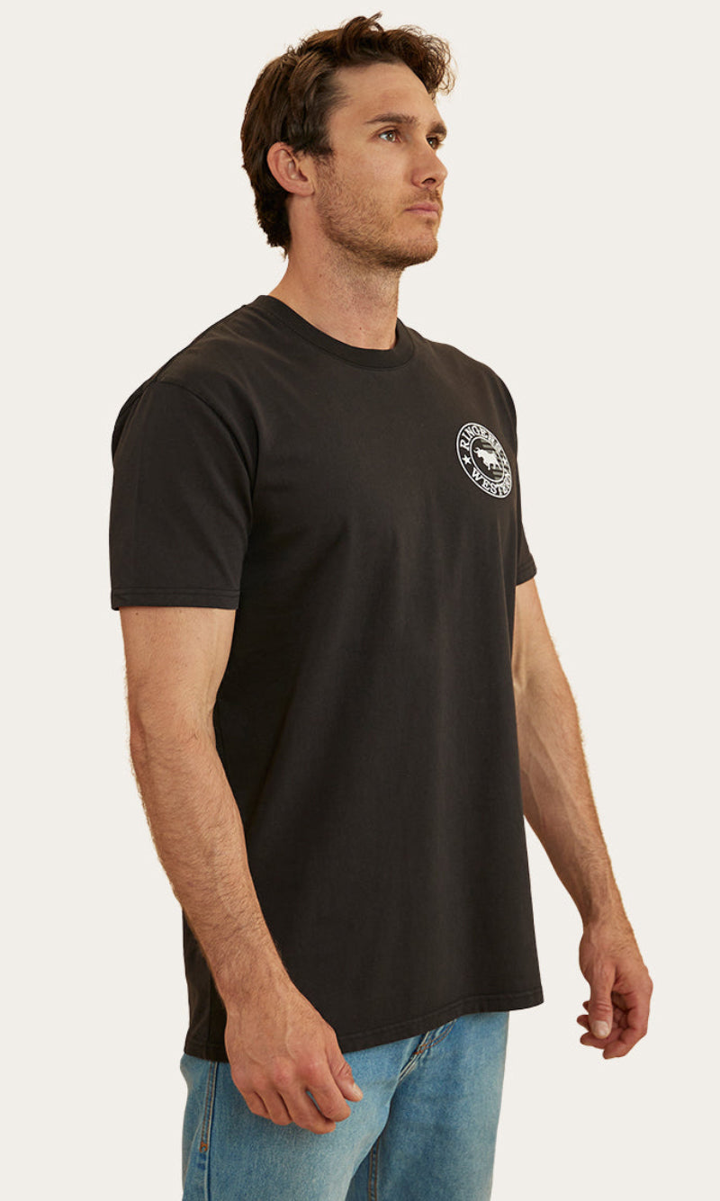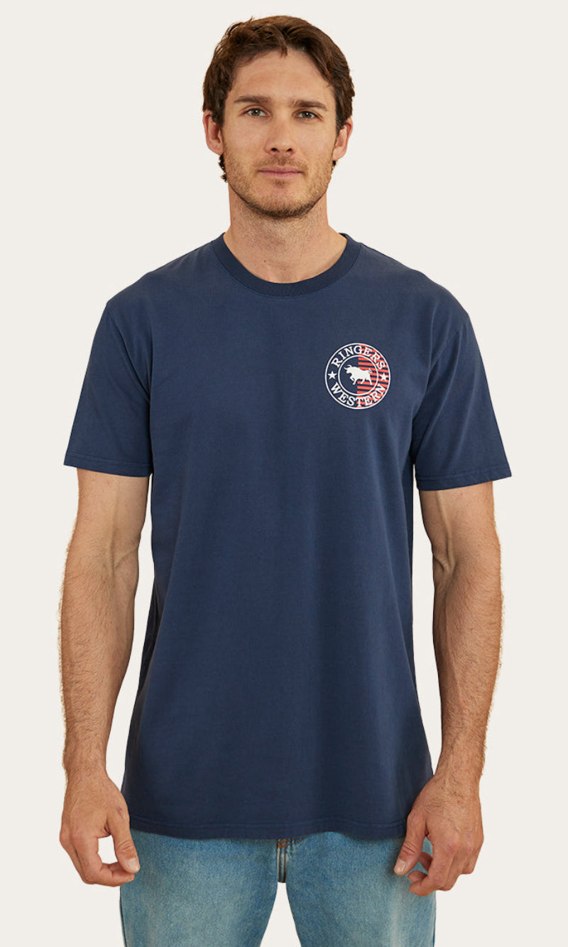 The Signature Bull Flag tee is a new take on a classic Ringers Western staple. The Flag tee is made from 240gsm, 100% cotton fibres which provide a soft and breathable feel against the skin. This natural fibre ensures great moisture absorption, making it a suitable choice for both warmer climates and layered looks. Given that this is a heavier weight, it may feel more structured than some of our other t-shirts but still carries the same Ringers Western stock fit you all know and love. Our new take on our signature crest is printed proudly on both the front and back of this garment, carrying our pride and dedication to our products throughout the whole flag range. Our stock fit is perfect for those who prioritise comfort and a little extra breathing room.