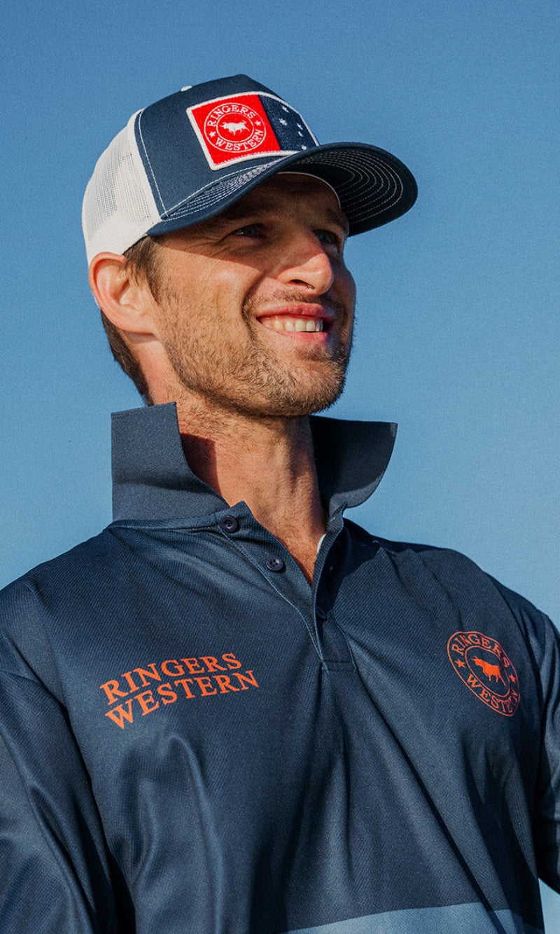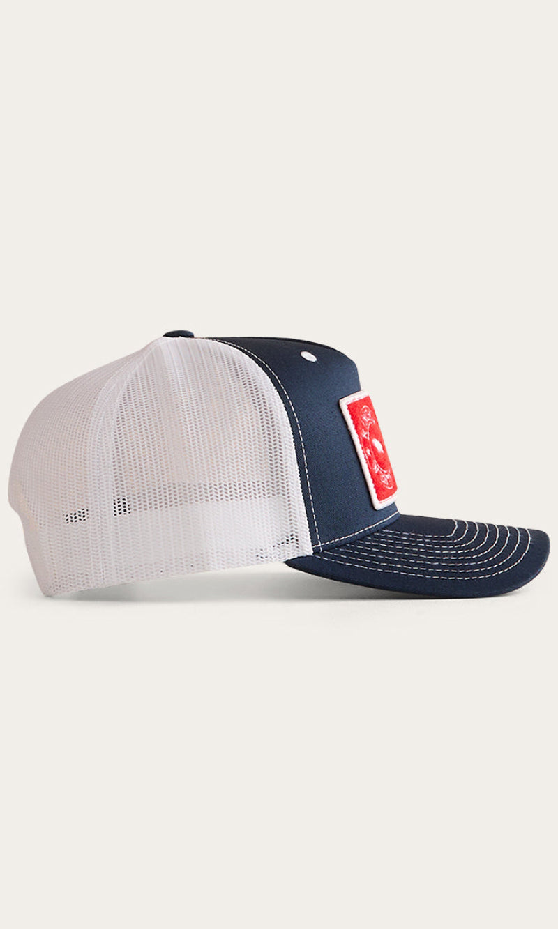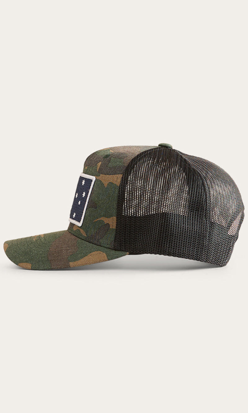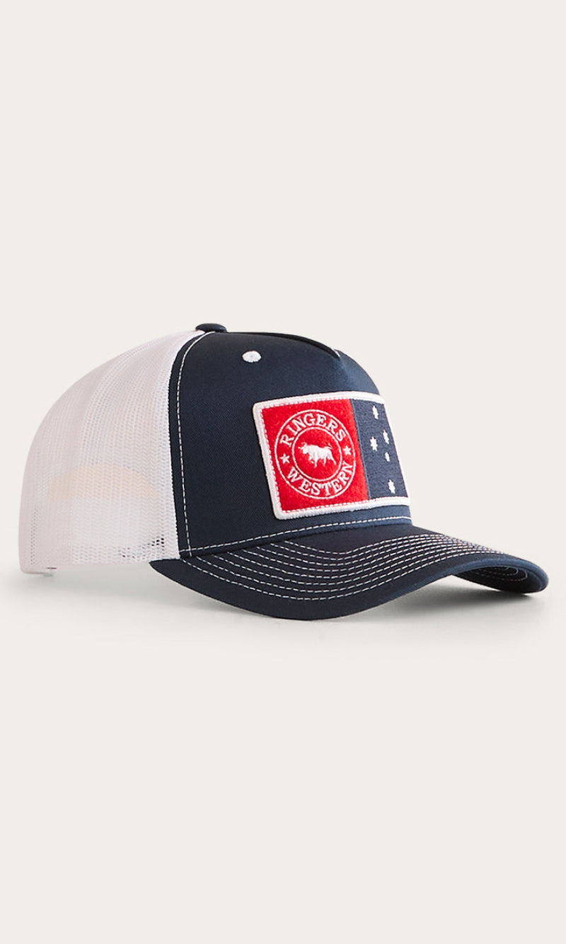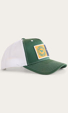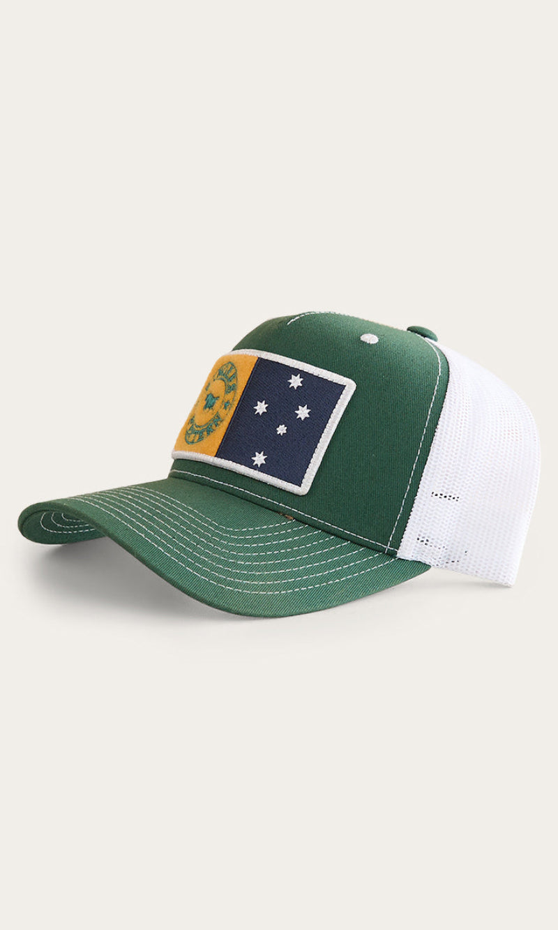 Introducing the Southern Son trucker, this cap is a mid profile design proudly featuring the Ringers Western logo alongside the Southern Cross on an embroidered patch. This cap has a mesh back for optimal ventilation, ensuring all day comfort on hot summer days. The adjustable snapback provides a customisable and comfortable fit. Whether you're out travelling the open road, attending a local festival, or just representing the brand, our trucker caps have you covered.