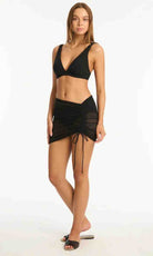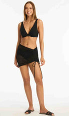 Surf Mesh Drawstring Mini Skirt Black