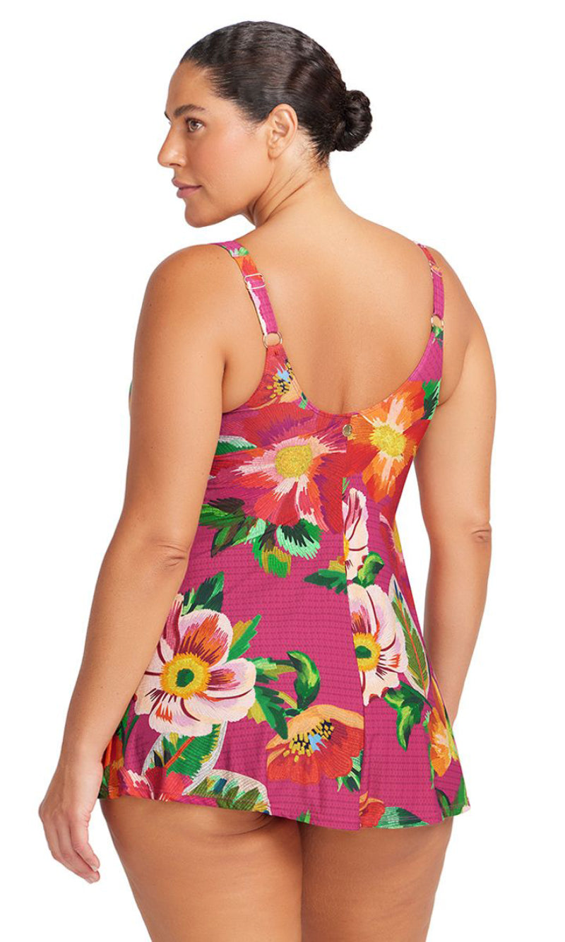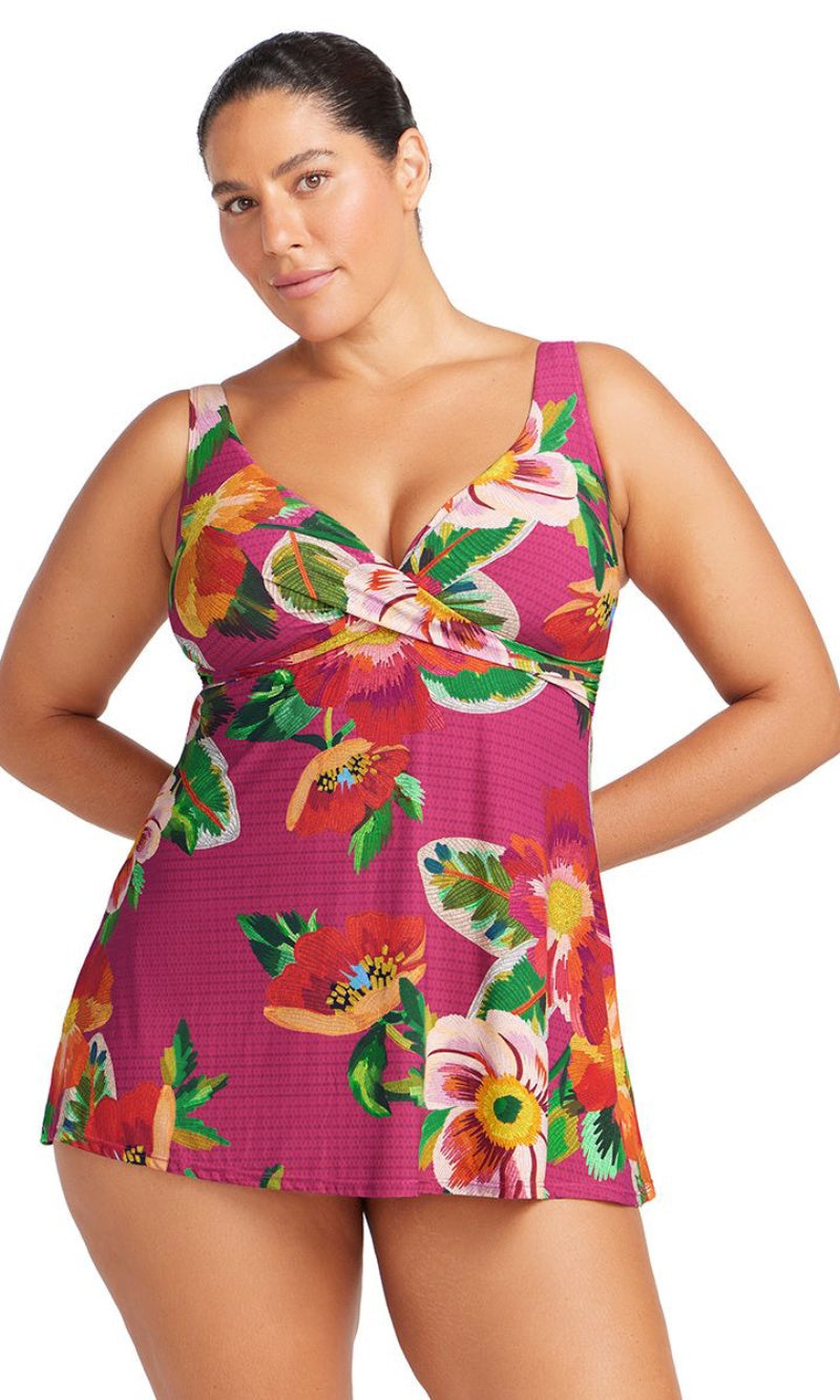 Artesands Fits Your Curves. Our Delacroix one piece swimdress shape is our wire free comfort and support swimdress style. Every woman needs a swimsuit that makes you feel good when you put it on and this is our curve fit and plus size shape Delacroix. This style has a cross front design with multifit cup support that fits a D cup , DD cup, E cup, F cup and a G cup. The Delacroix one piece swimdress silhouette is a waist defining A-line design that will not cling to your body. Delacroix has internal full body 360 degree powermesh for body sculpting confidence.