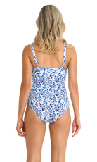 Powermesh fabric has been incorporated in the front of the suit to smooth and flatten the tummy and shape curves.