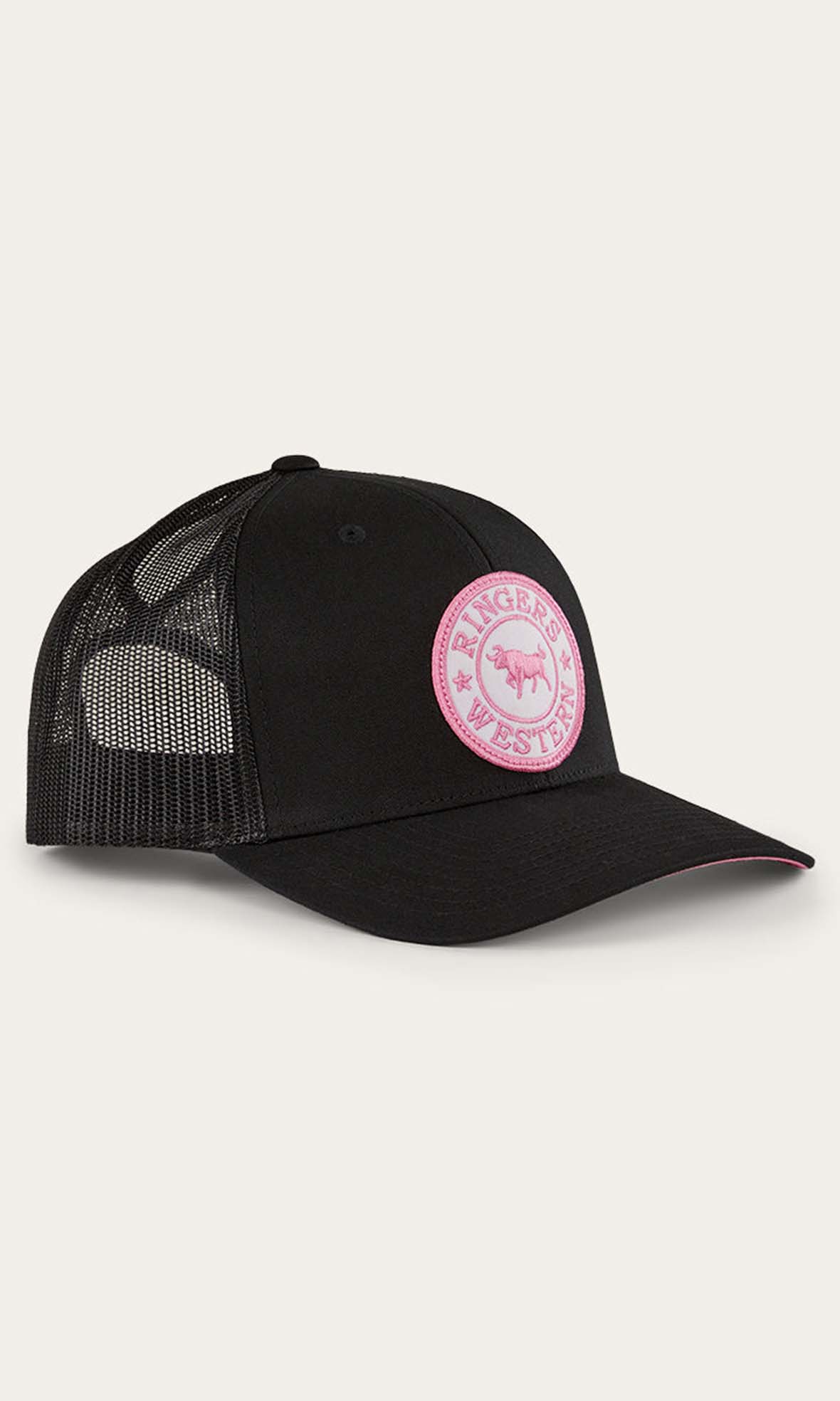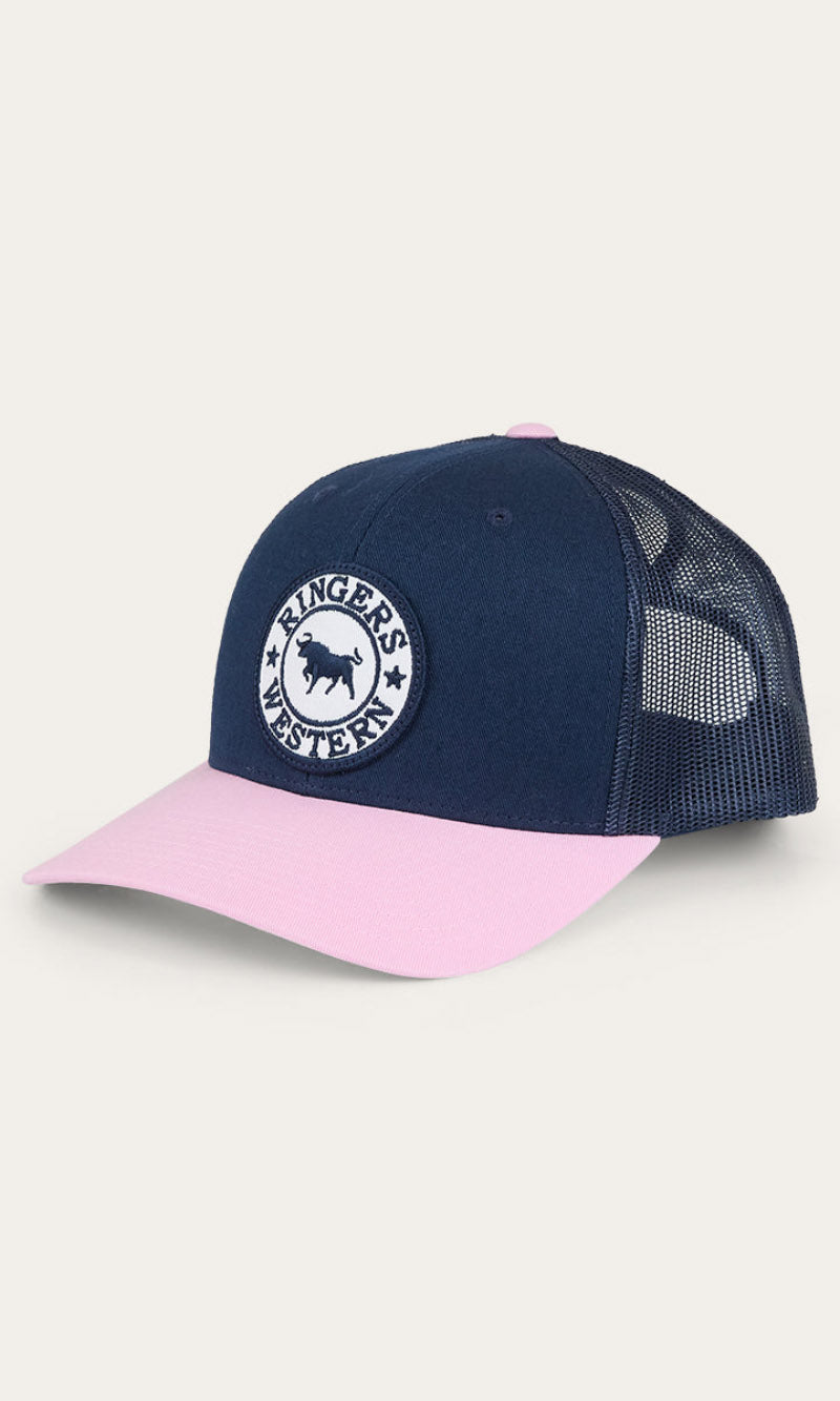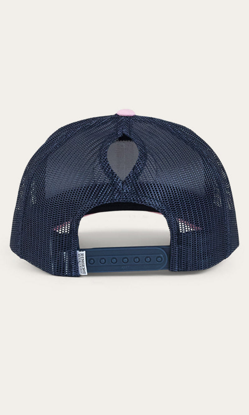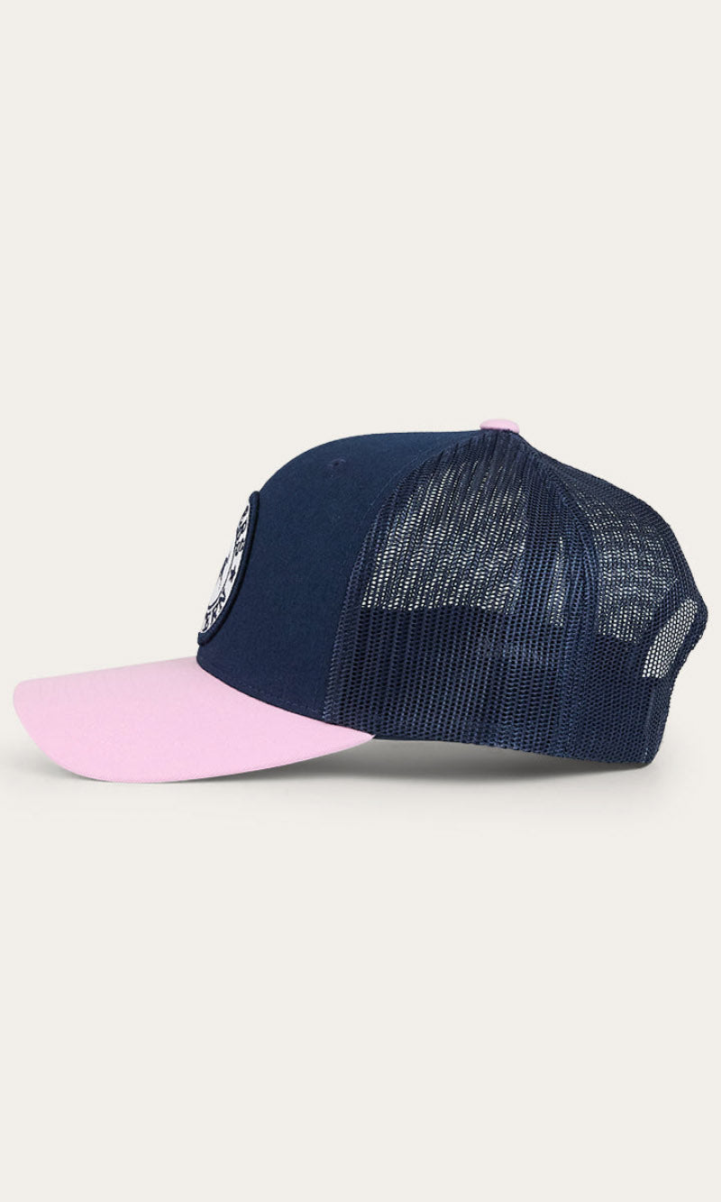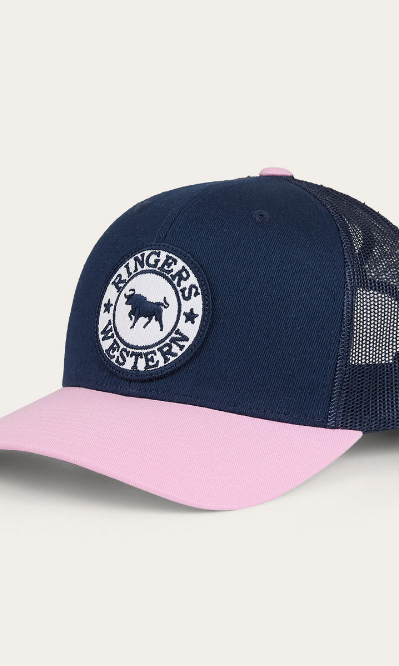 Tara is our first six-panel trucker cap design to feature two openings - one for the traditional look and the other for the perfect high ponytail. The front panel is made from cotton twill, while the back panel is made from a lightweight mesh adding to the overall ventilation of this cap. Featuring a Ringers Western logo embroidery patch on the front panel and a snap back closure for a secure and adjustable fit.