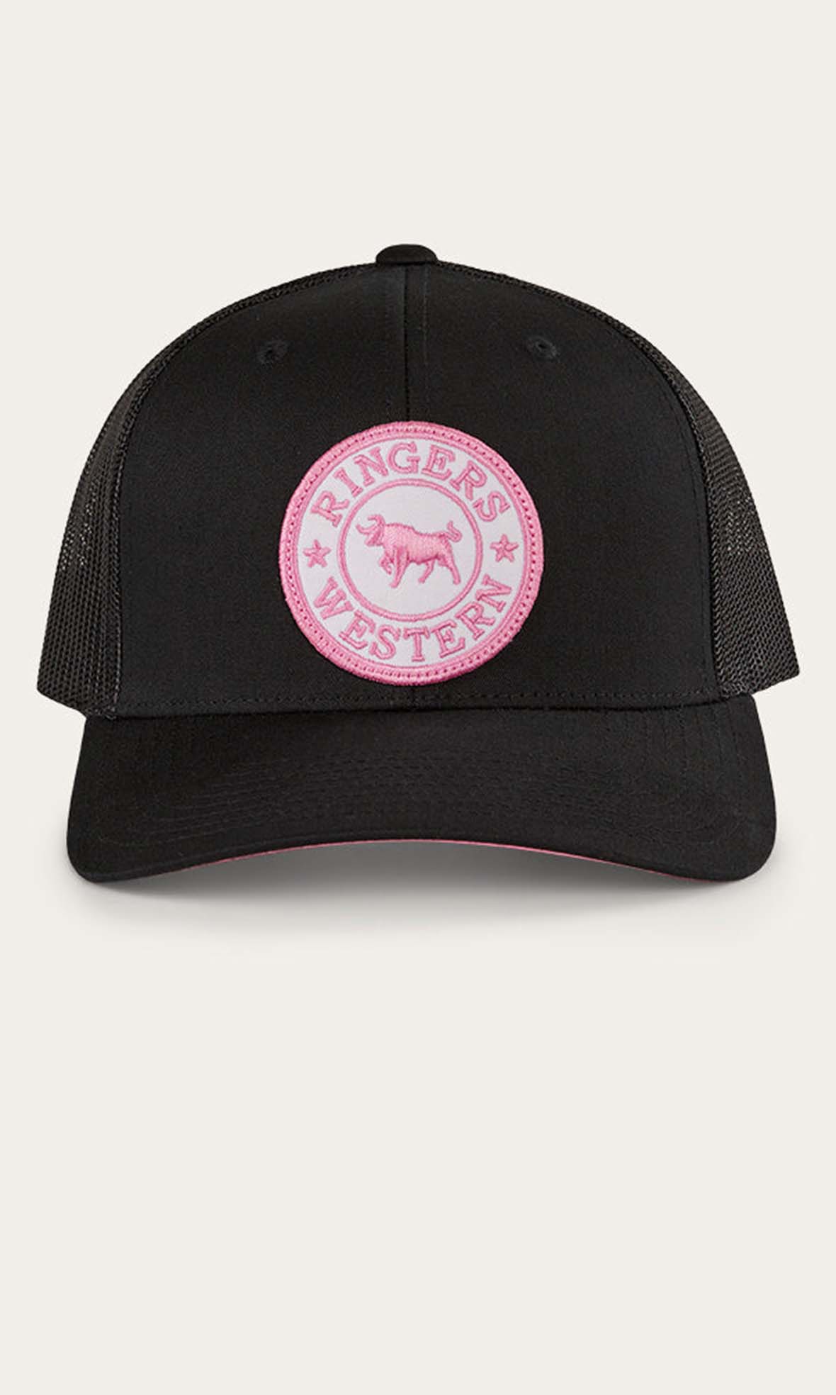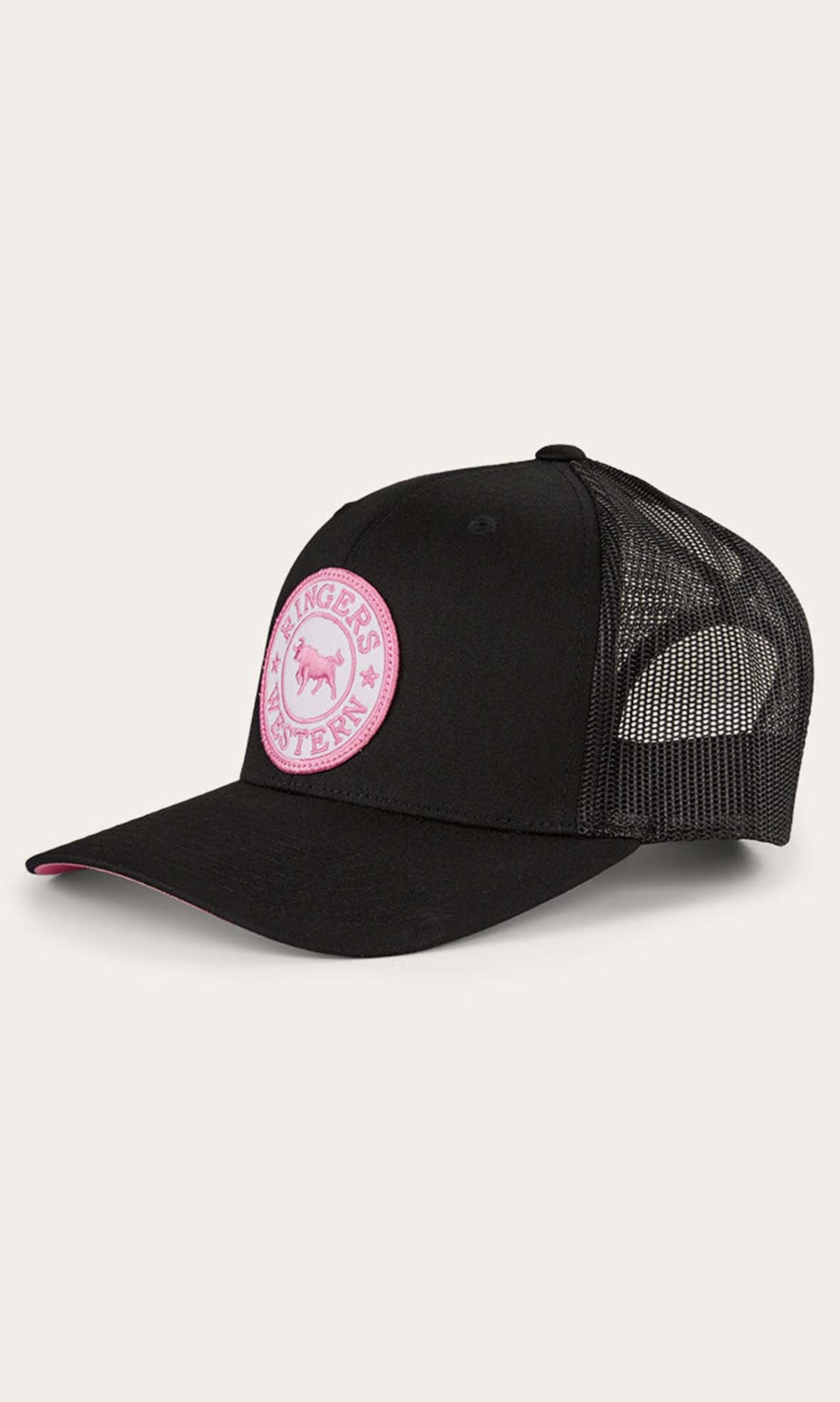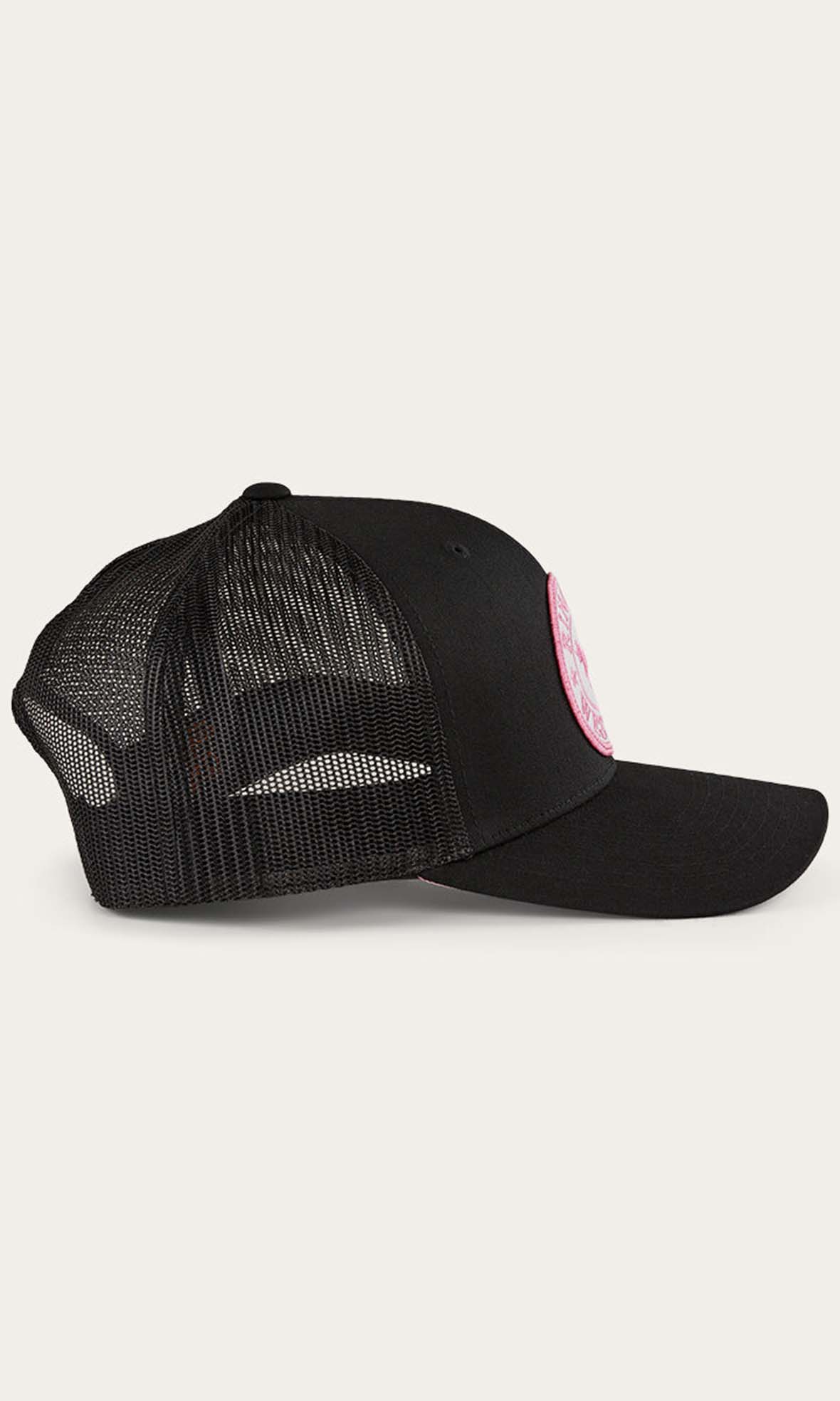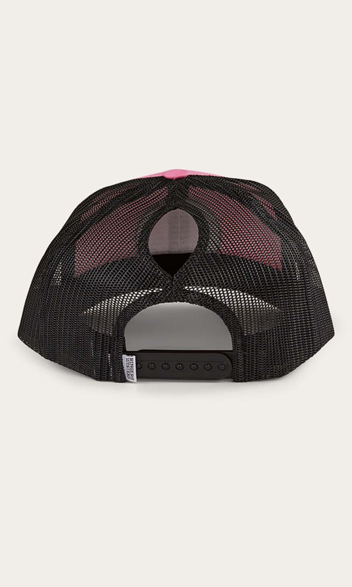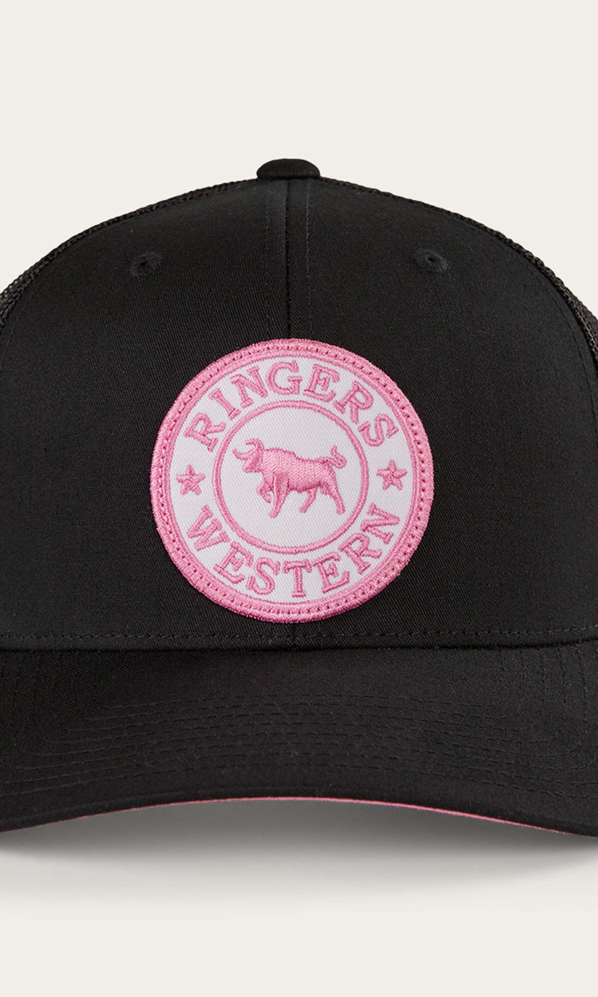 Tara is our first six-panel trucker cap design to feature two openings - one for the traditional look and the other for the perfect high ponytail. The front panel is made from cotton twill, while the back panel is made from a lightweight mesh adding to the overall ventilation of this cap. Featuring a Ringers Western logo embroidery patch on the front panel and a snap back closure for a secure and adjustable fit.