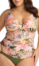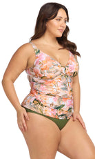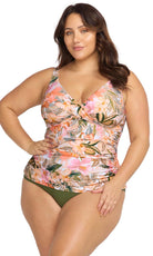 Artesands Fits Your Curves. Our Delacroix tankini top is our wire free comfort and support style. Every woman needs a swimsuit that makes you feel good when you put it on and this is our curve fit and plus size shape Delacroix. This style has a cross front design with multifit cup support that fits a D cup , DD cup, E cup, F cup and a G cup. Delacroix has full body 360 degree powermesh and front body ruching for body sculpting confidence. A tankini is the perfect option for full coverage when you need a different size top and bottom. This make a perfect curve fitting tankini set when bought as a pair. Our curve fit and plus size tankini tops are a long line to avoid the fabric riding up when you're in the water.