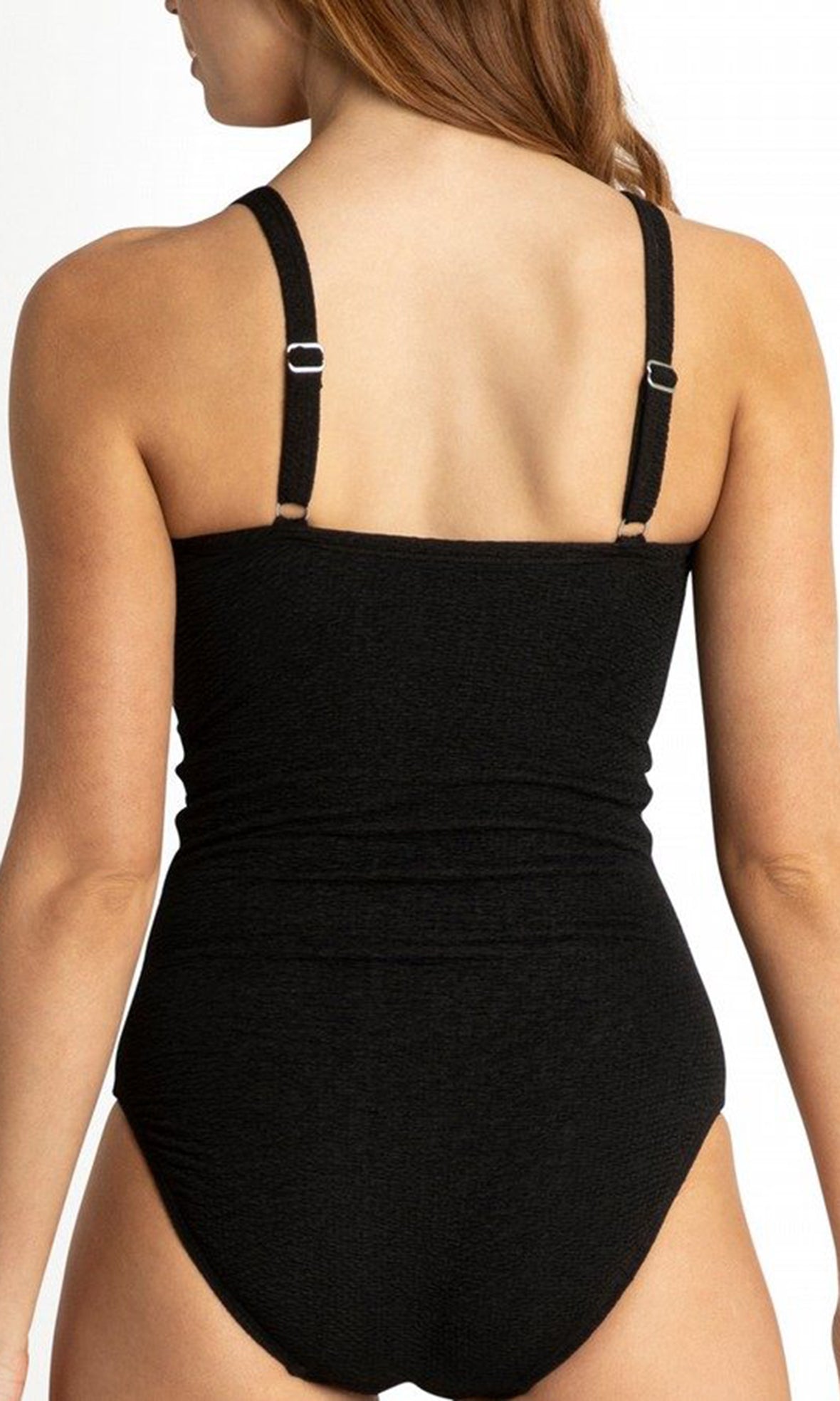 Powermesh fabric has been incorporated in the front of the suit to smooth and flatten the tummy and shape curves.