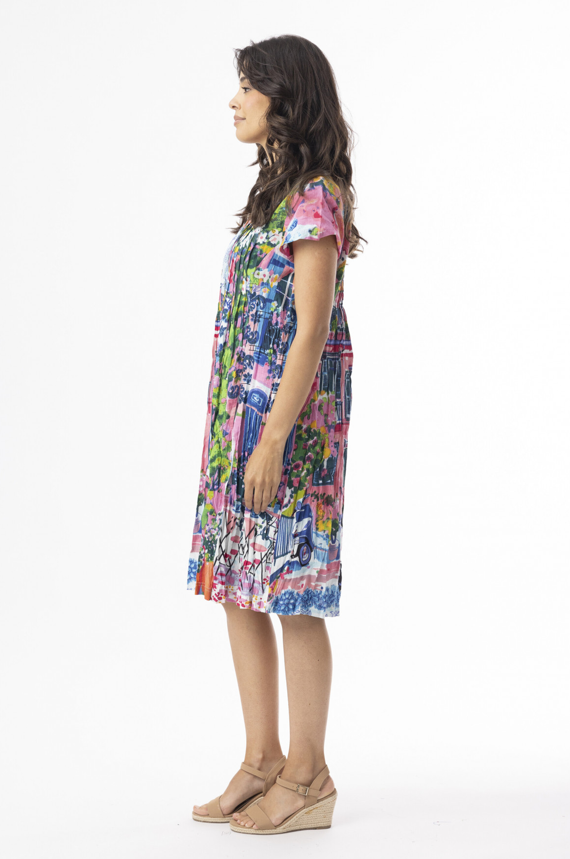 Welcome summer in our Oasis easy fit dress. Featuring a flattering v-neckline, chic pleats at the bust, and short sleeves, this piece offers a stylish solution for any occasion. Your new go-to summer dress!