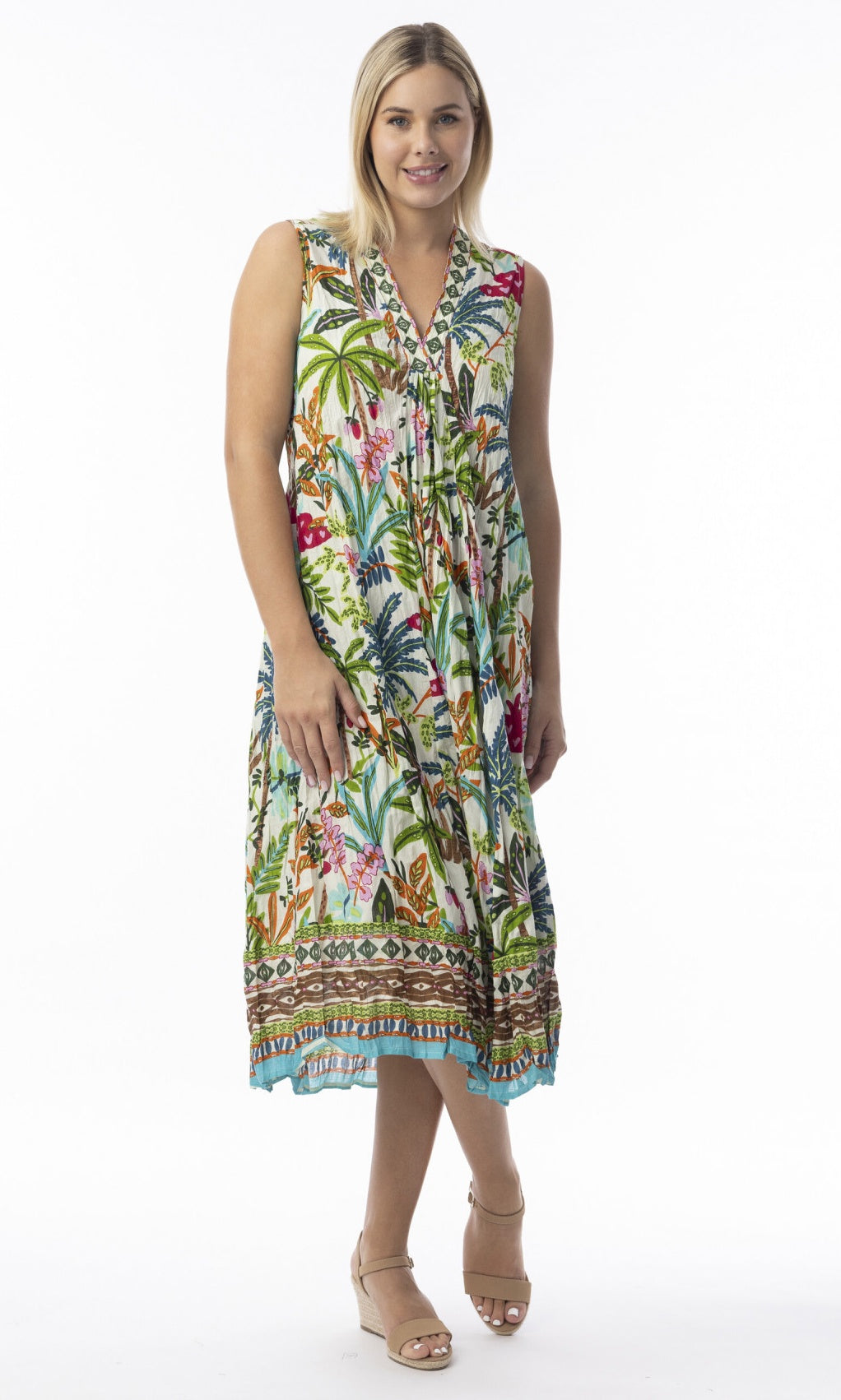 Crinkle Cotton Dress Layers Frill Sleeve Ovahe
