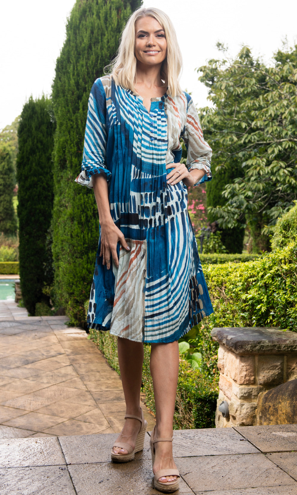 Cotton Dress Reversible Short Sleeve Round Neck Alberobello