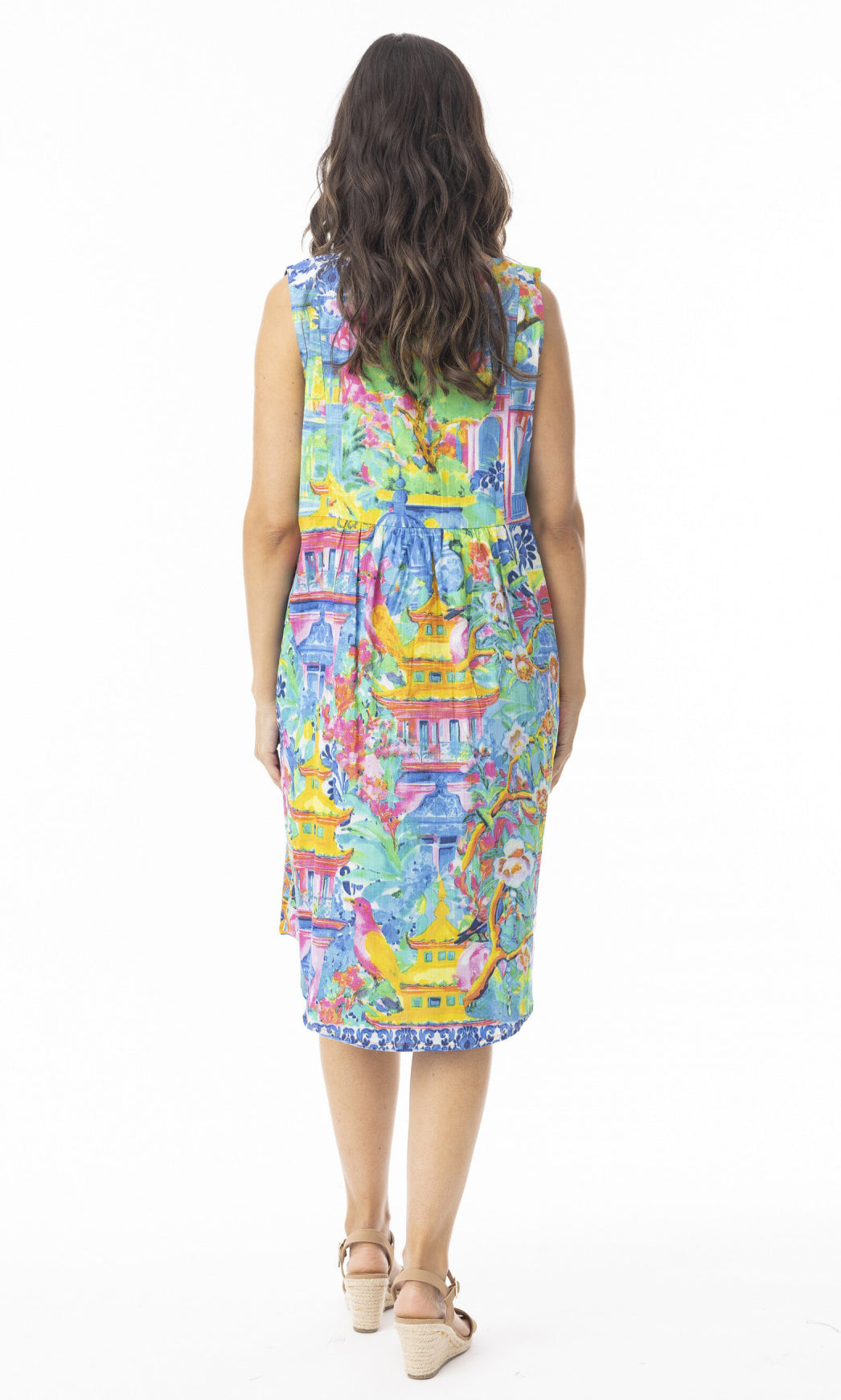 Cotton Dress Shift Sleeveless Side Panel Reversible Okayama