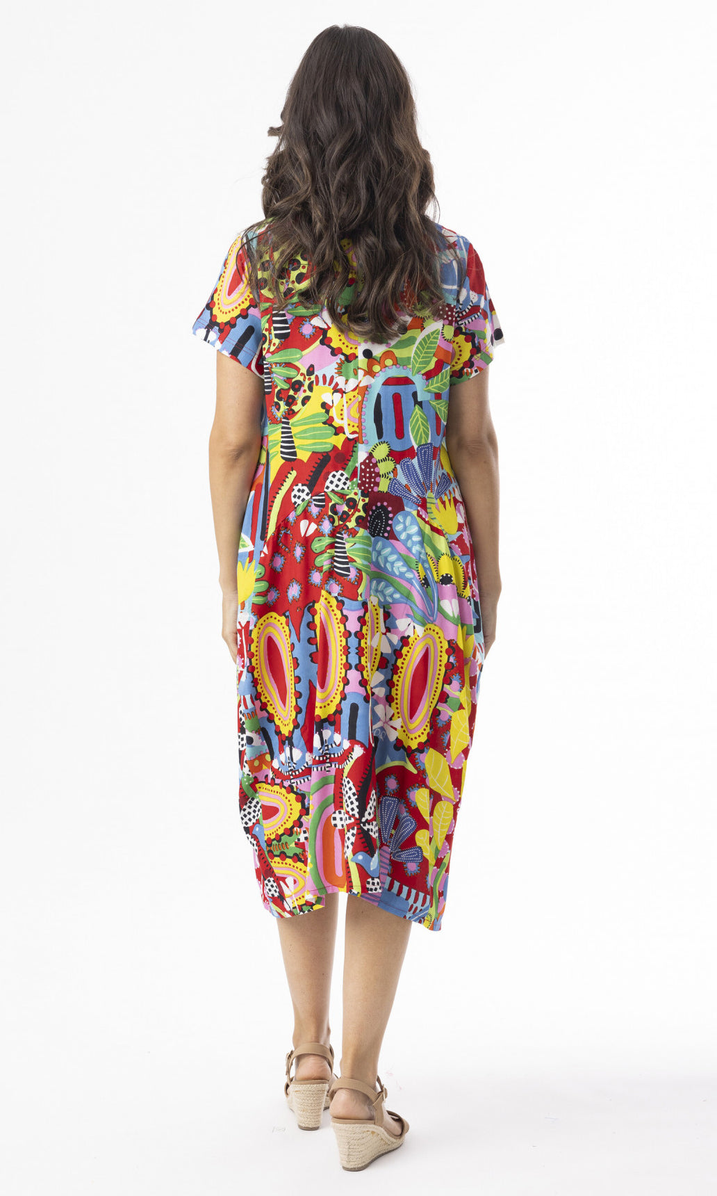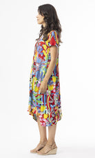 Discover our vibrant Ayangue bubble dress, perfect for sunny beach holidays! This dress features a comfortable crew neckline, short sleeves, and a curved waist seam. Ideal for effortless, stylish comfort.