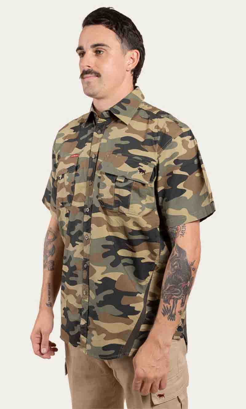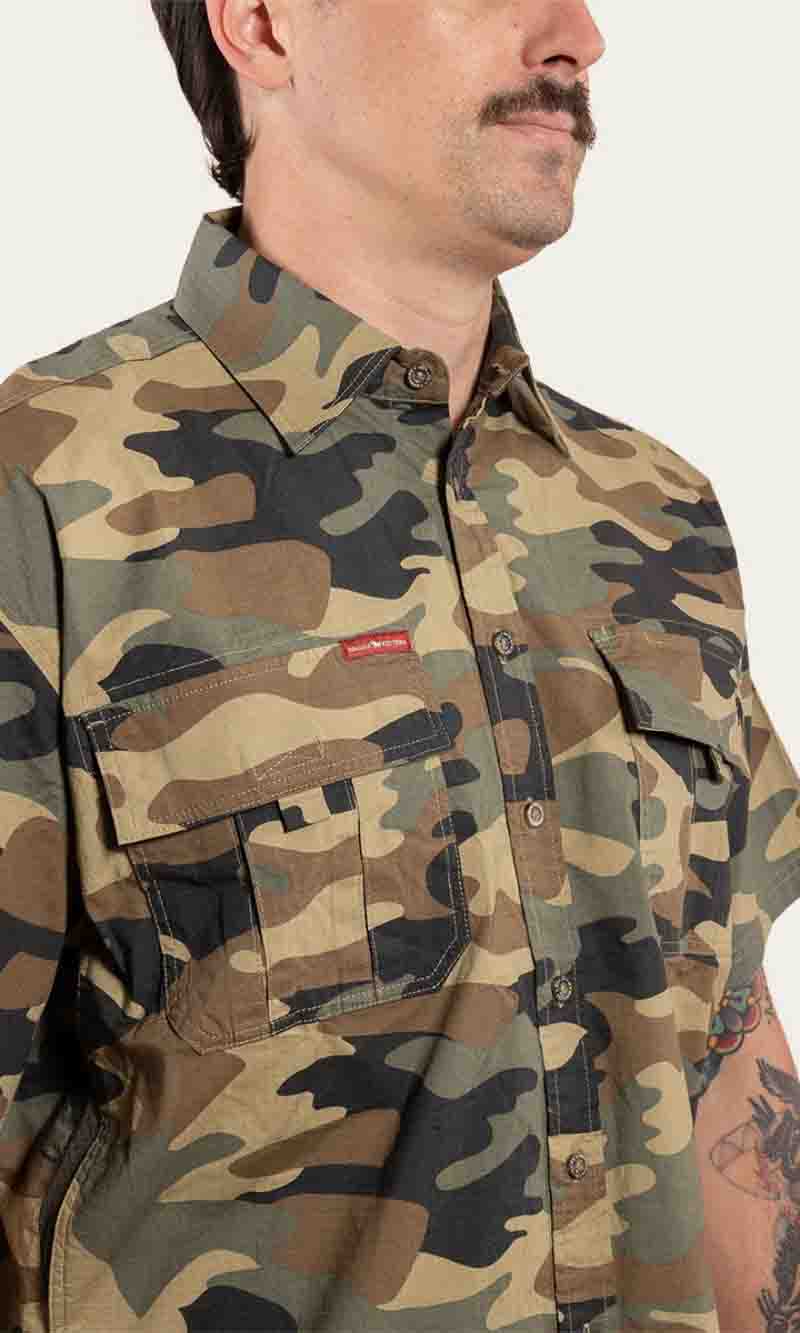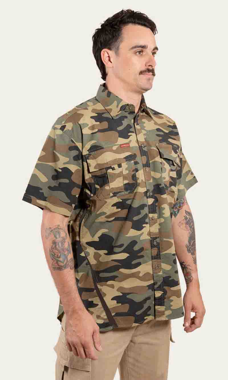 Bulgarra Mens Ripstop Full Button Work Shirt Camo