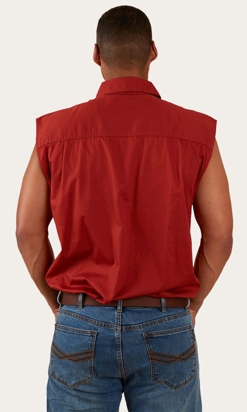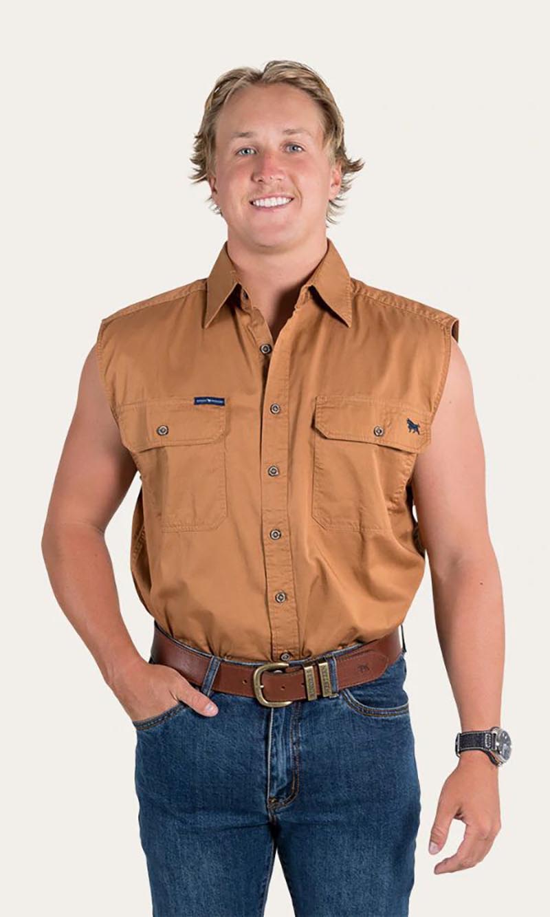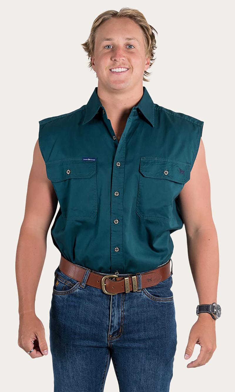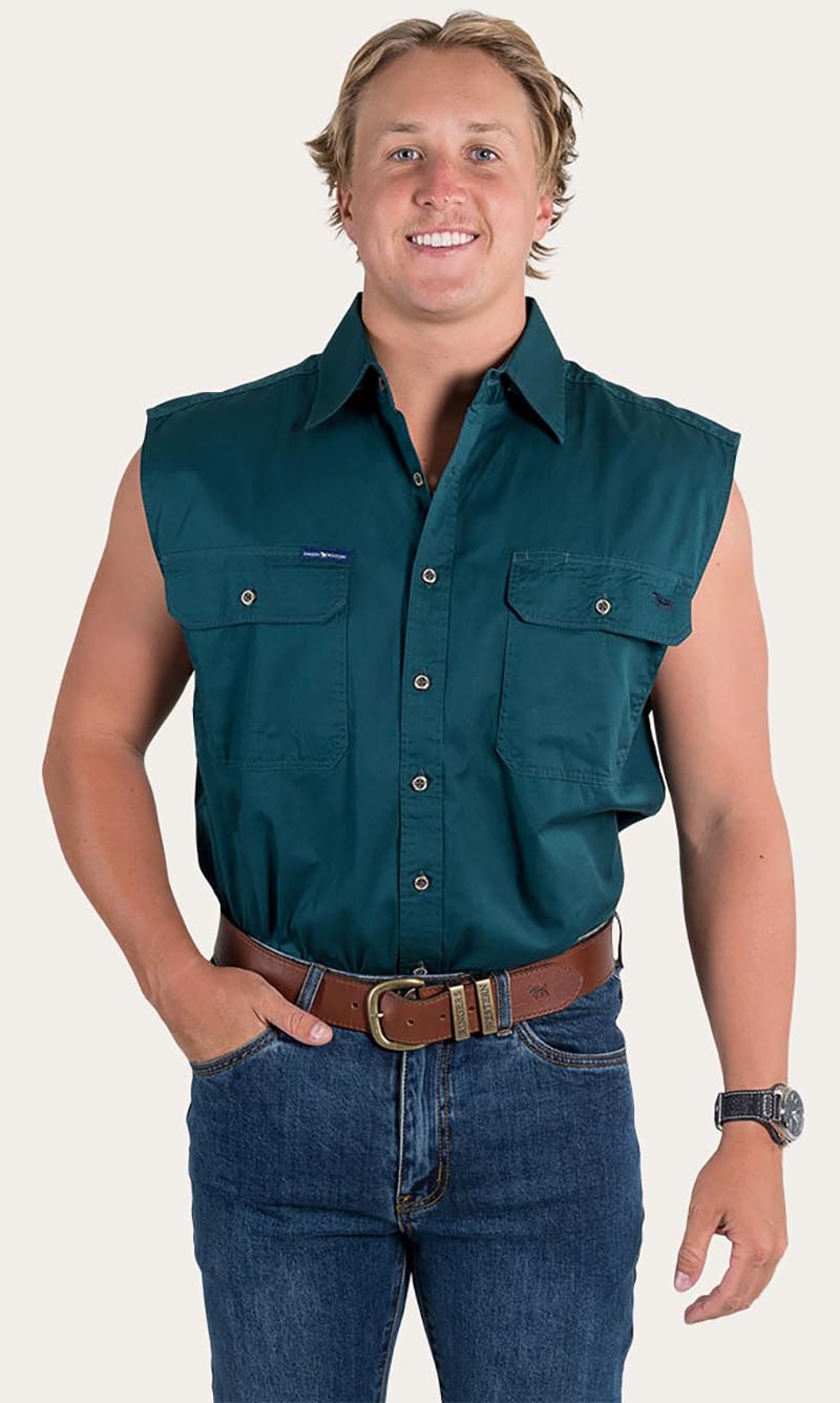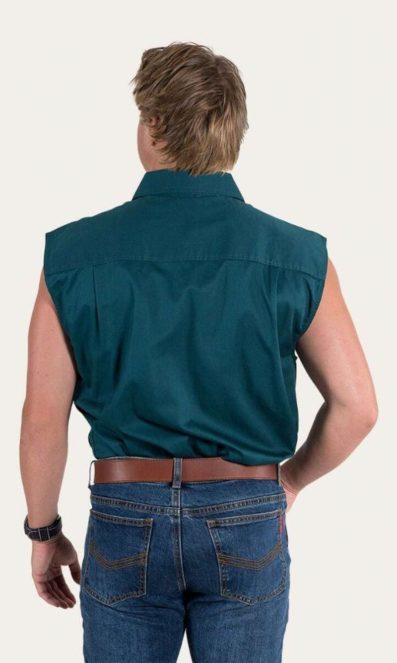 The Rob Roy is Ringers Westerns first line of men's sleeveless work shirts. This relaxed loose fit shirt is made from super soft light weight cotton. The shirts have double breast pockets and are constructed to last whatever the conditions. Stay cool in the summer heat with the Rob Roy Sleeveless.