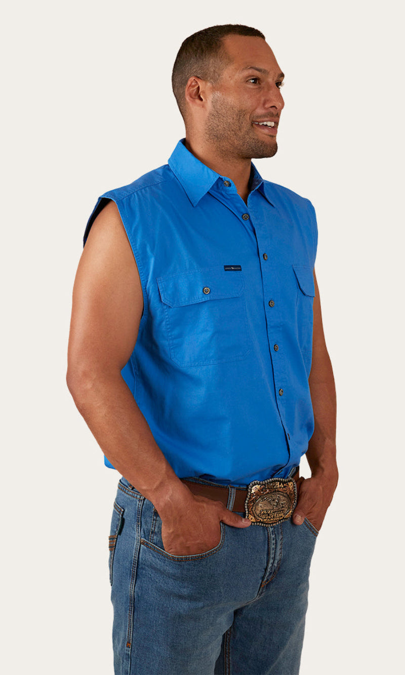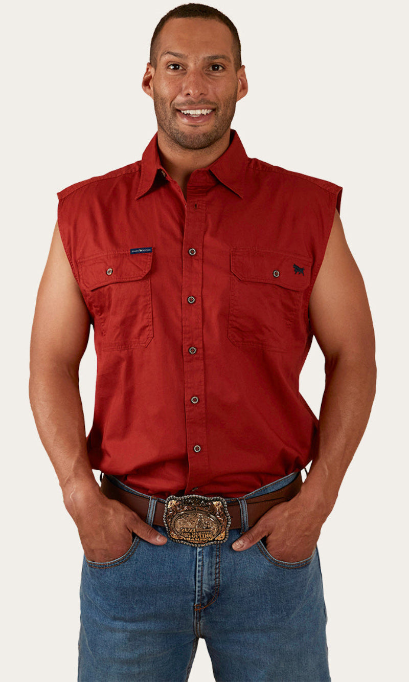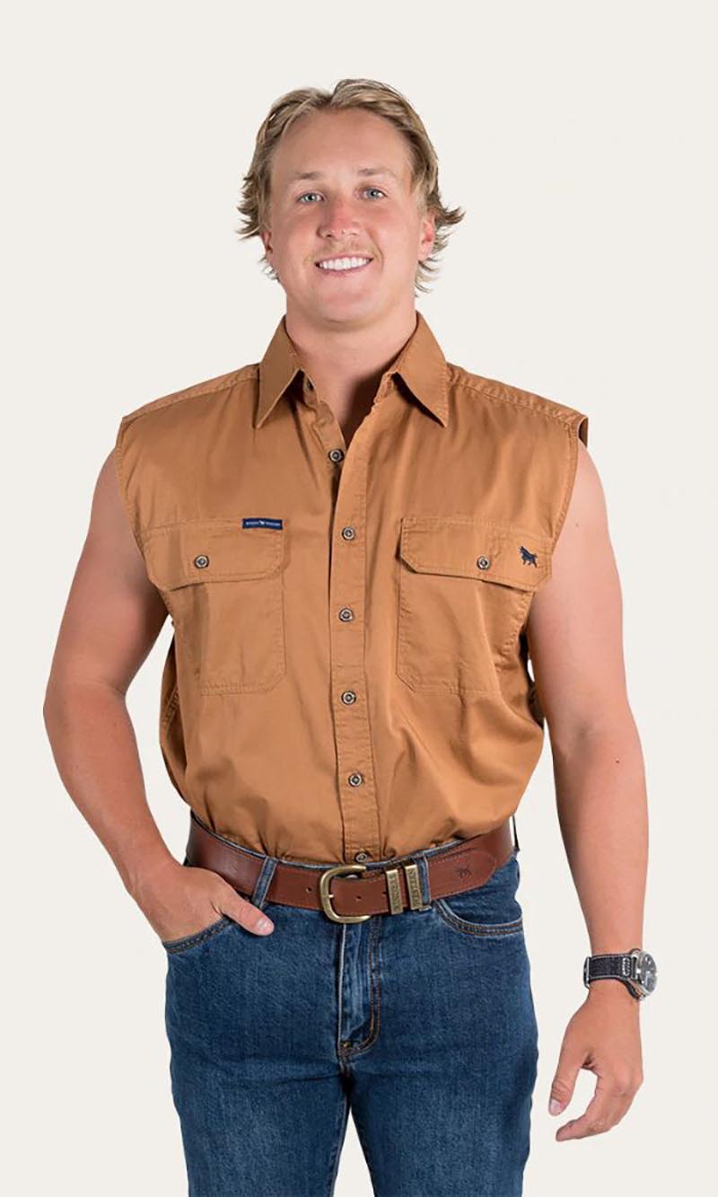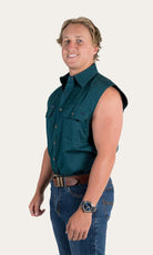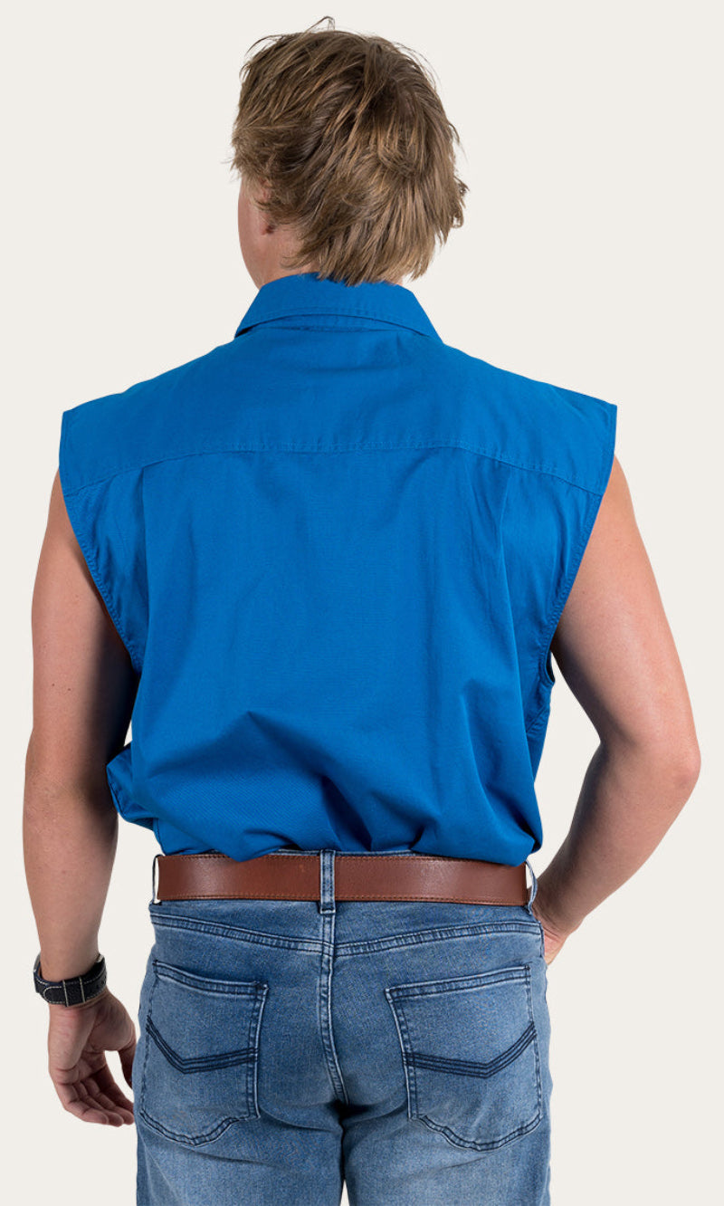 The Rob Roy is Ringers Westerns first line of men's sleeveless work shirts. This relaxed loose fit shirt is made from super soft light weight cotton. The shirts have double breast pockets and are constructed to last whatever the conditions. Stay cool in the summer heat with the Rob Roy Sleeveless.