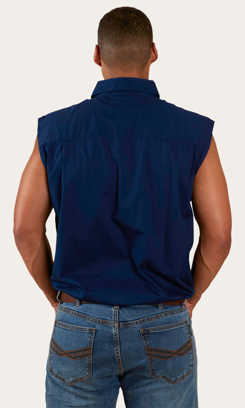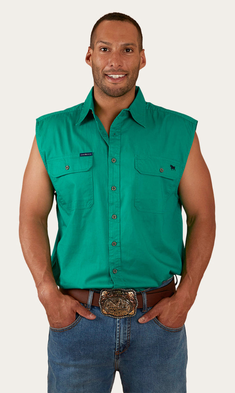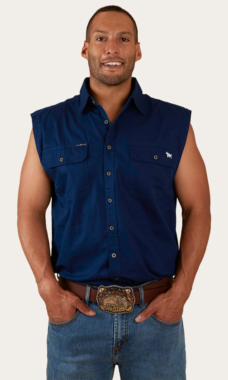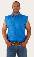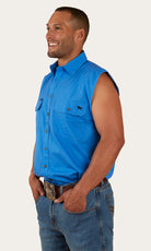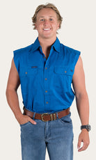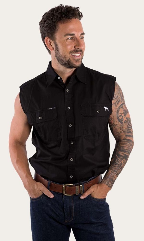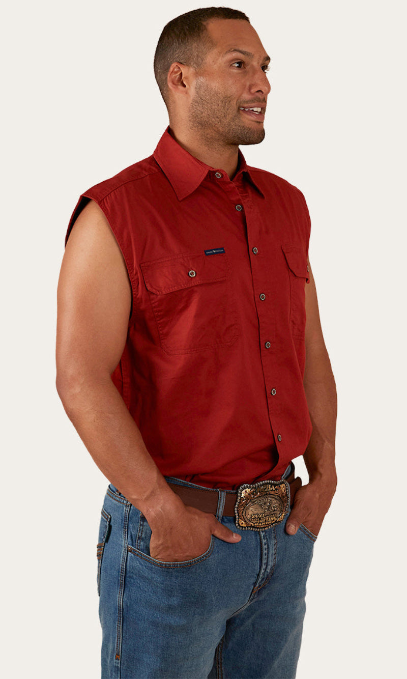 The Rob Roy is Ringers Westerns first line of men's sleeveless work shirts. This relaxed loose fit shirt is made from super soft light weight cotton. The shirts have double breast pockets and are constructed to last whatever the conditions. Stay cool in the summer heat with the Rob Roy Sleeveless.