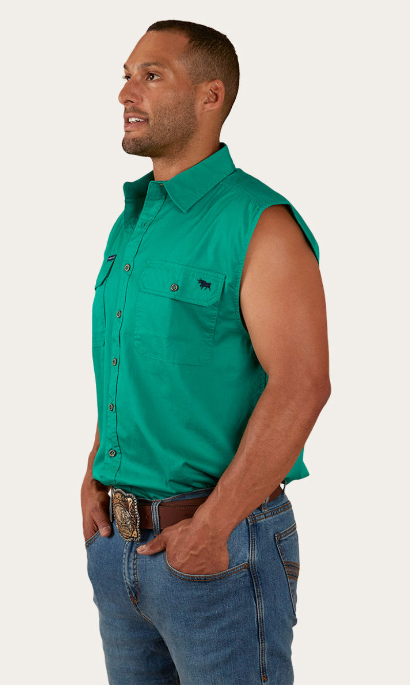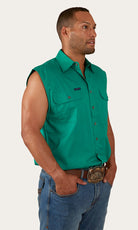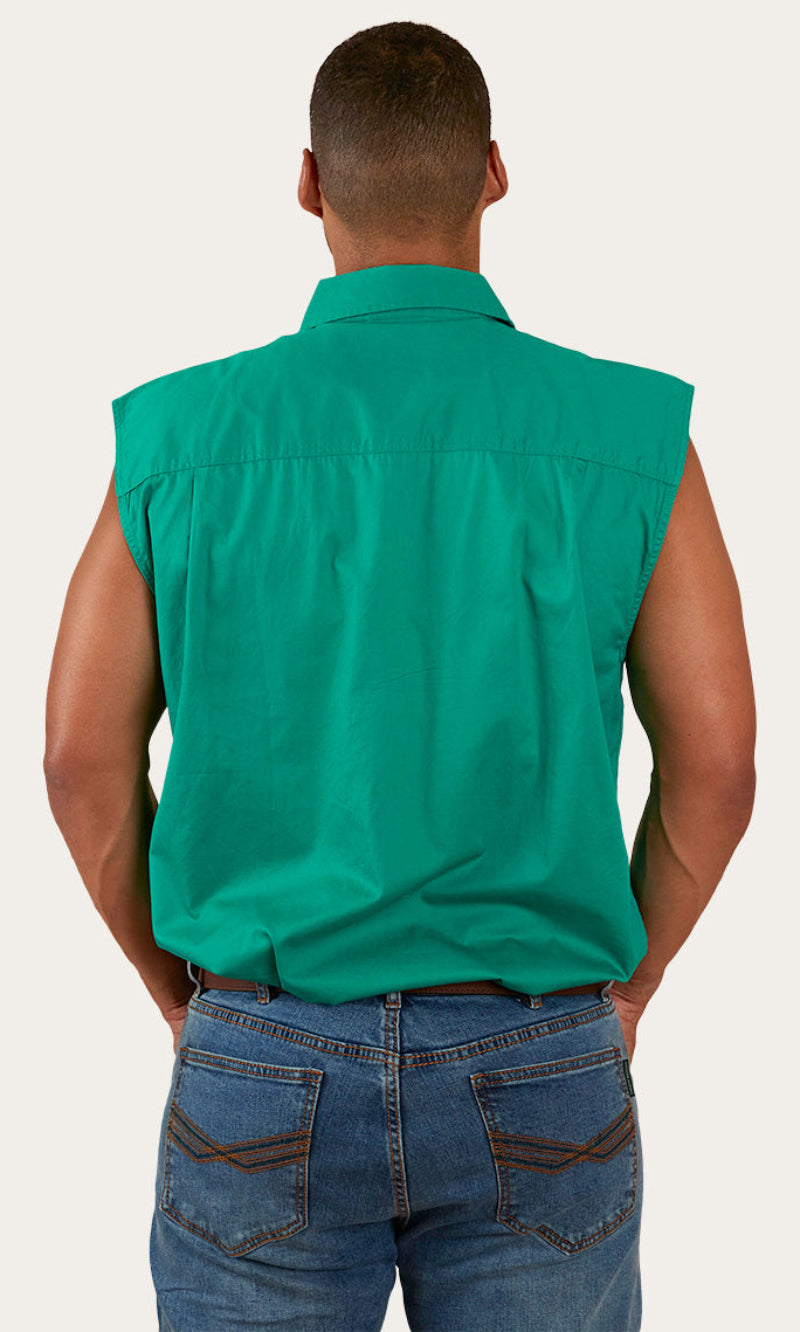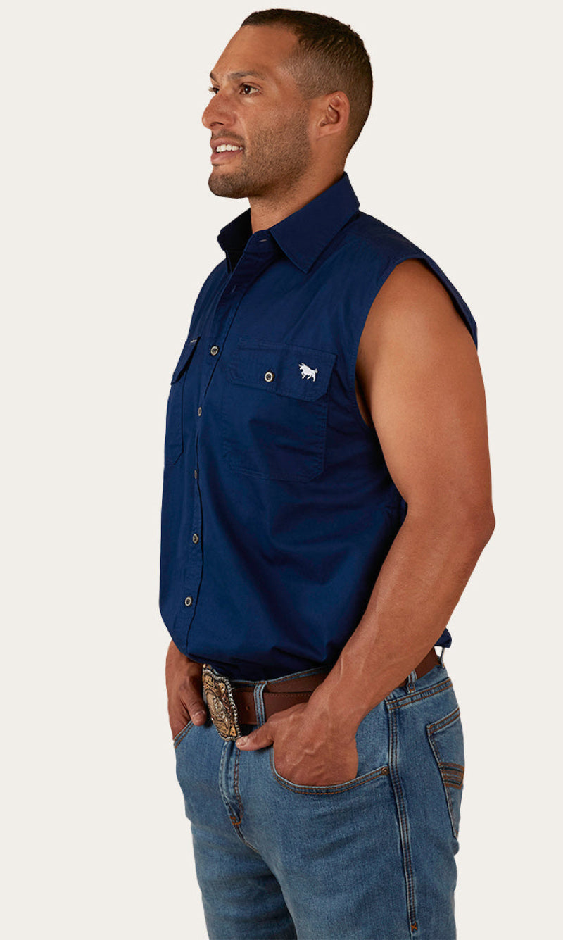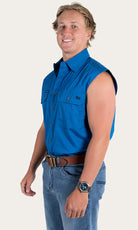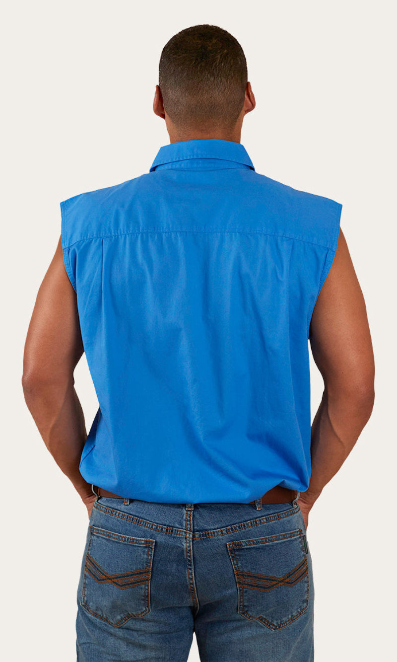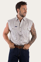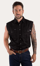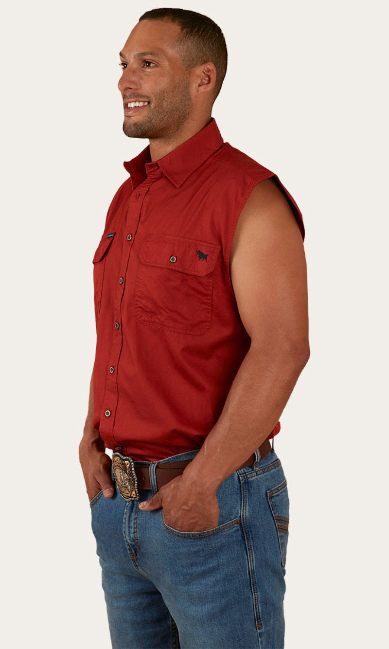 The Rob Roy is Ringers Westerns first line of men's sleeveless work shirts. This relaxed loose fit shirt is made from super soft light weight cotton. The shirts have double breast pockets and are constructed to last whatever the conditions. Stay cool in the summer heat with the Rob Roy Sleeveless.
