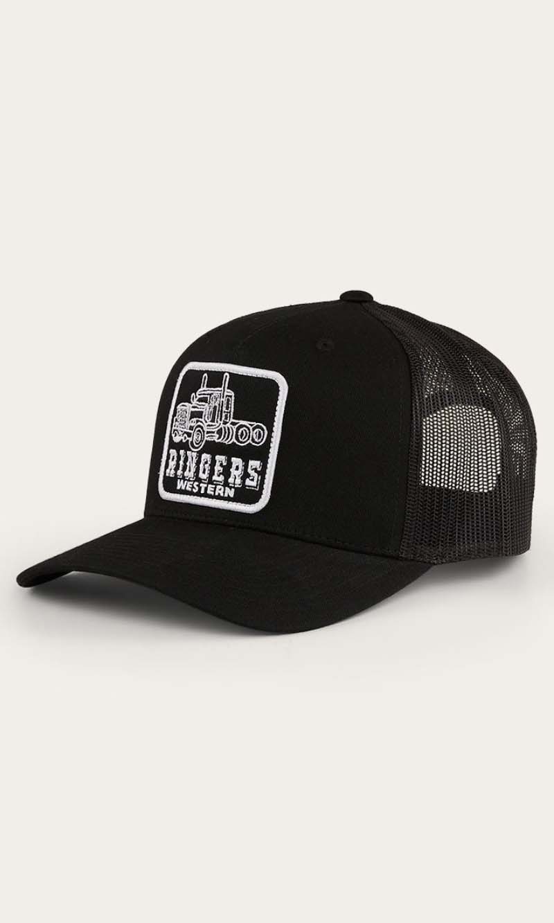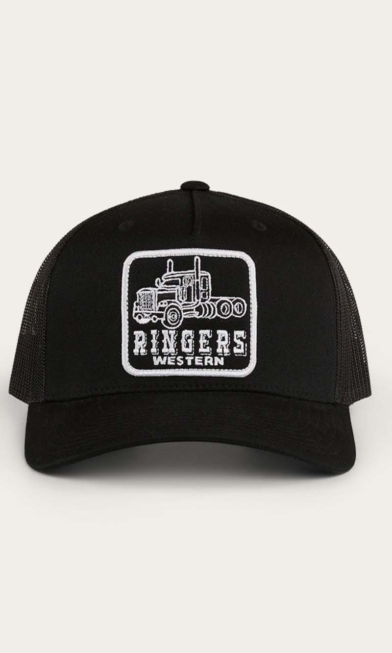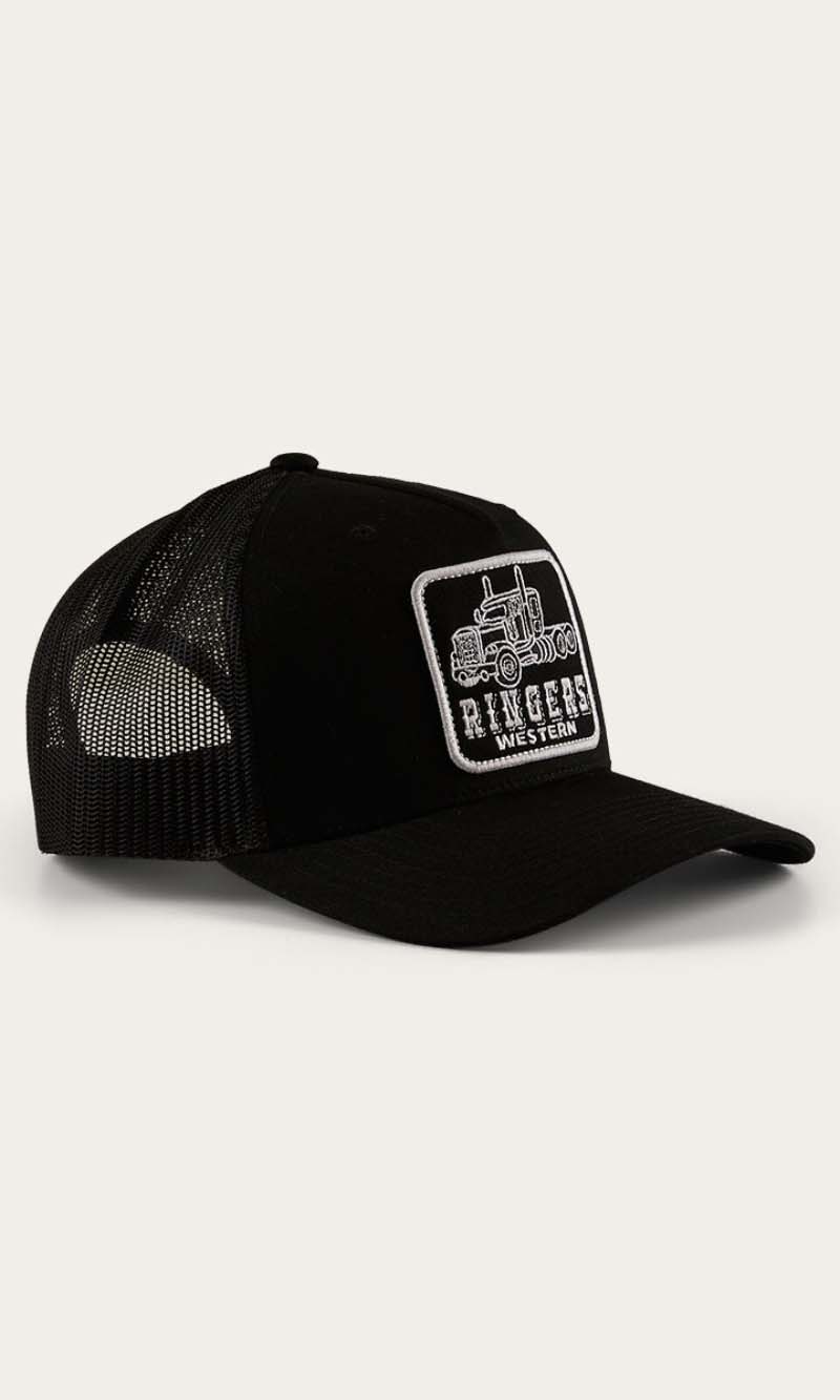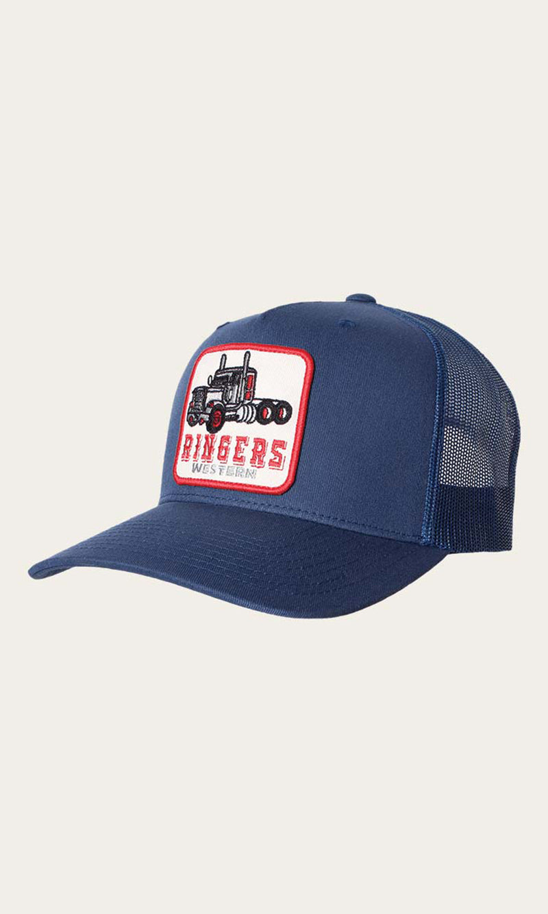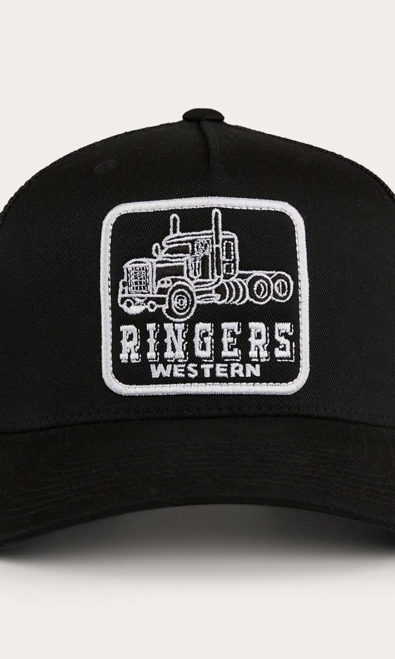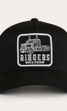 A five-panel design featuring a curved peak and adjustable snapback fastening. Crafted from durable cotton with breathable mesh panelling and Ringers Western statement patch, featuring iconic Truck imagery crafted across the crown.