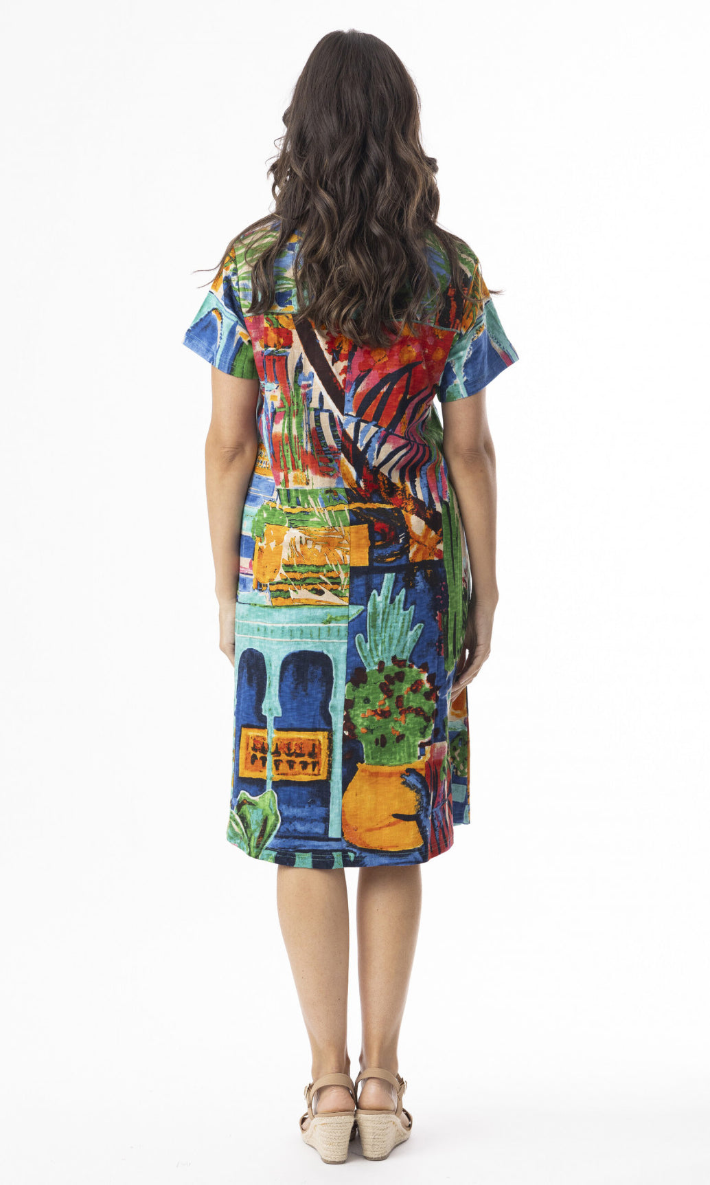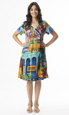 Celebrate summer in our stylish garment with all the charms of our Oasis print, for the Contemporary Short Sleeve Dress. Featuring a v neckline, short sleeves and a subtleflare skirt, it is a must-have addition to your summer wardrobe.