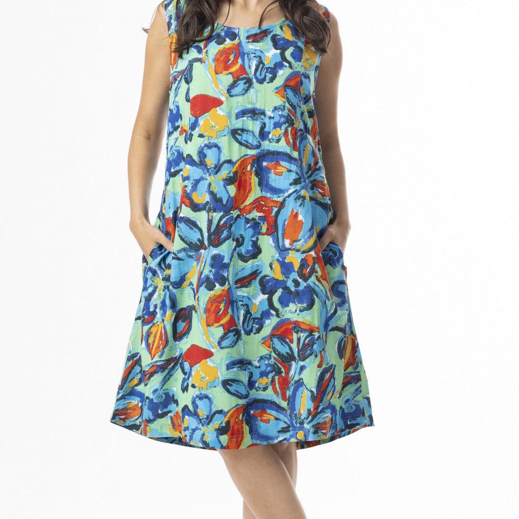 Rayon Dress Contemporary Sleeveless Floral
