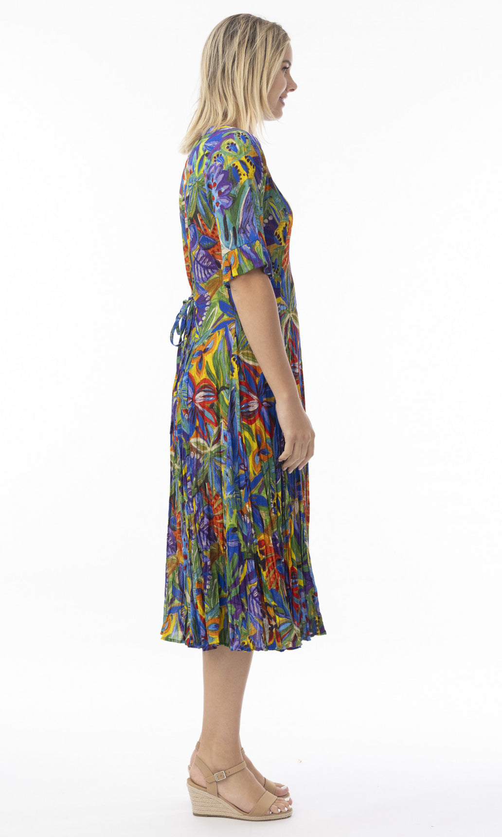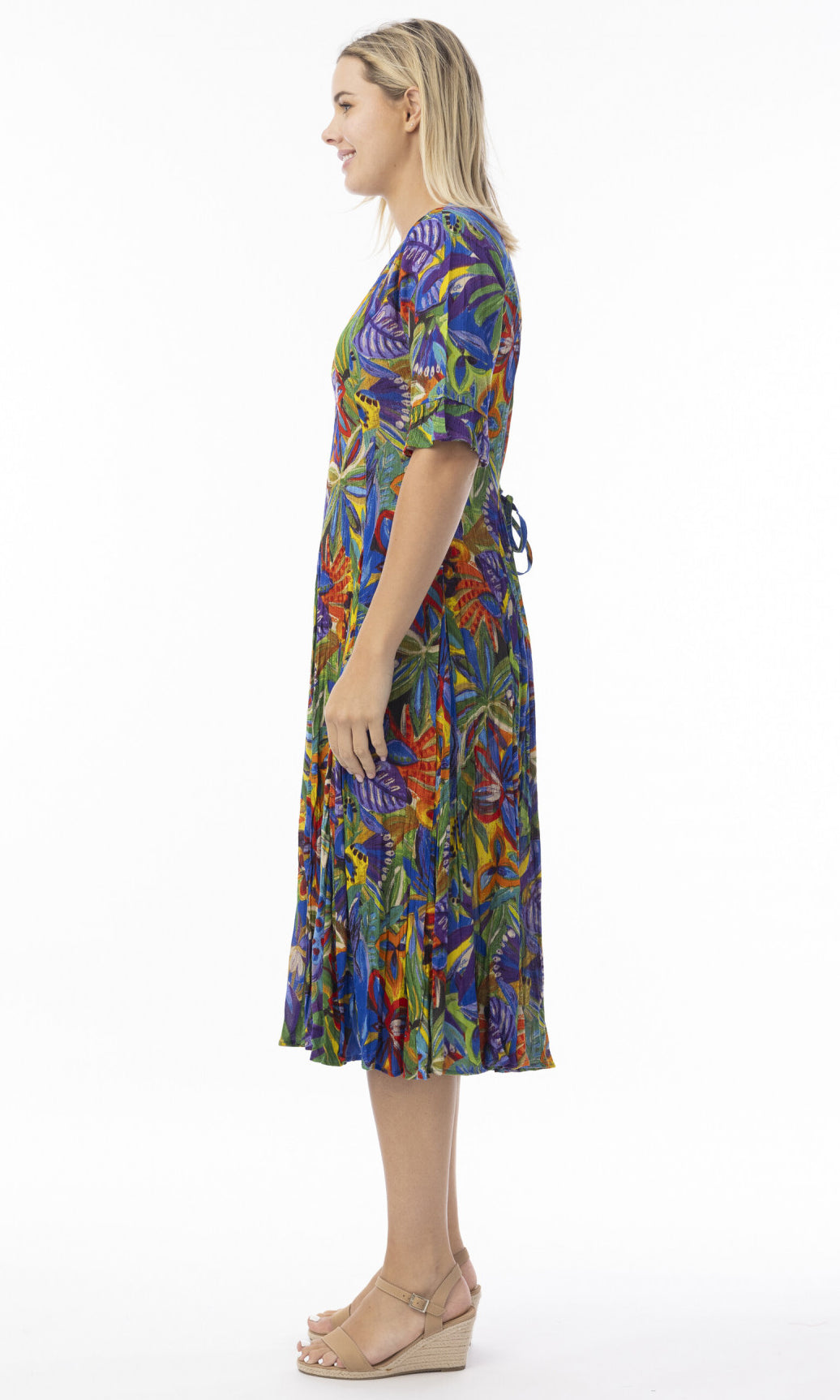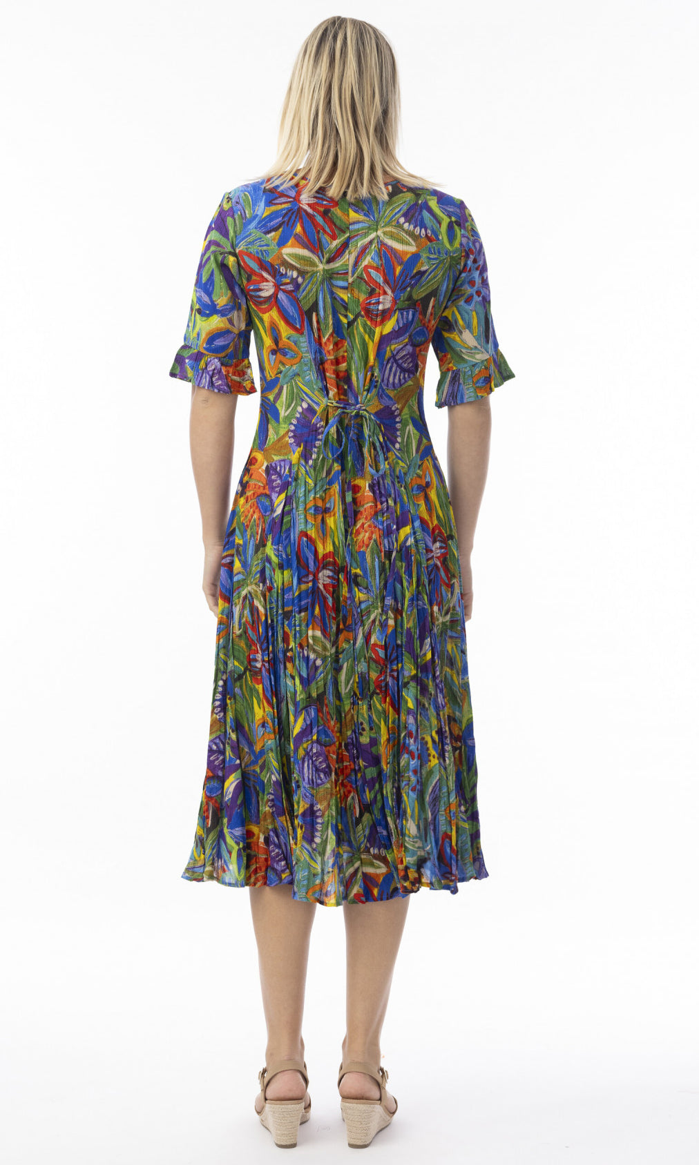 Crinkle Rayon Dress Godet Short Sleeve Zapallar