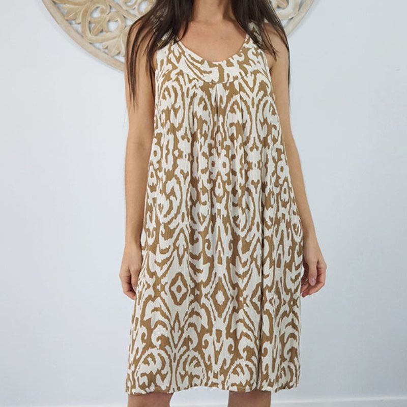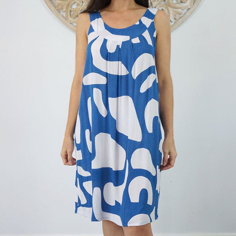 The Tahiti dress makes a great casual dress made from a cool crinkle rayon for those hot summer days. You'll find elastic easements under the arm area for that perfect fit. Sizes S/M (10-12), LXL (14-16), 2XL (18-20).